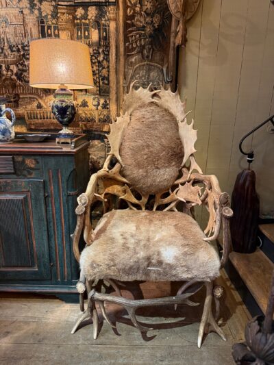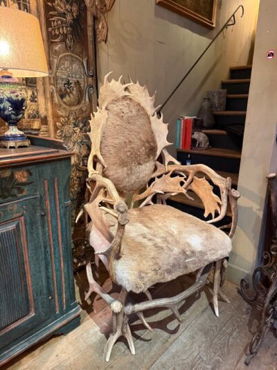 Paire de grands fauteuils bois de cerfs clairs – France XIXe