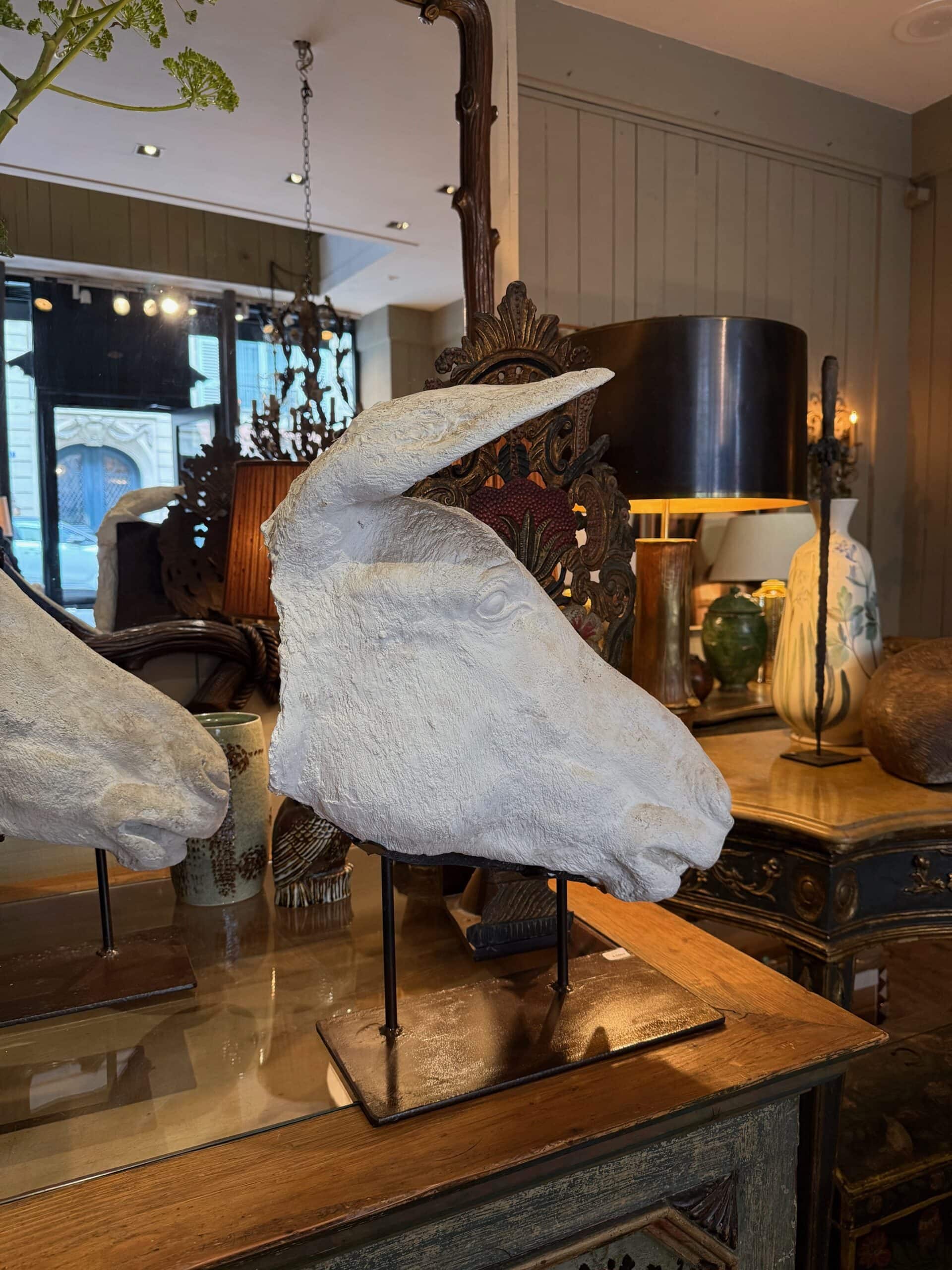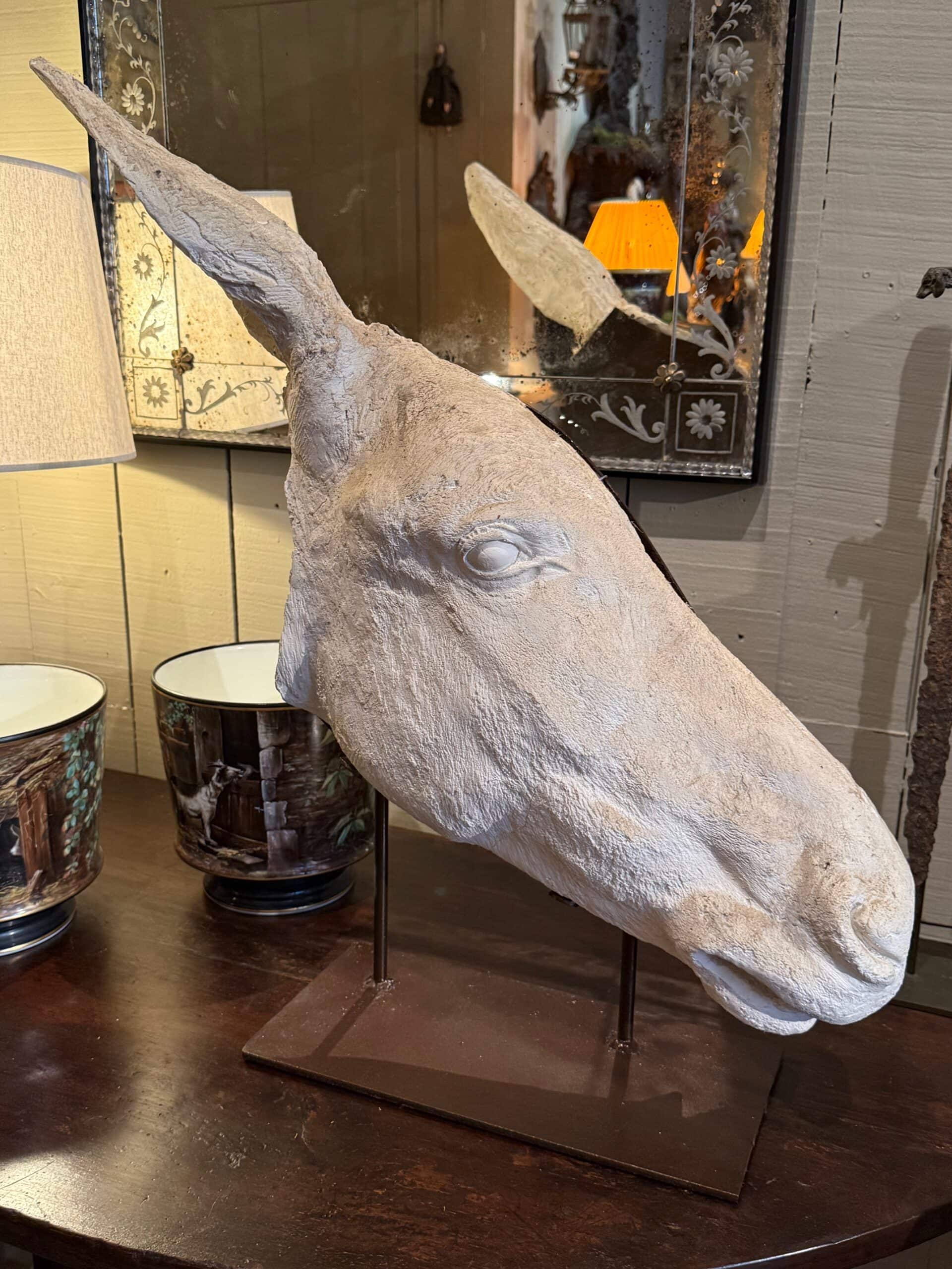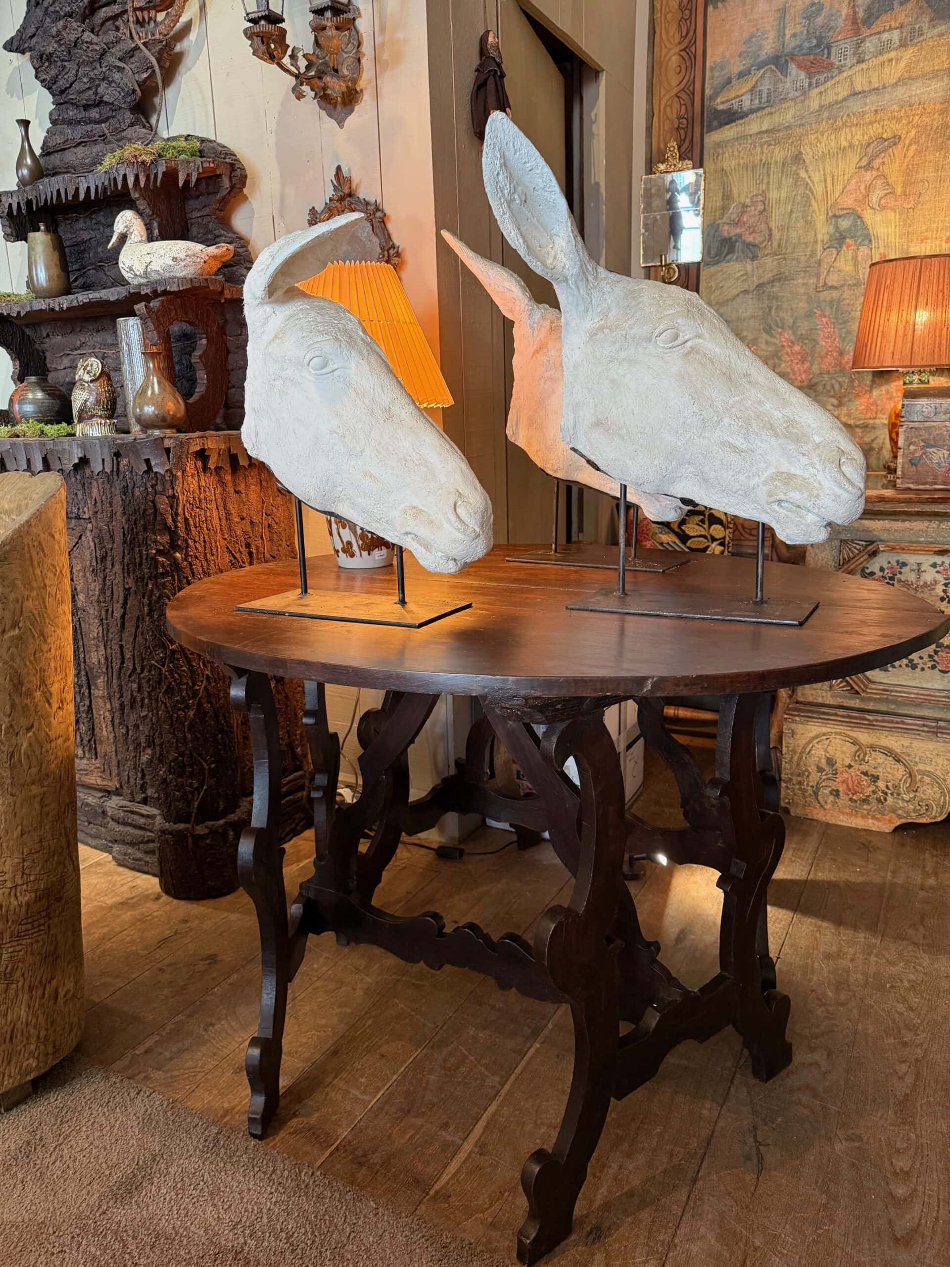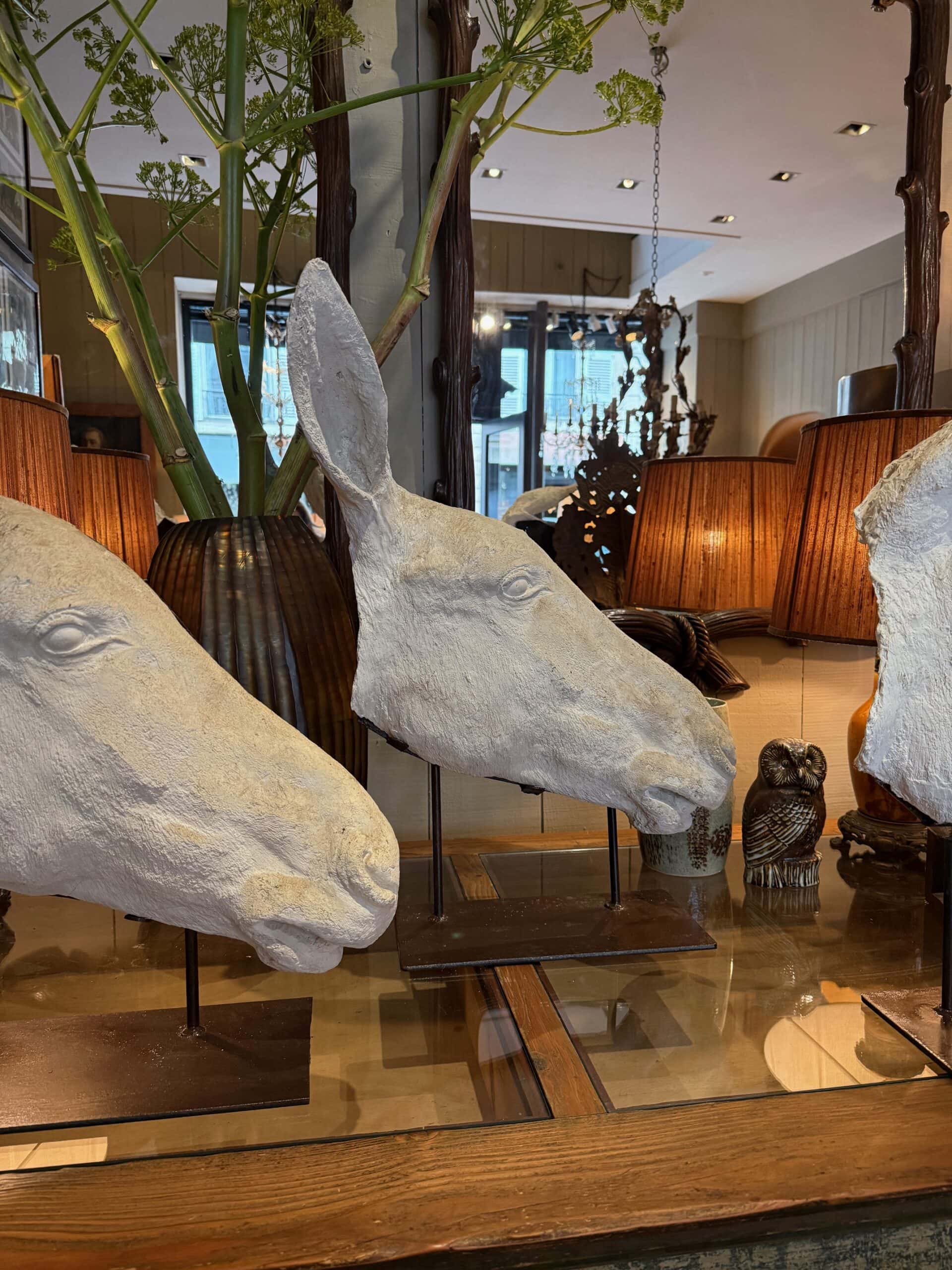 Collection de 3 profils d’Anes en plâtre – sur socles en fer ca.1900