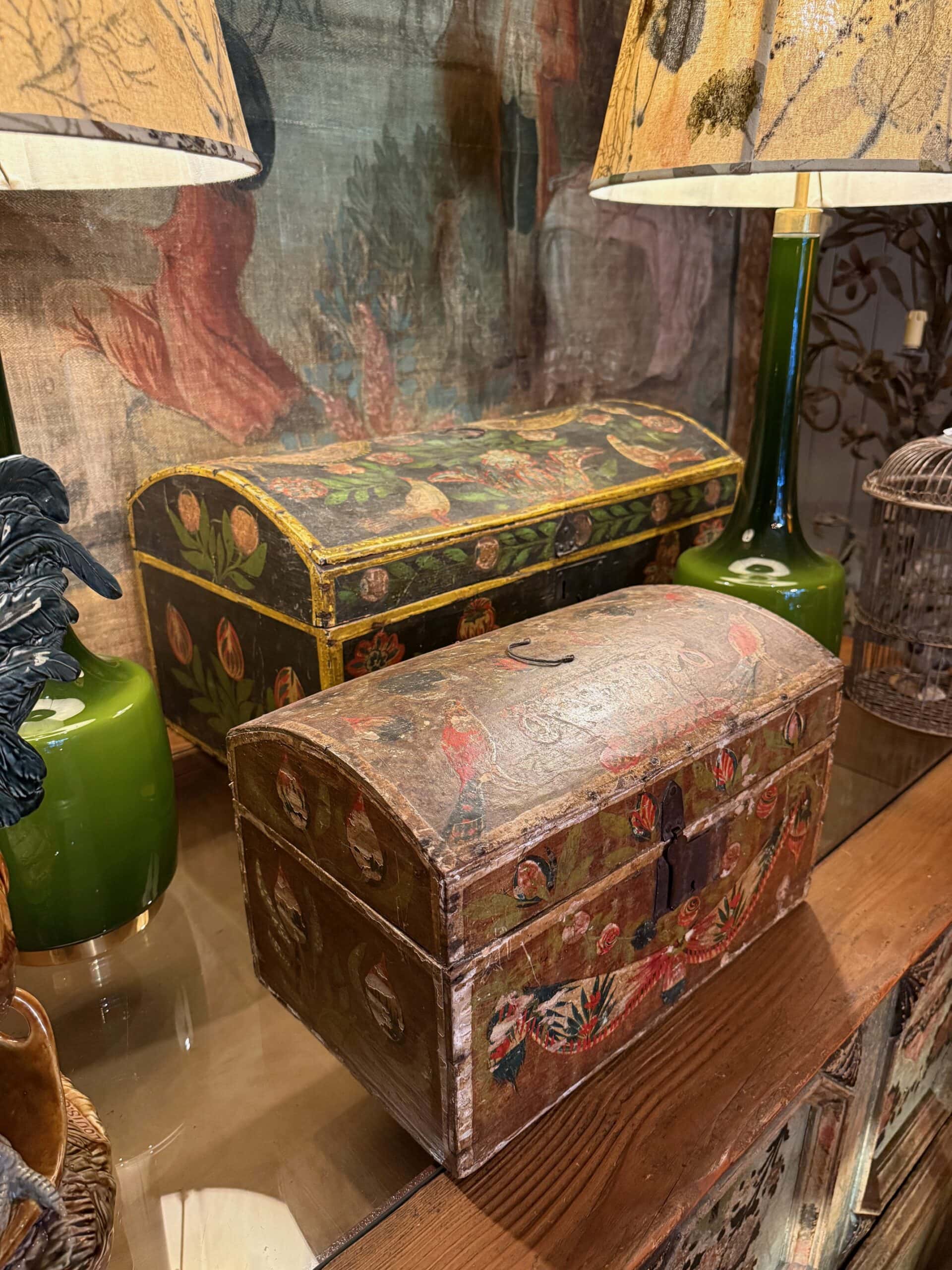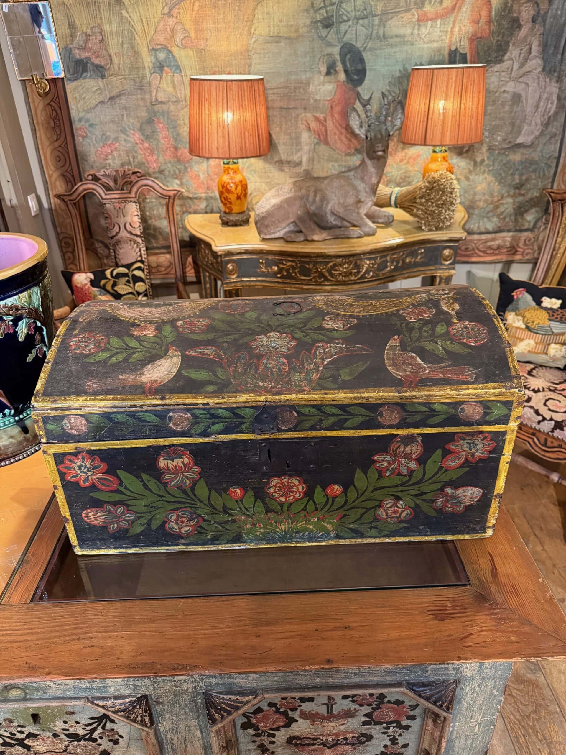 Grand coffre de mariage en bois peint “Normandie” – Art populaire XIXe