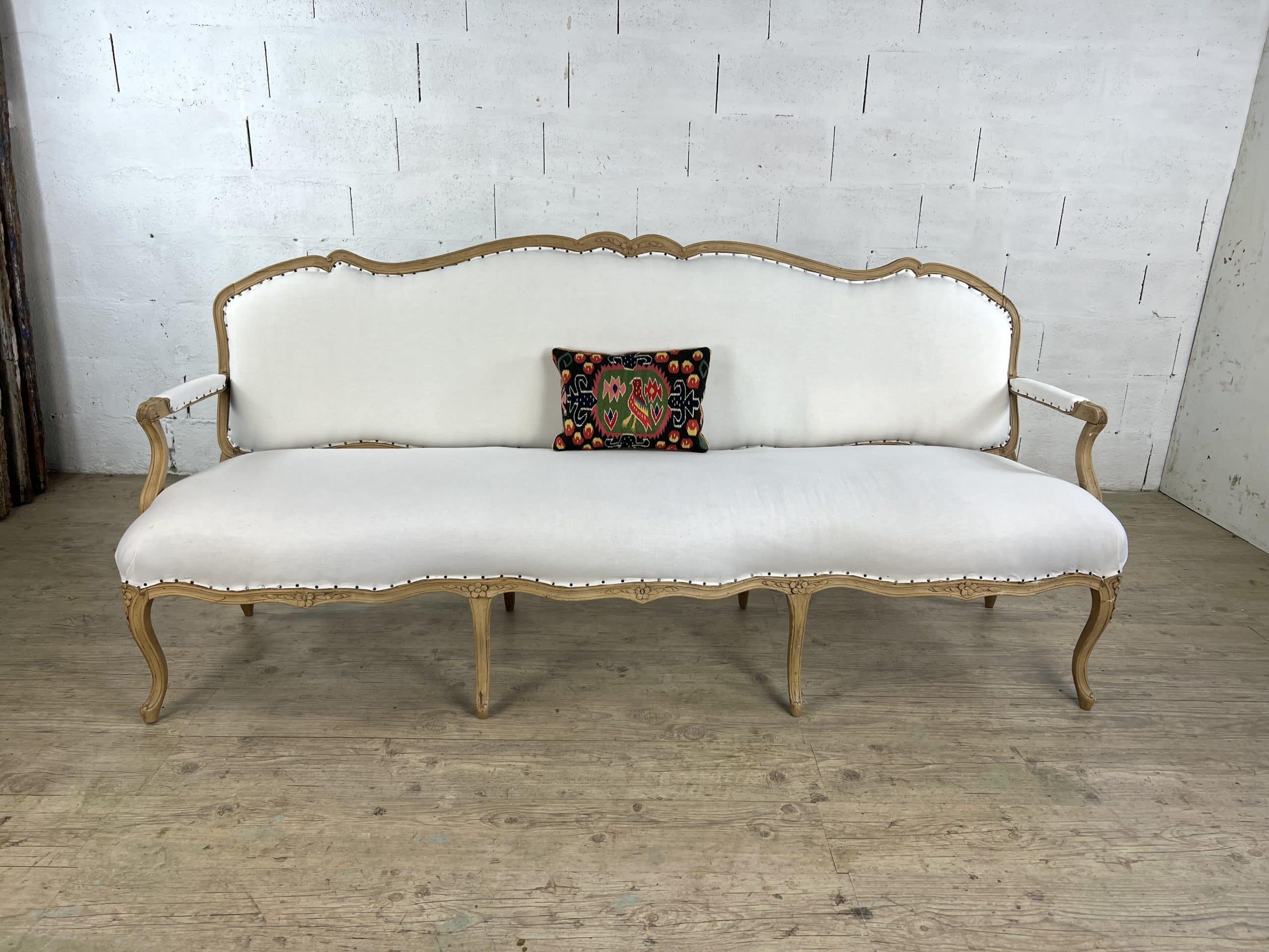 Le dos en velours rose poudré, ajouté plus récemment, offre un contraste élégant et contemporain. Une pièce décorative expressive, idéale pour apporter une touche folk scandinave à un canapé ou un fauteuil.