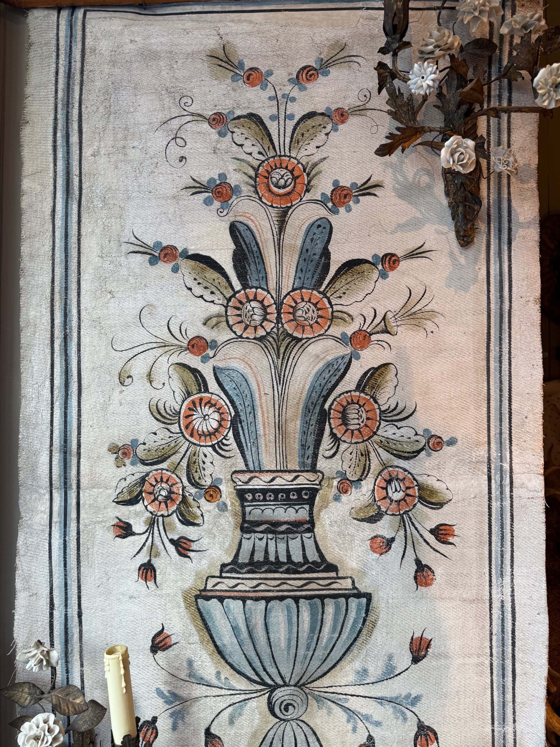 Grand tissu peint “Bonad” motif Vase fleuri -Suéde fin XIXe