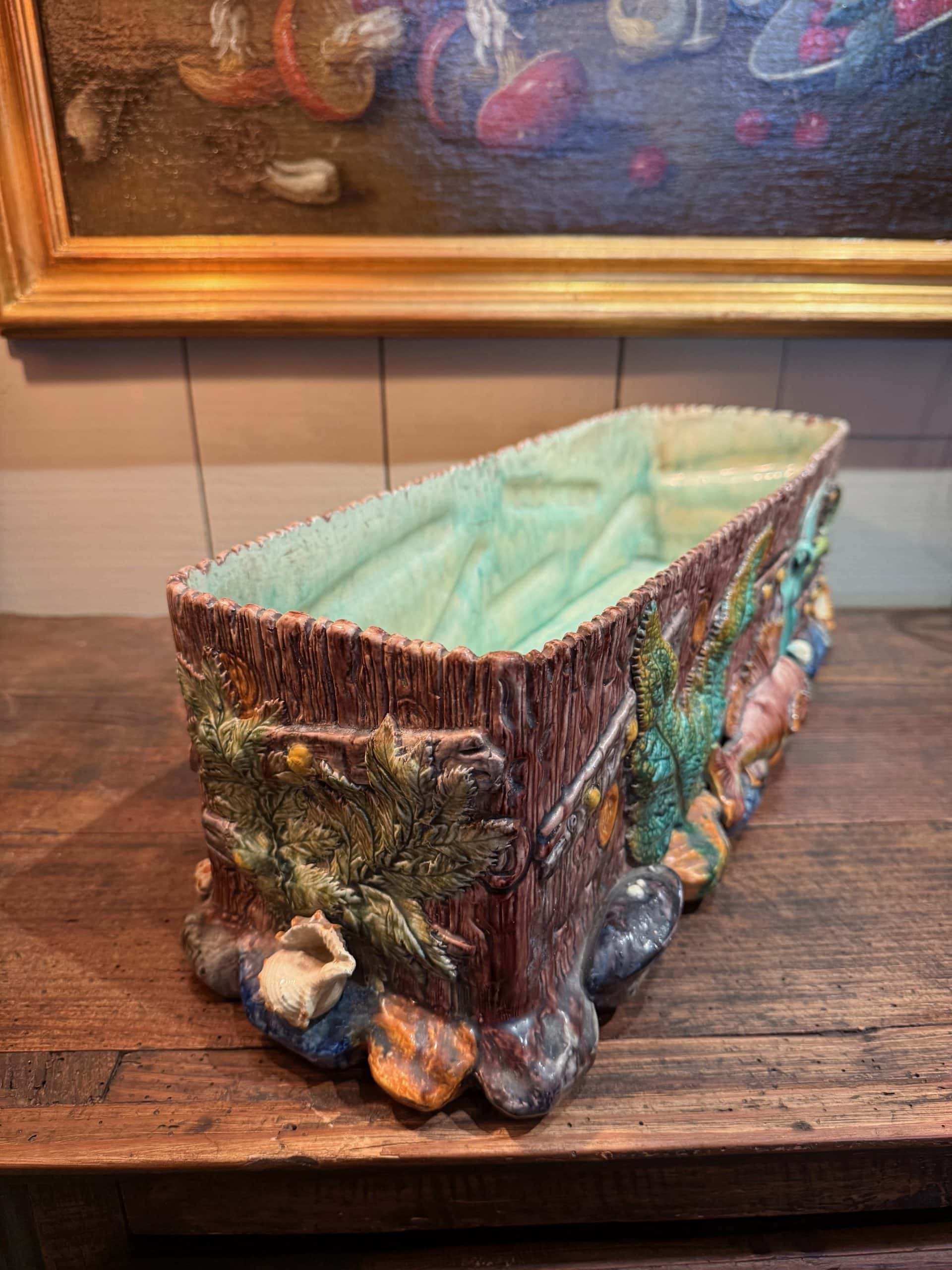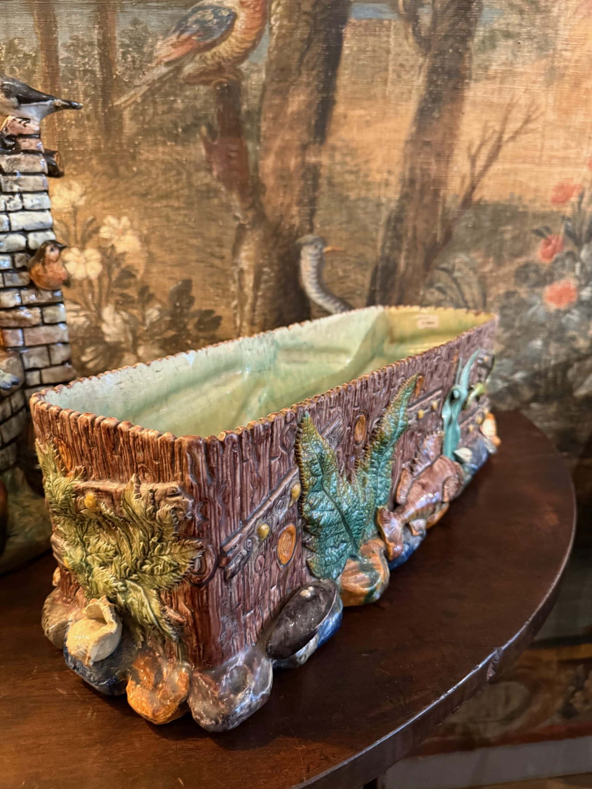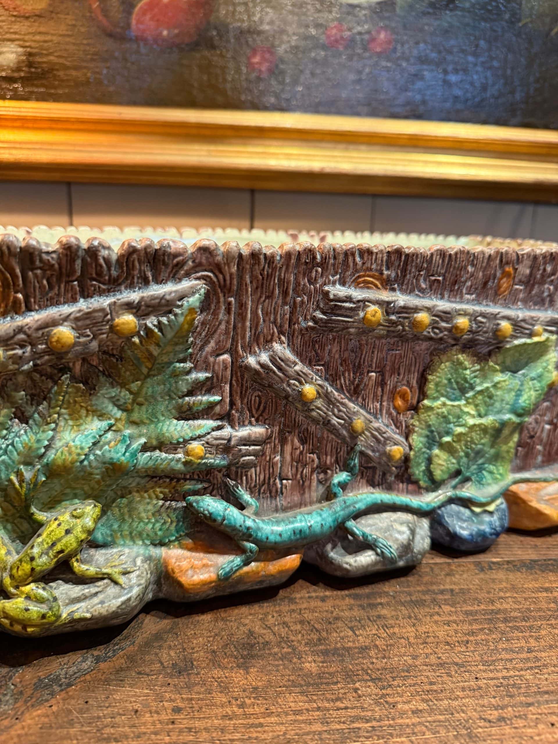 Étiquettes : barbotine, Bernard Palissy, école de Rouen, jardinière en majolique, majolique, suiveurs de palissy, thomas sergent, Thomas Victor SERGENT (1830-1890)