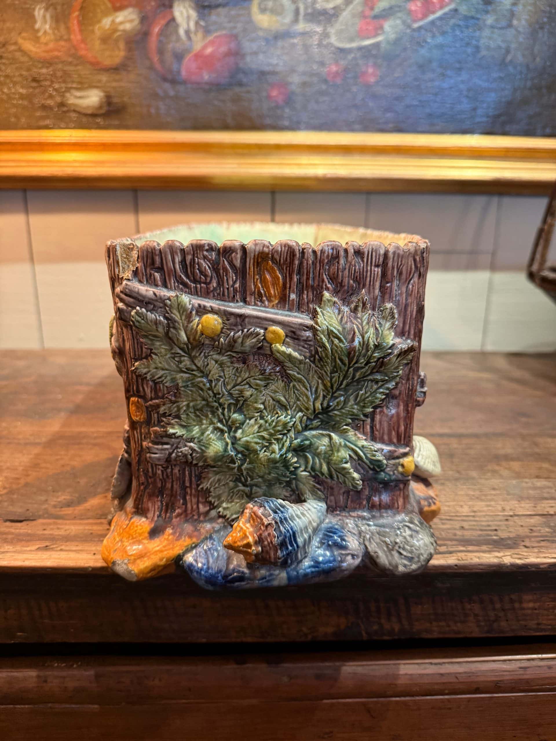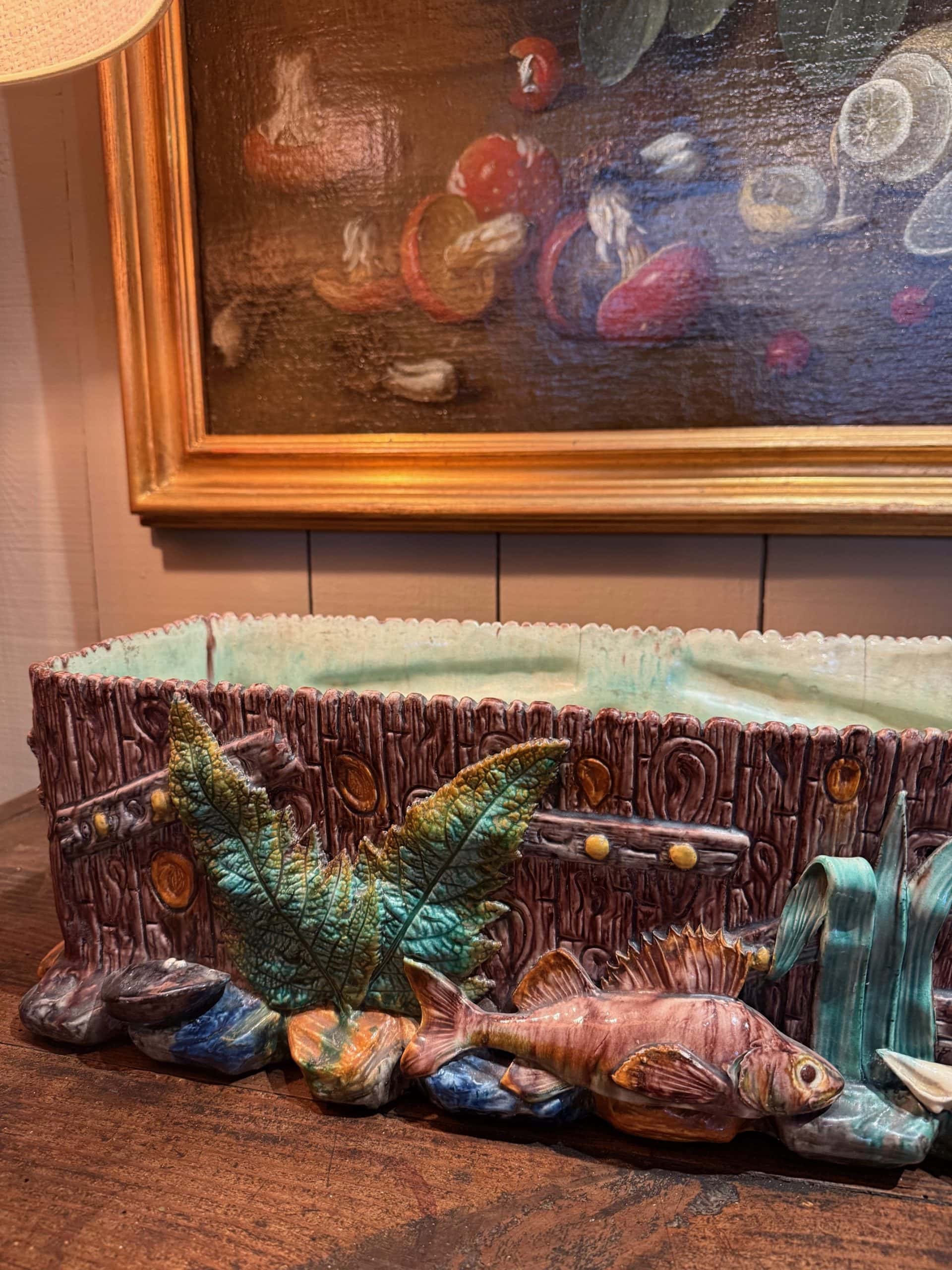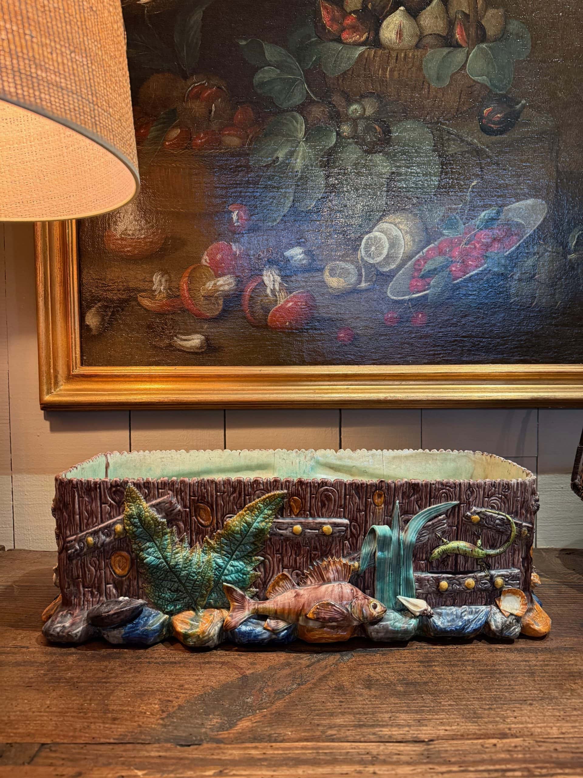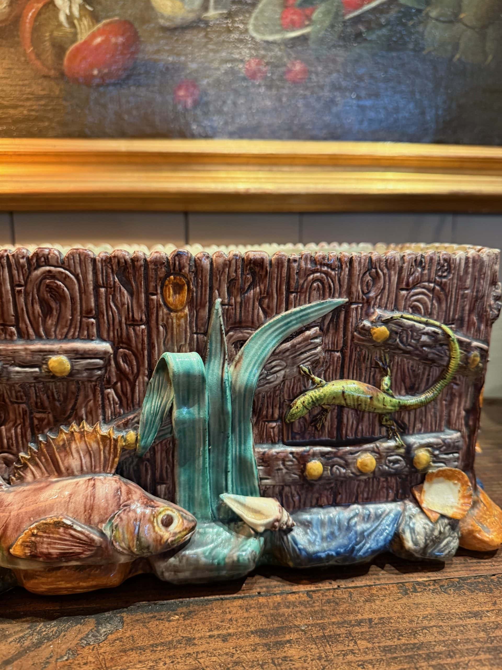 Étiquettes : barbotine, Bernard Palissy, école de Rouen, jardinière en majolique, majolique, suiveurs de palissy, thomas sergent, Thomas Victor SERGENT (1830-1890)