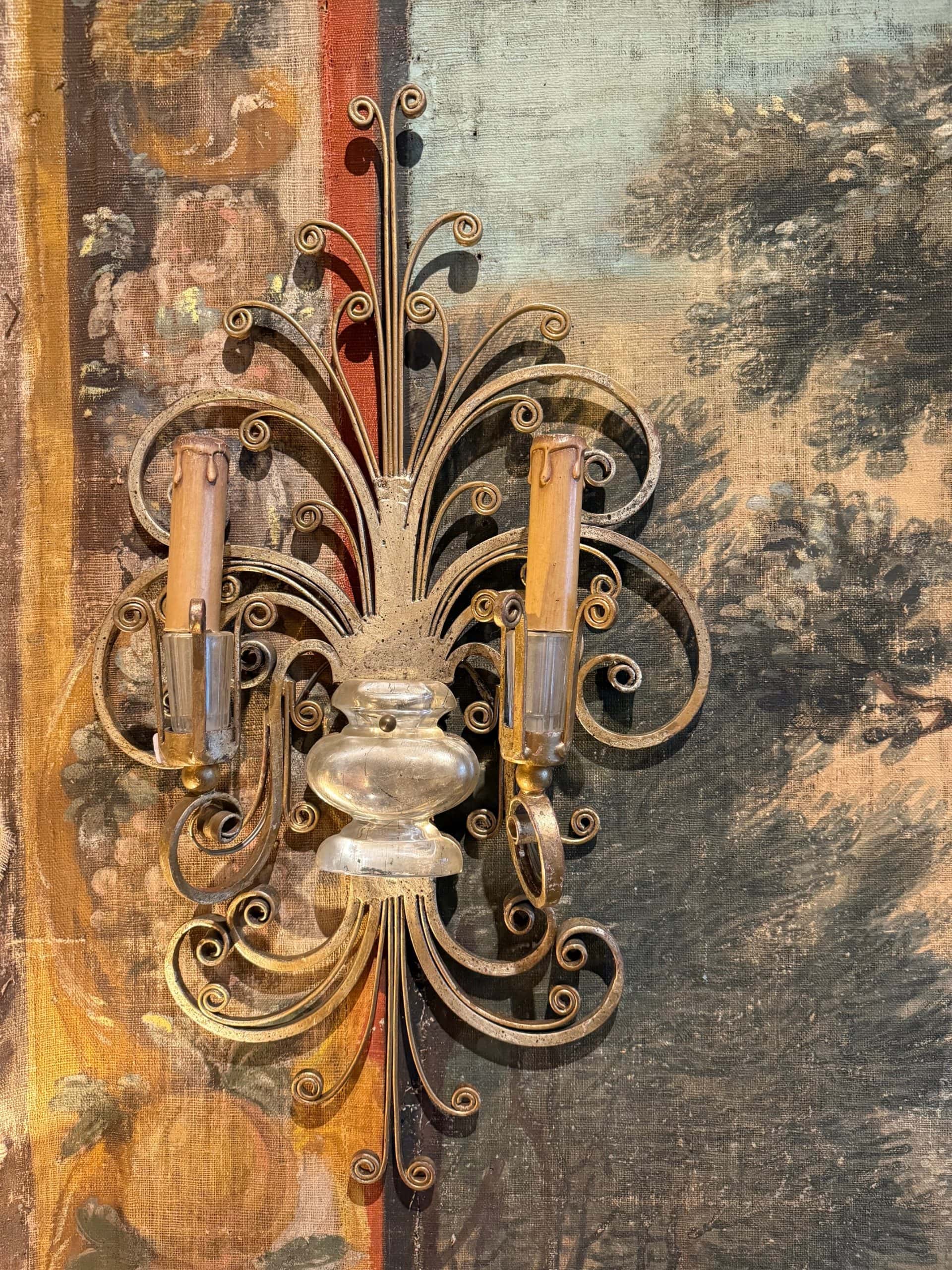 Pair d’appliques métal & verre Style Baguès ca.1950