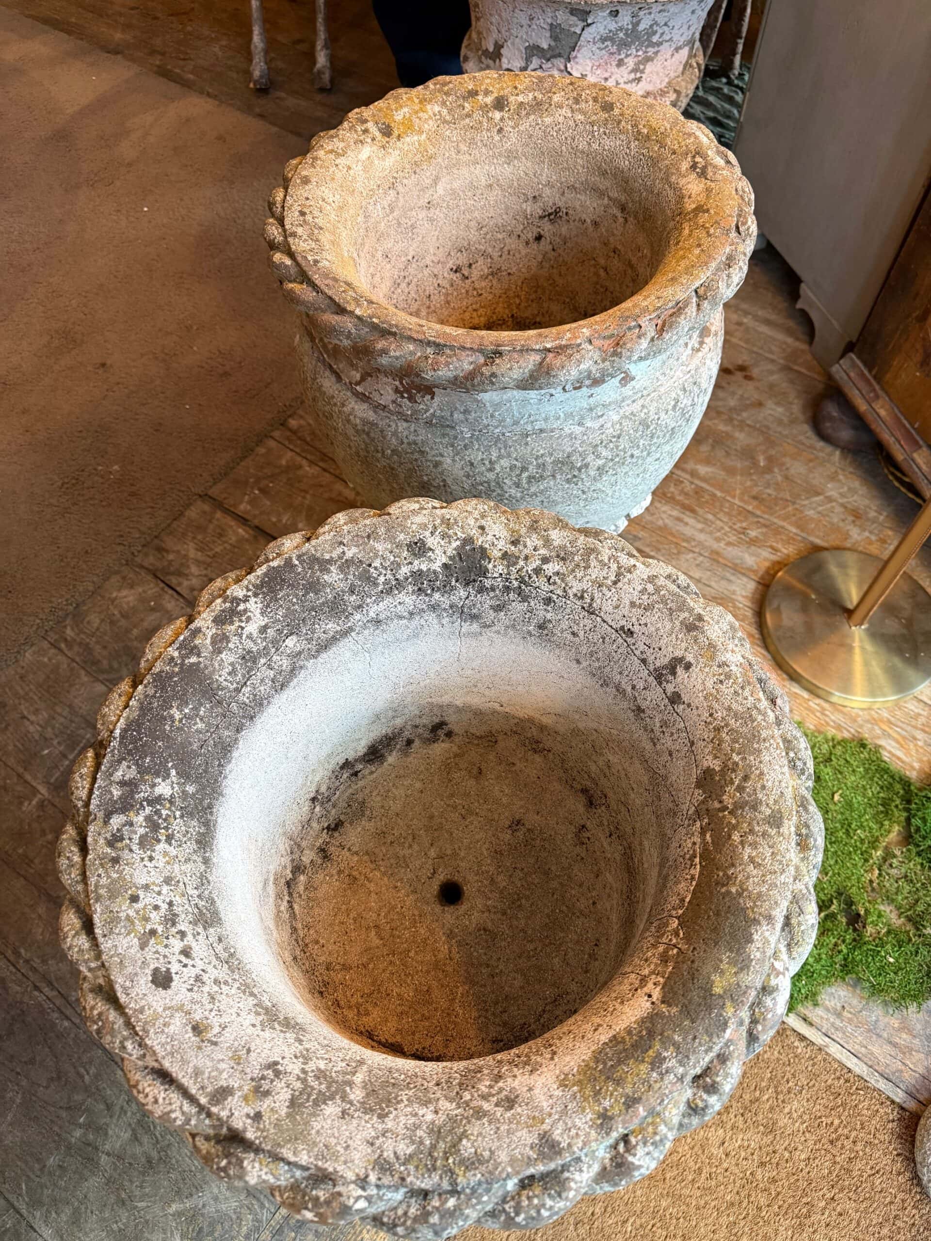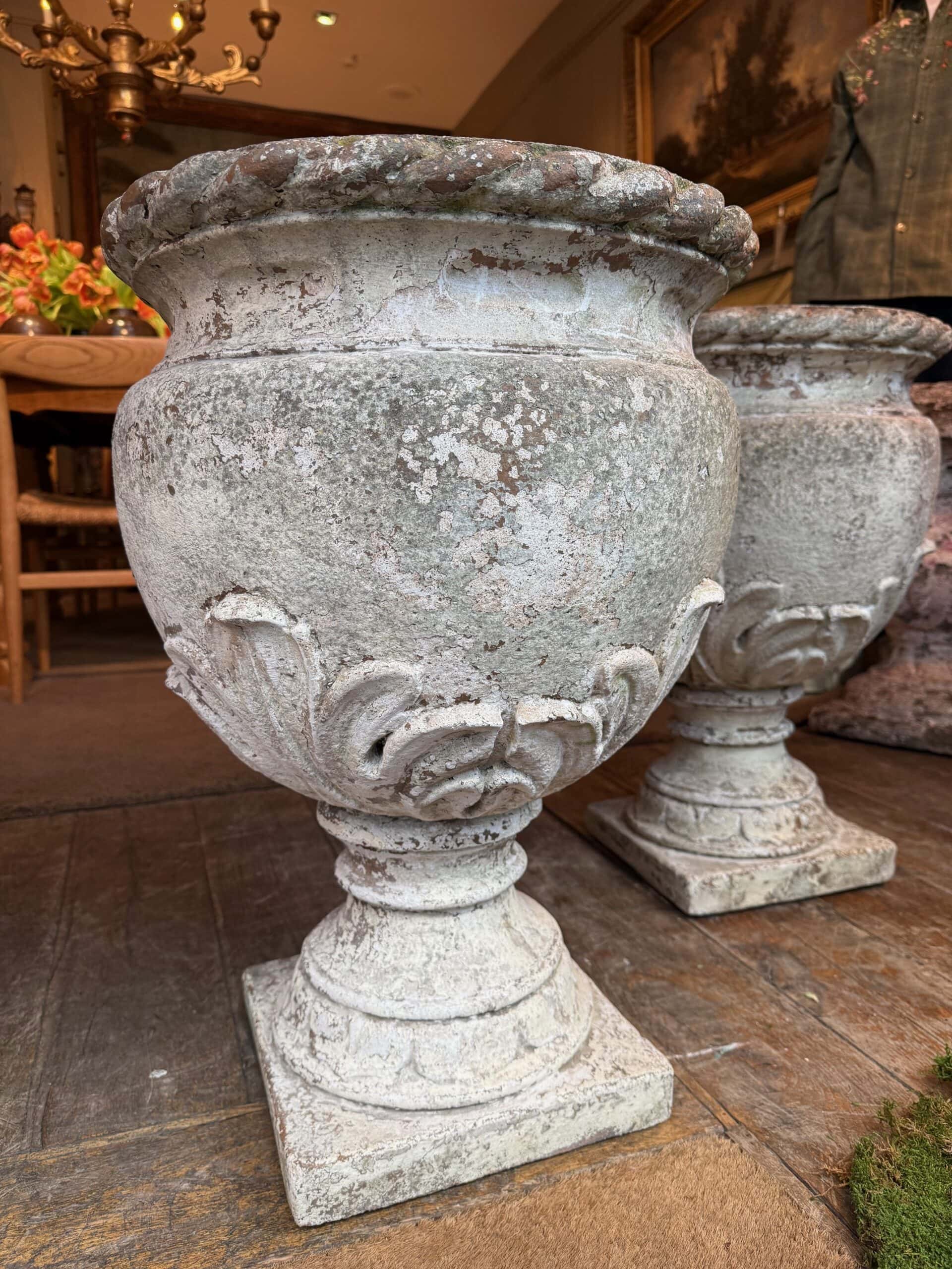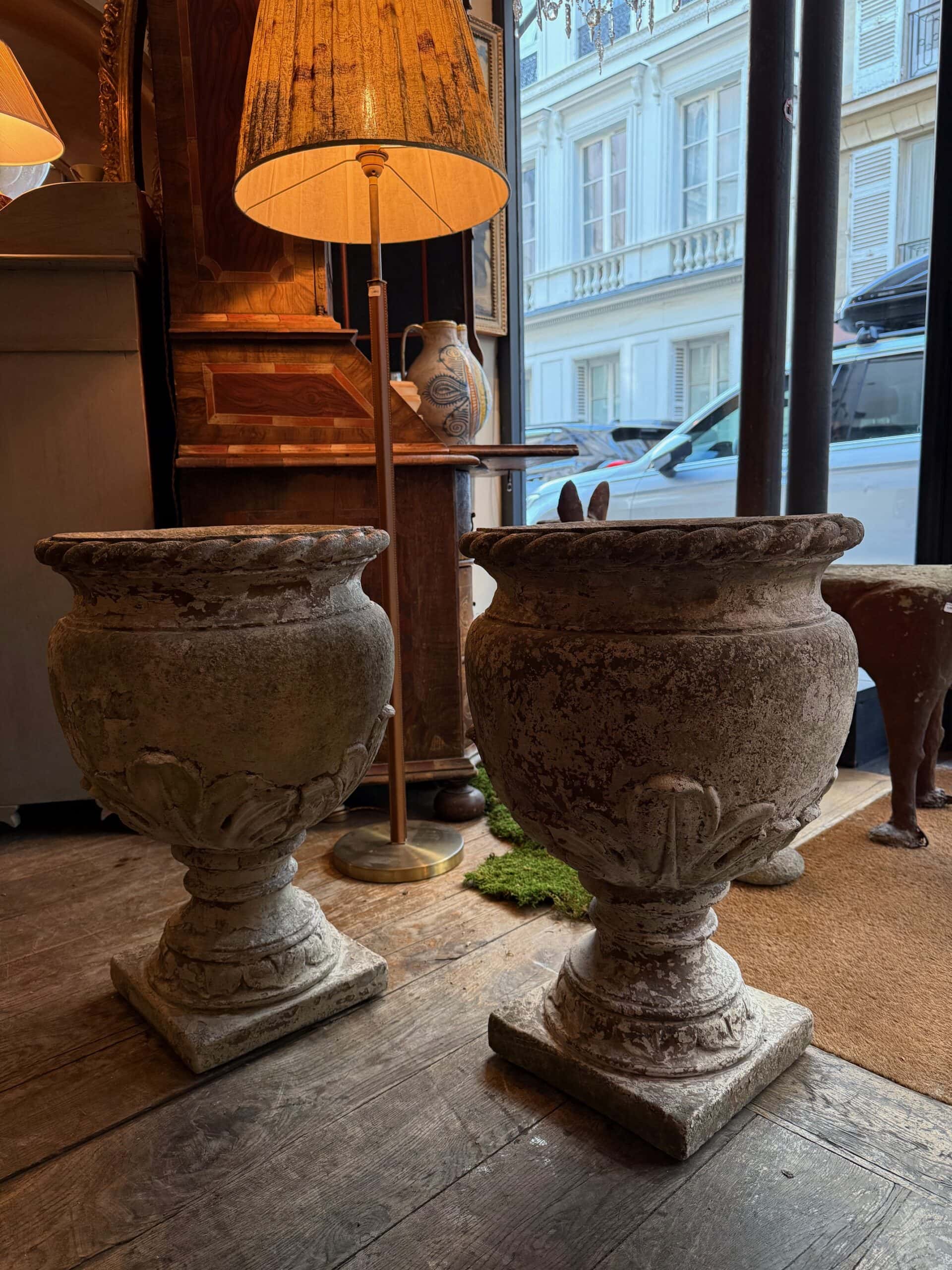 Paire de grands vases en pierre sculptée – décor feuilles d’Acanthes – France XIXe