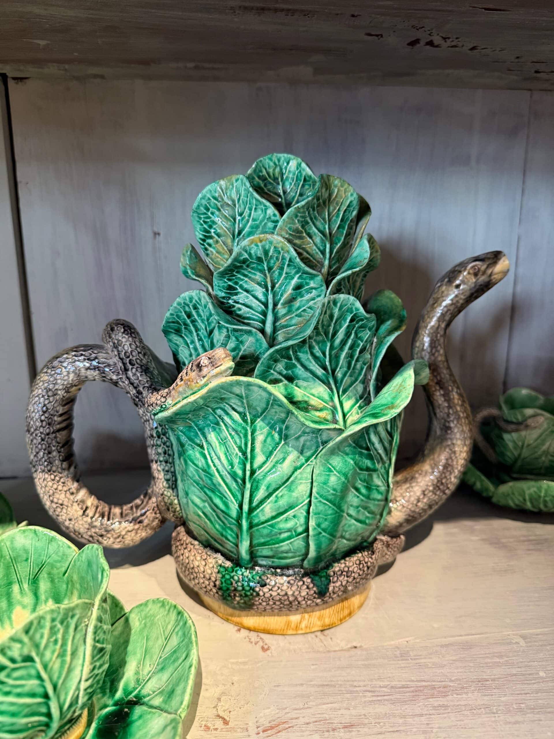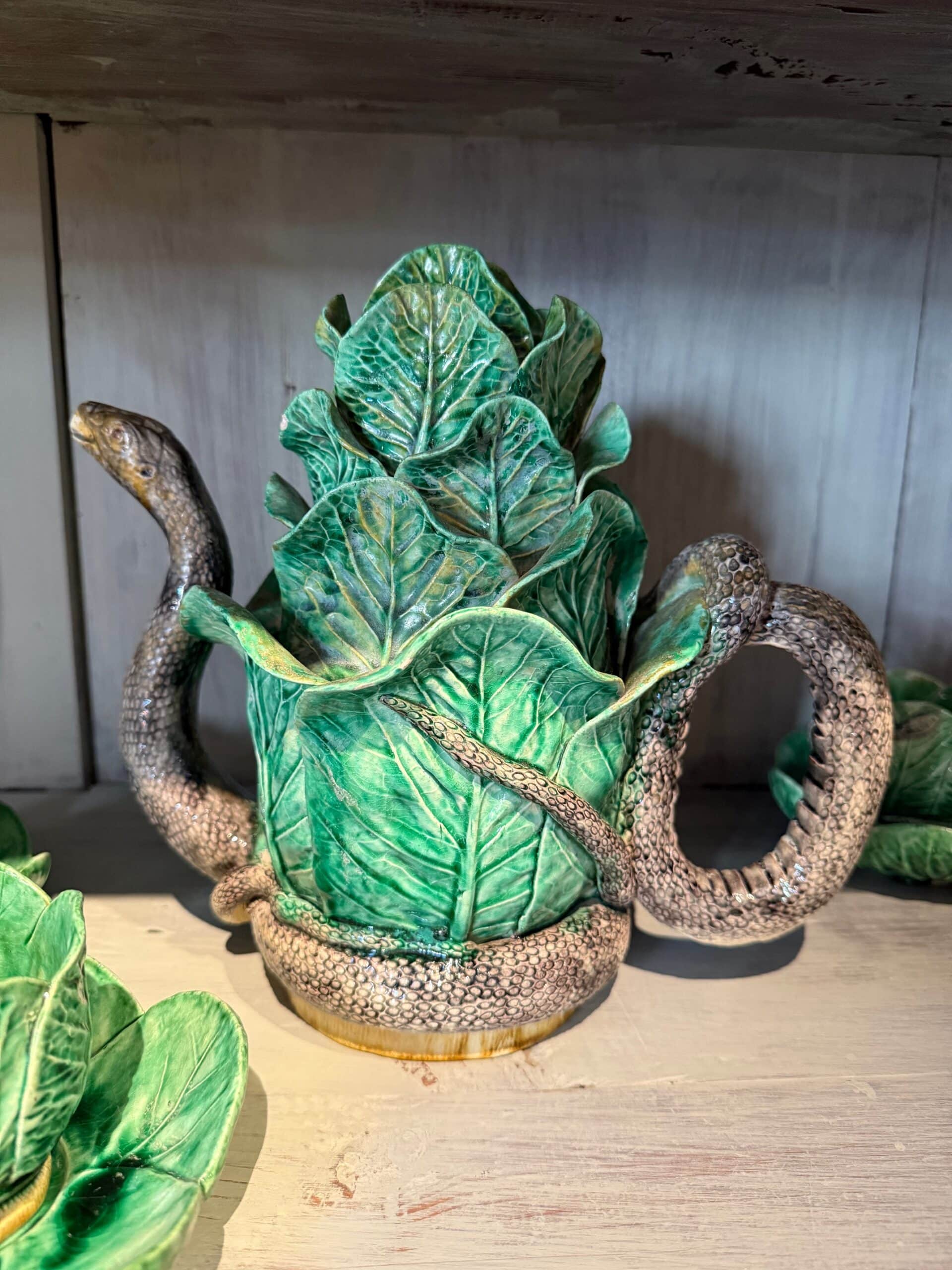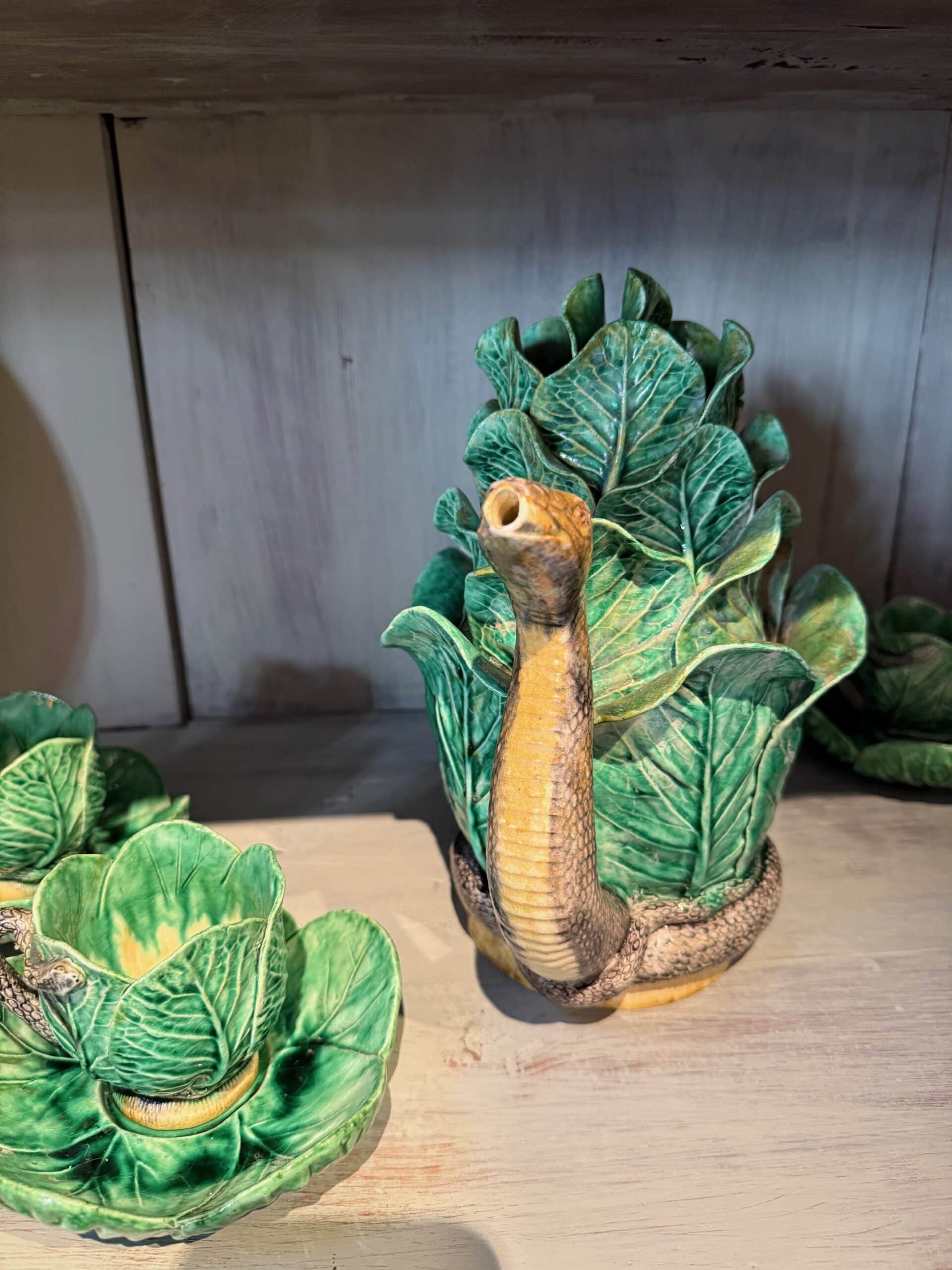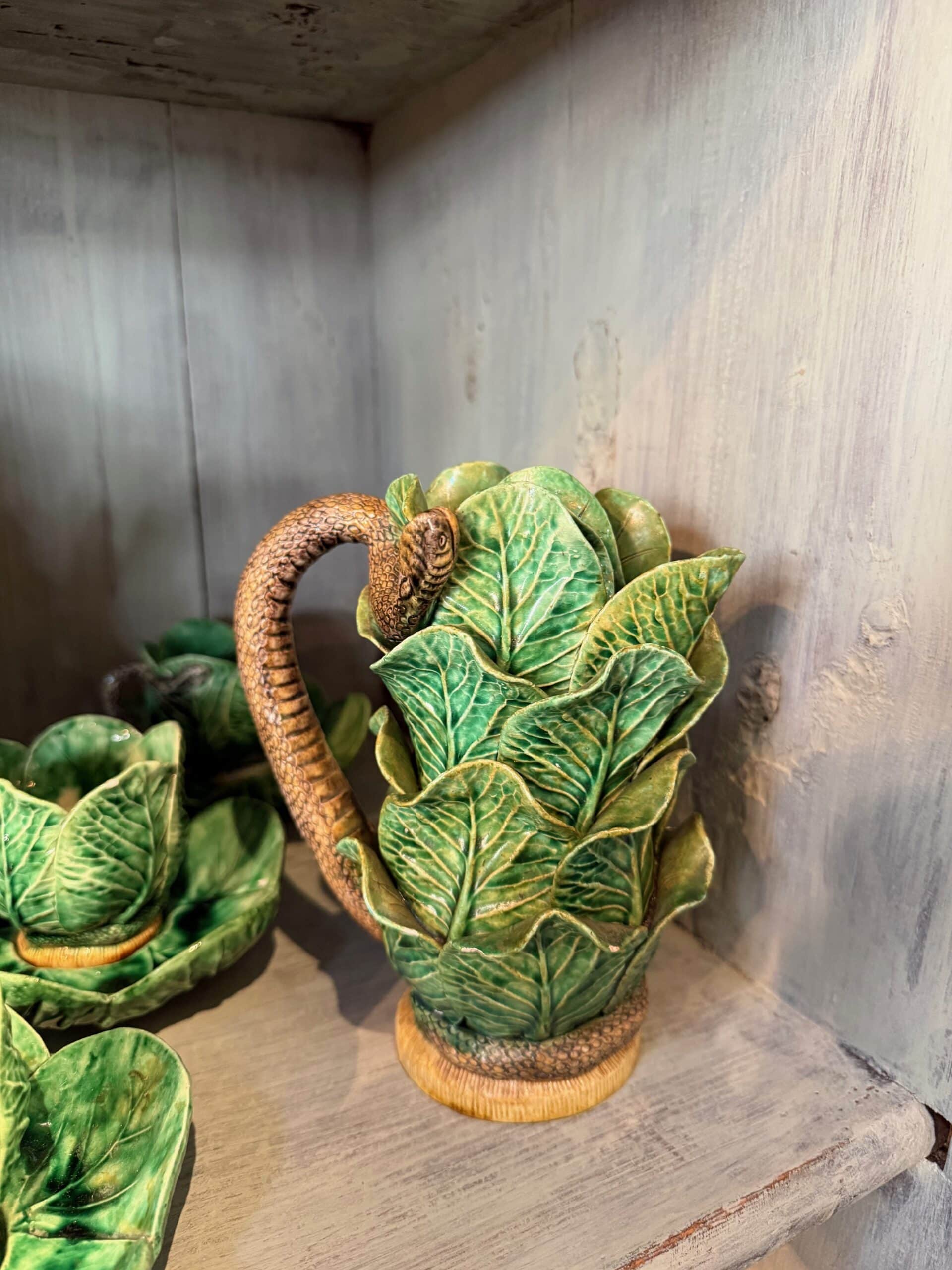 Étiquettes : barbotine, Bernard Palissy, Caldas da Rainha, Feuilles de choux, Manuel Mafra pour Caldas, serpent, suiveurs de palissy