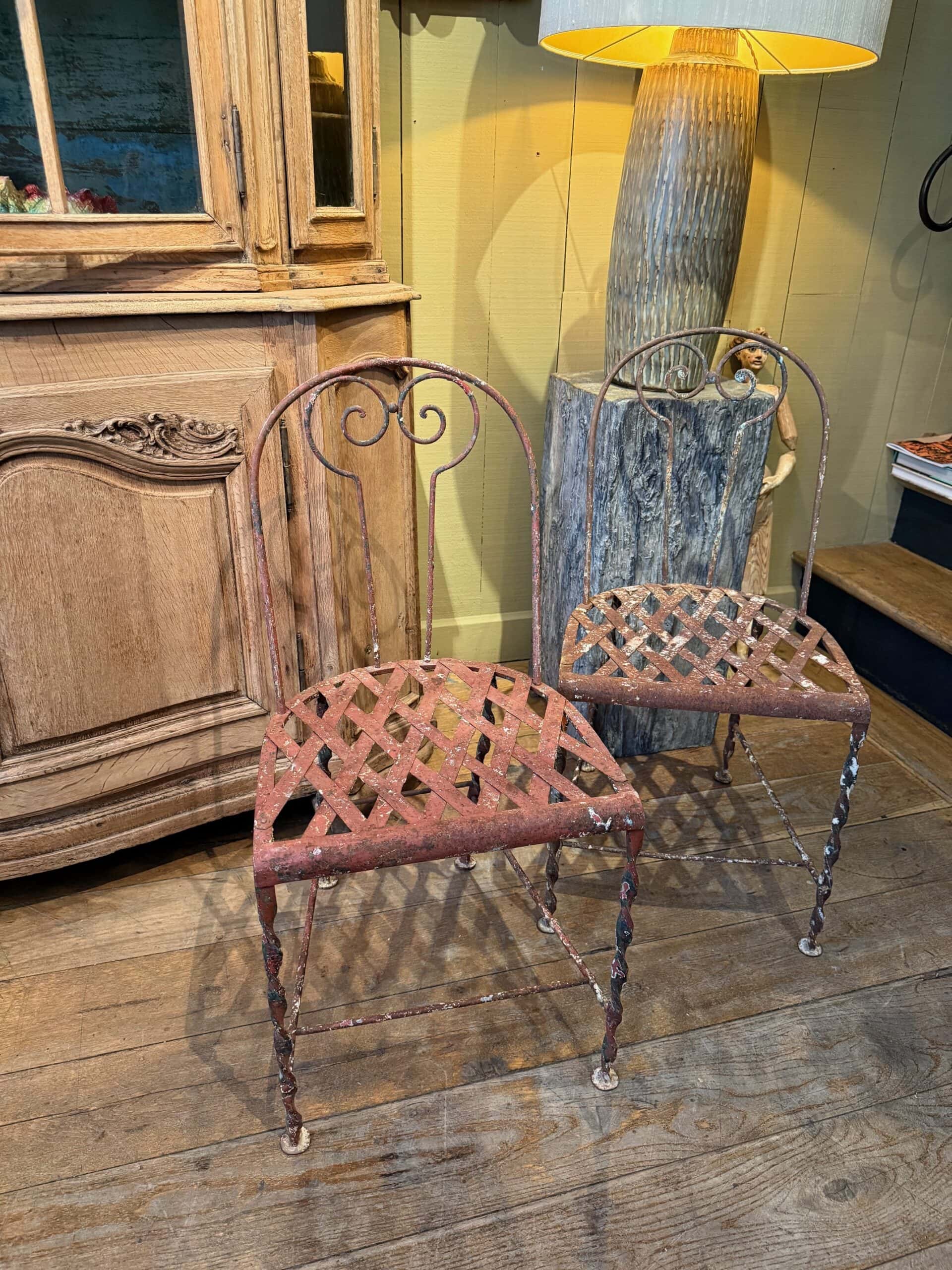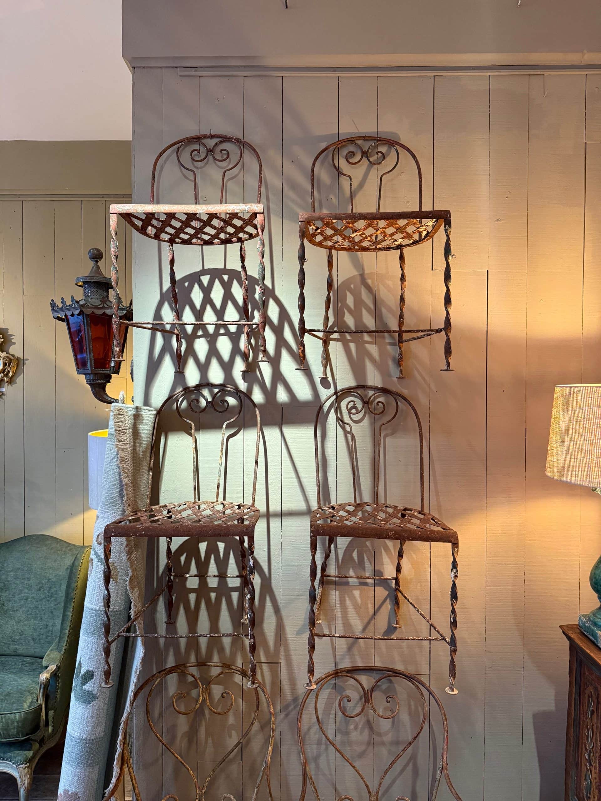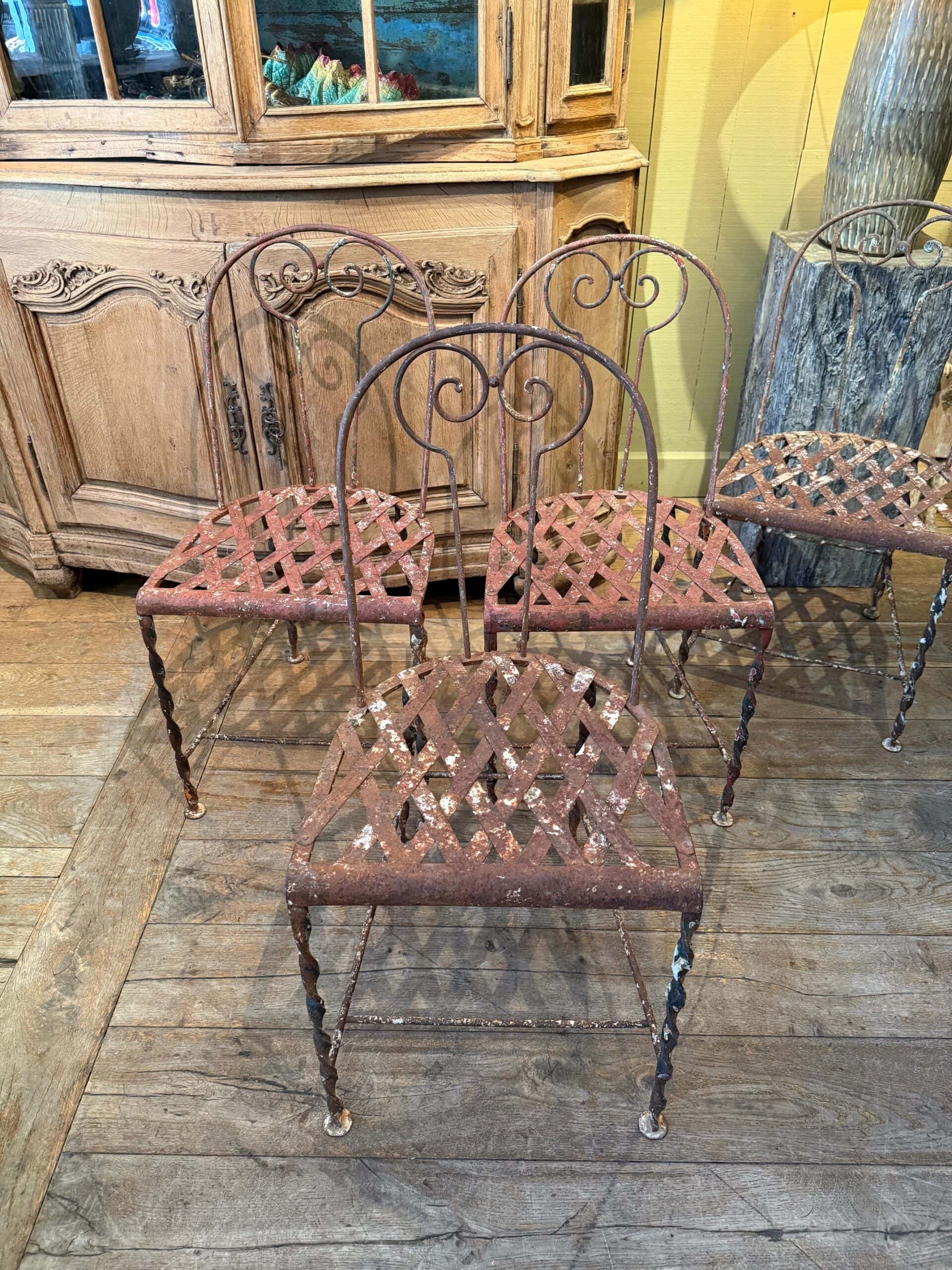 Suite de 4 chaises de jardin en fer rouge pieds torsadés XIXe