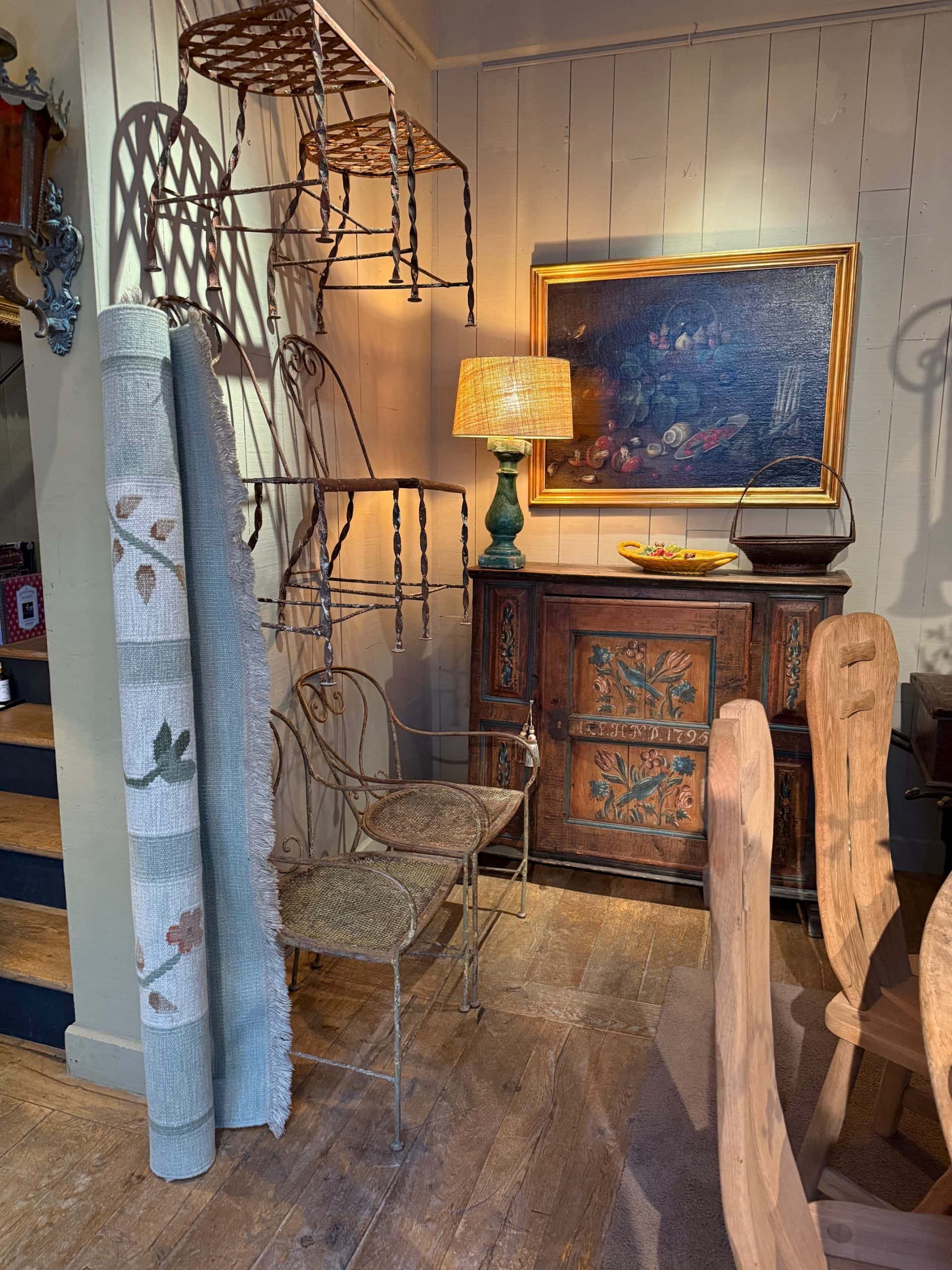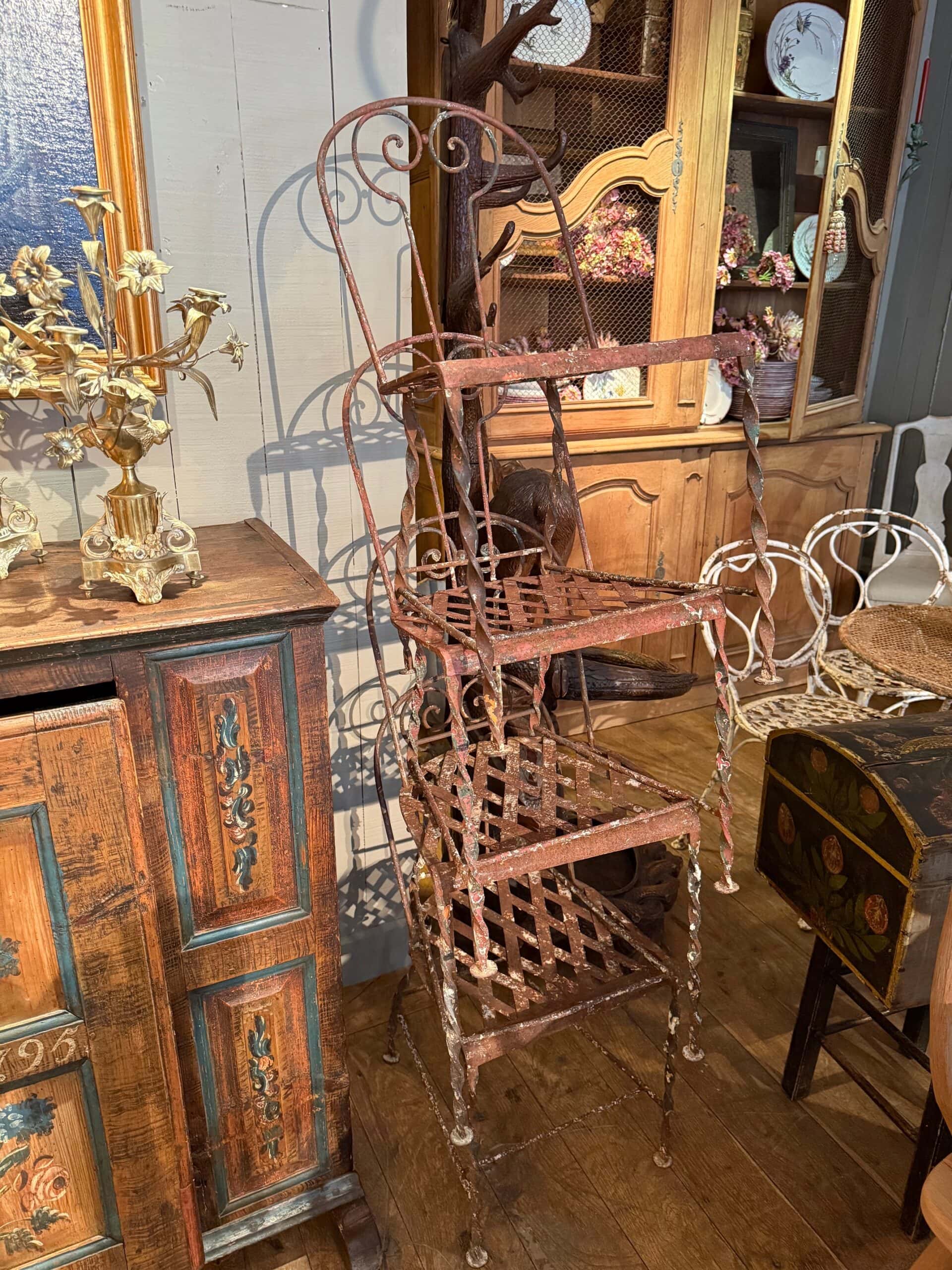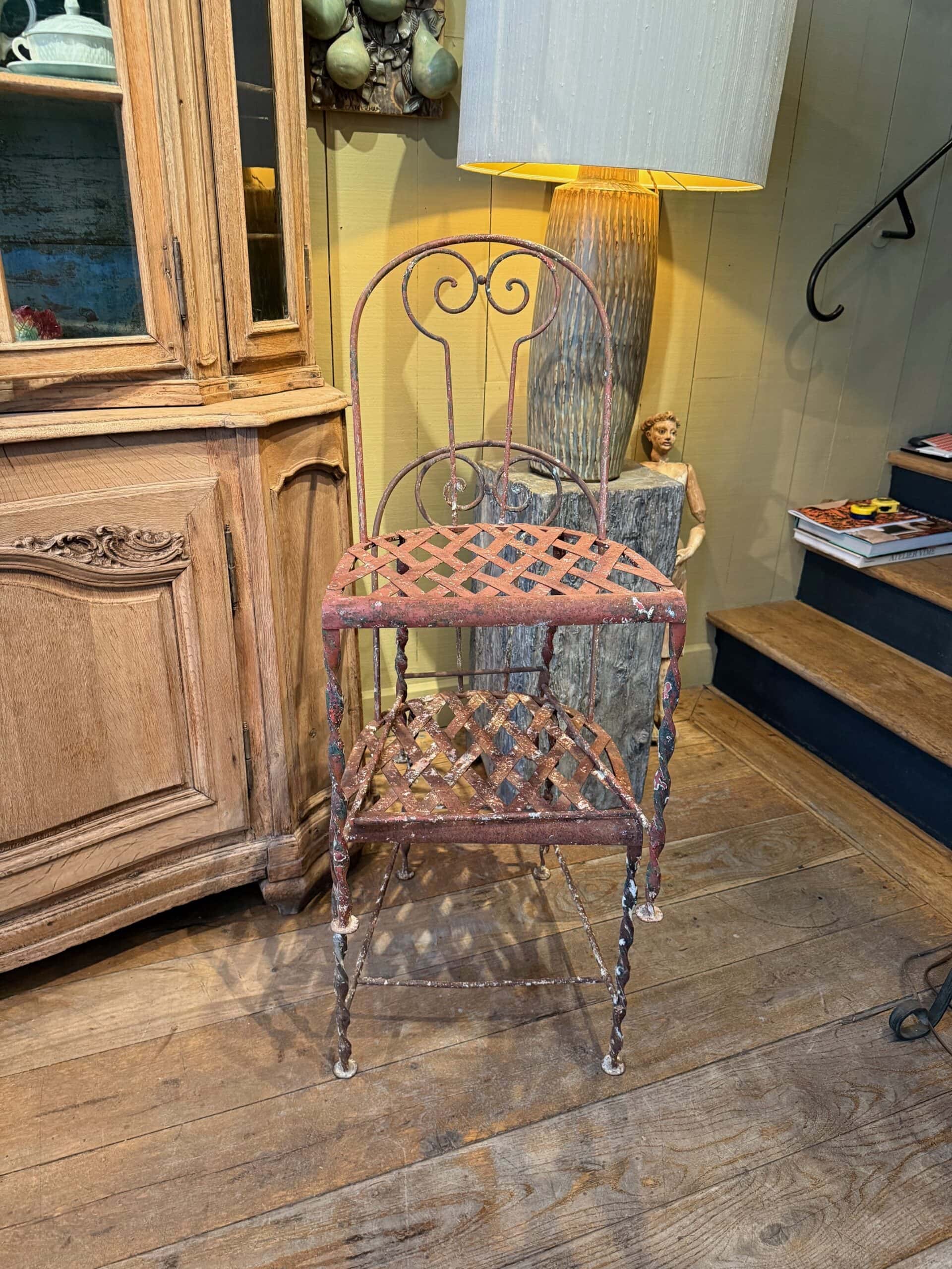 Suite de 4 chaises de jardin en fer rouge pieds torsadés XIXe