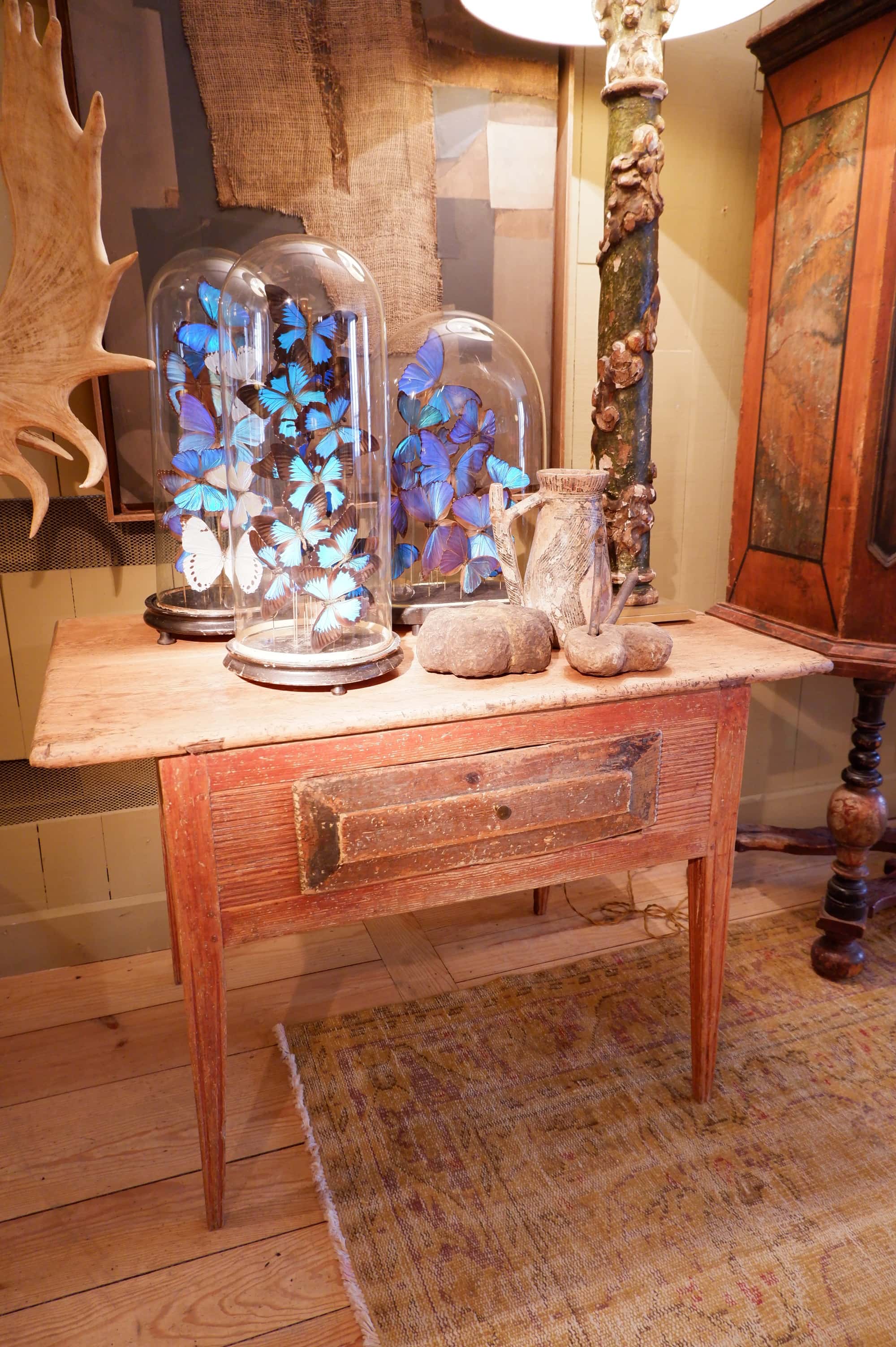 TABLE DE MILIEU SUEDOISE AVEC 1 TIROIR PATINE ROUGE PALE CA.1800