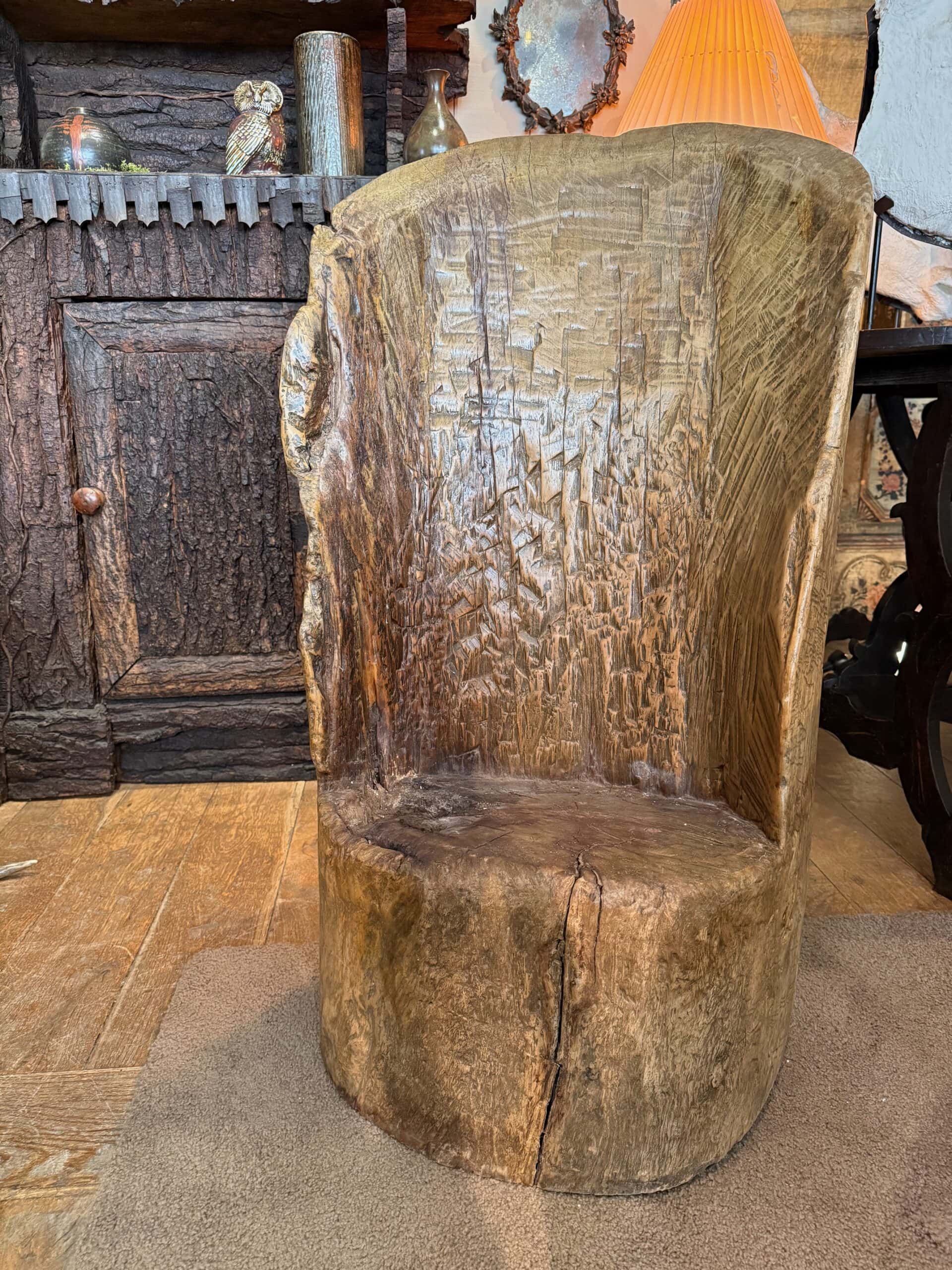 Fauteuil tronc “massif” en pin sculpté Irlandais XIXe