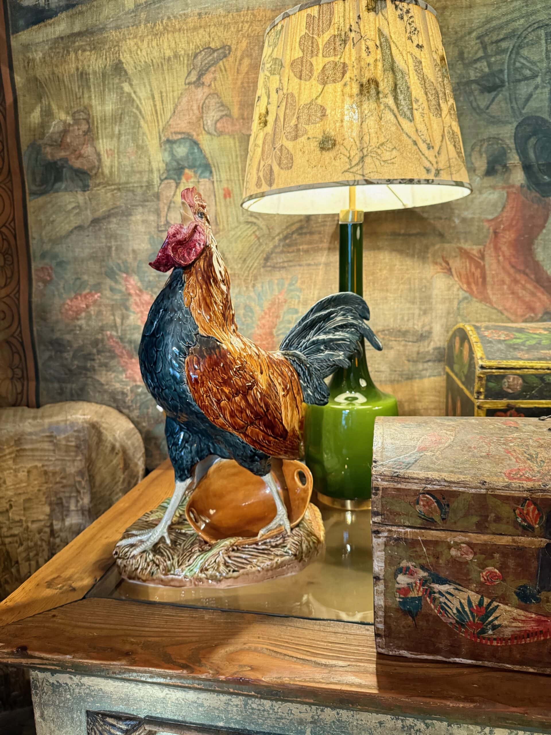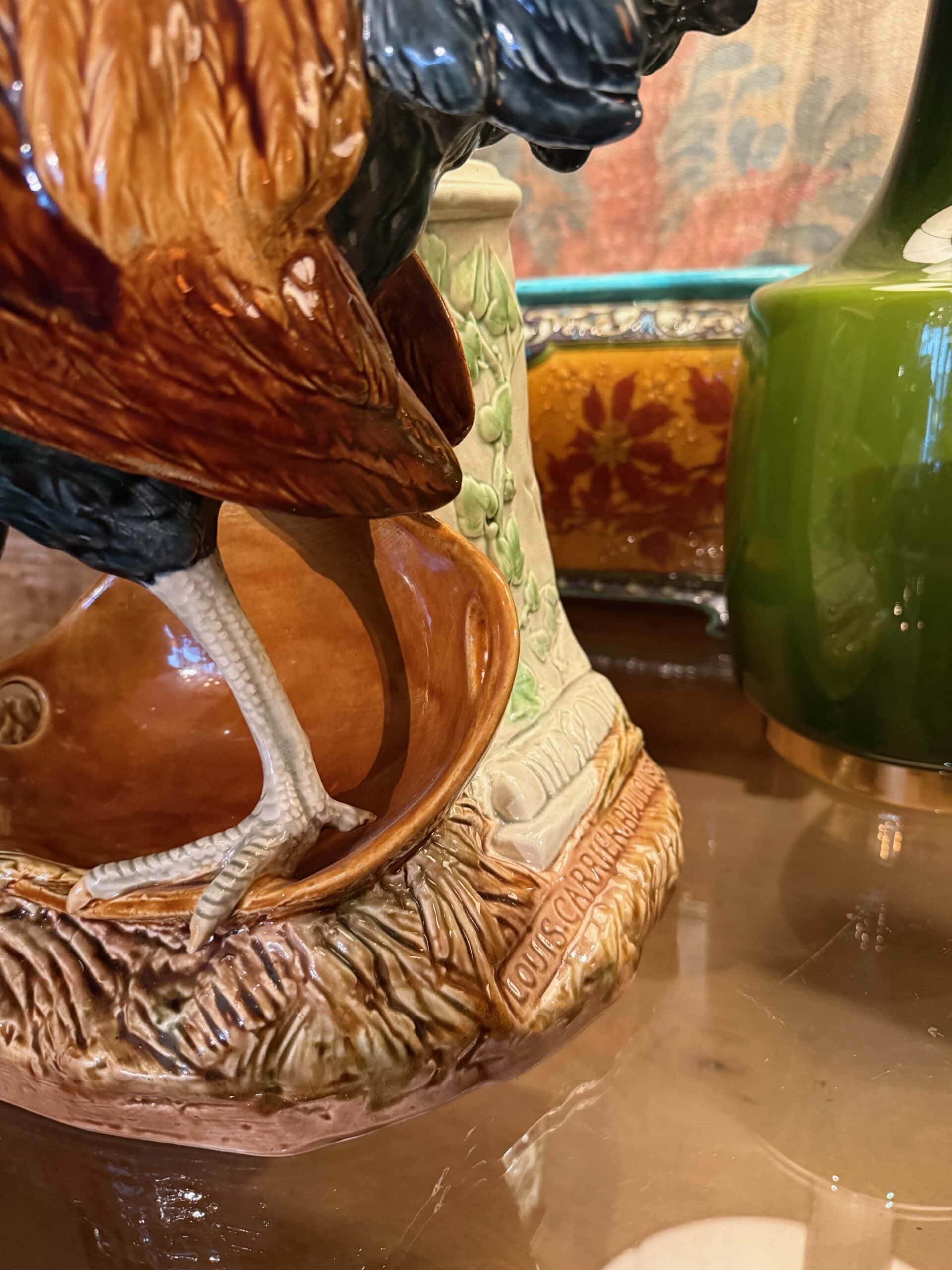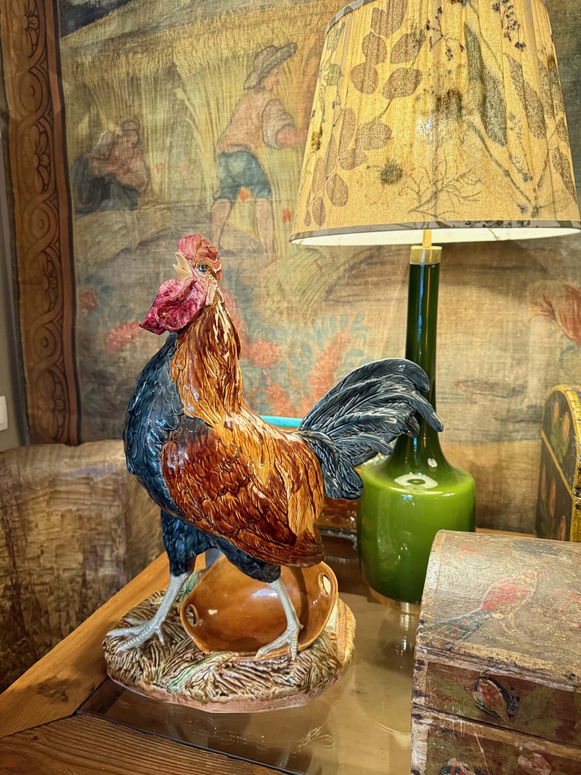 Grand coq Français en faïence de Choisy Le Roi signé par Louis Carrier Belleuse