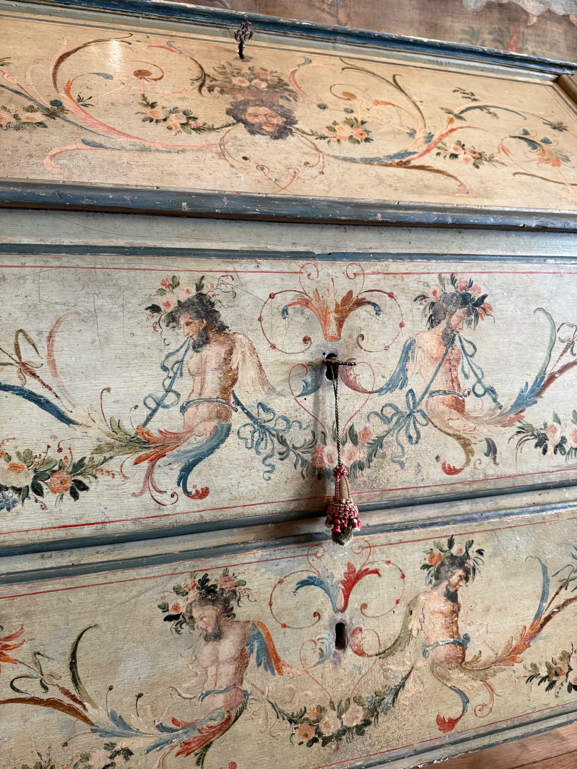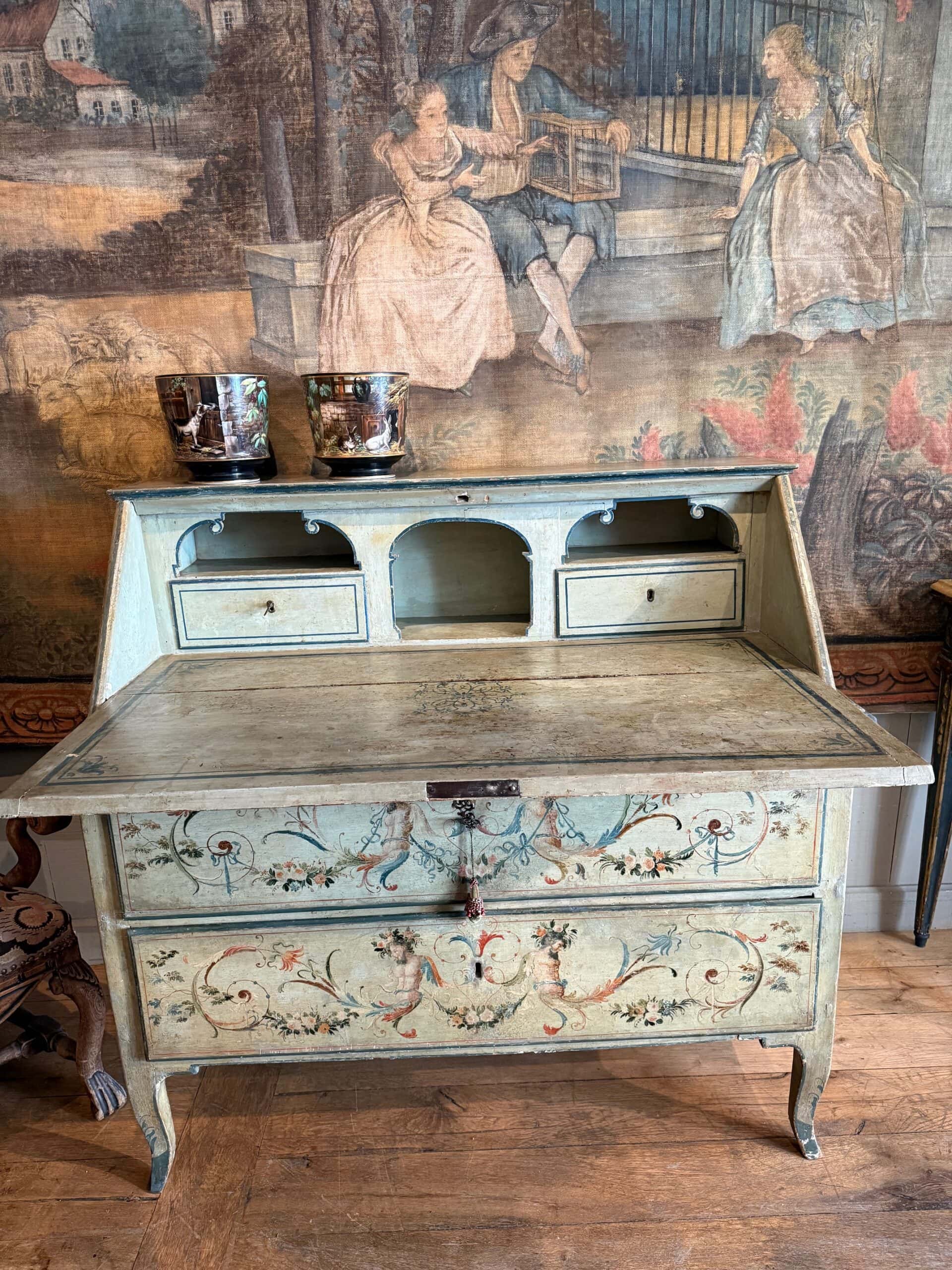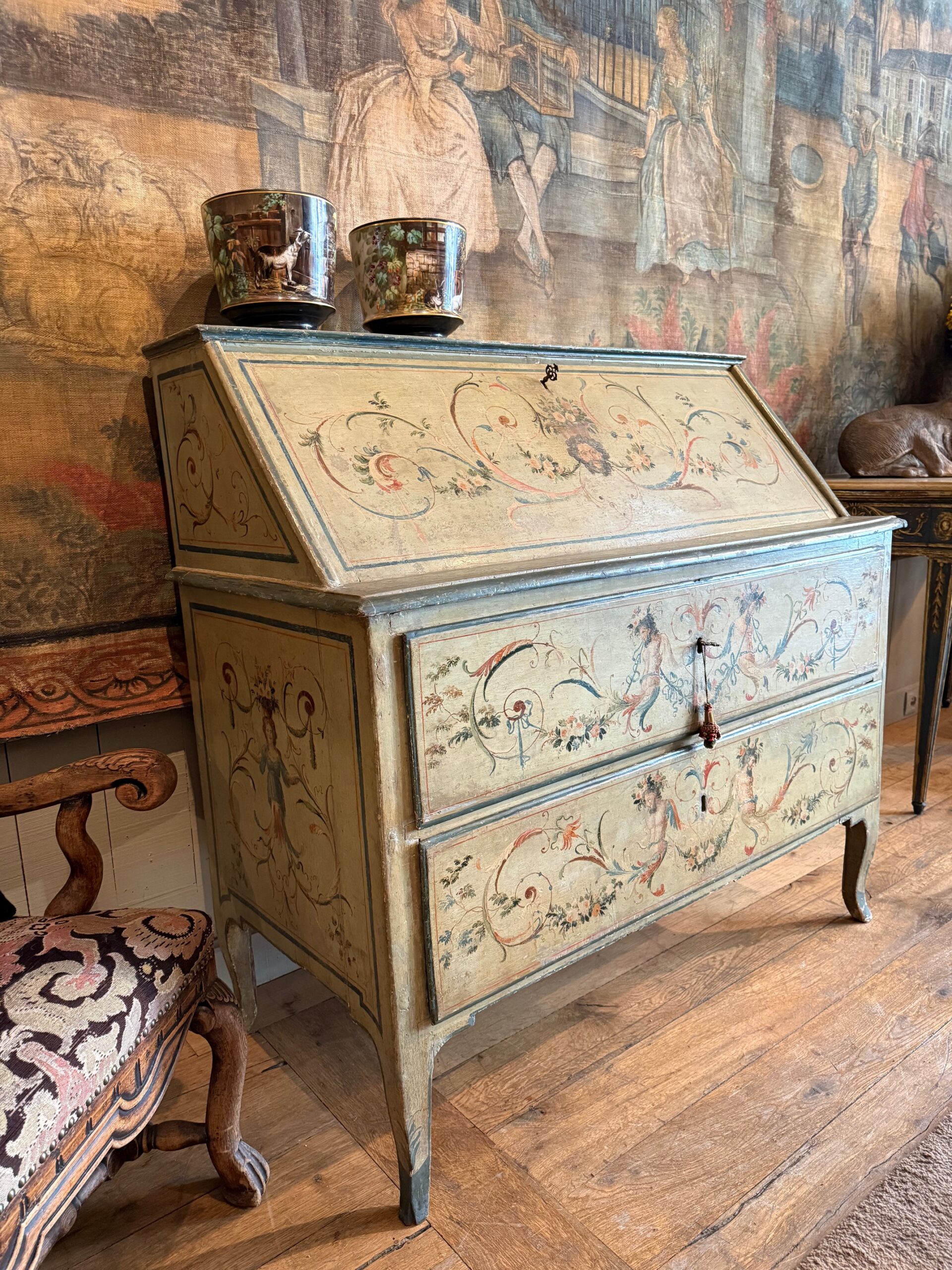 Grand secrétaire scriban en bois peint polychrome – Région des Marches – Italie XVIIIE