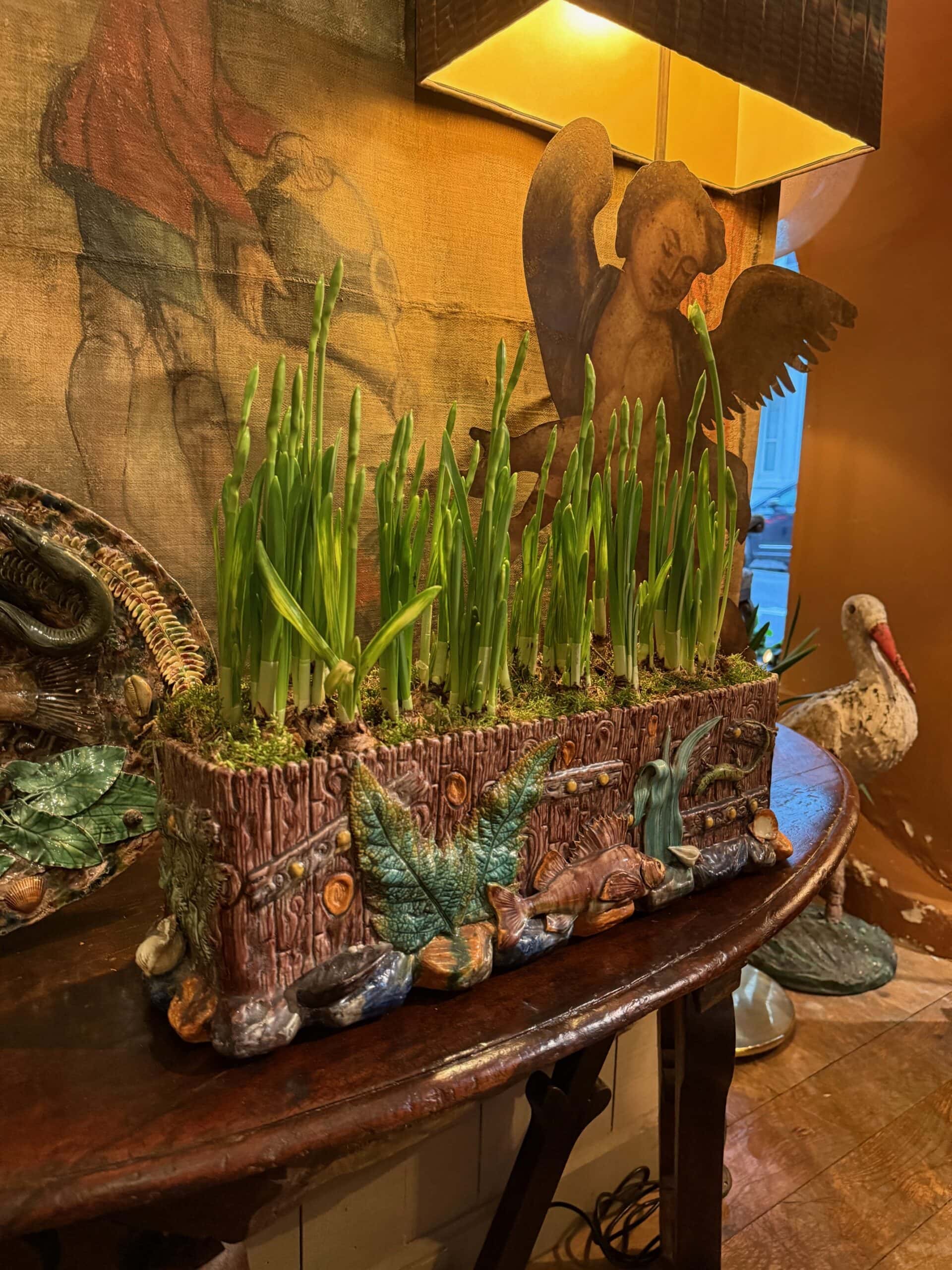 Étiquettes : barbotine, Bernard Palissy, école de Rouen, jardinière en majolique, majolique, suiveurs de palissy, thomas sergent, Thomas Victor SERGENT (1830-1890), vendu