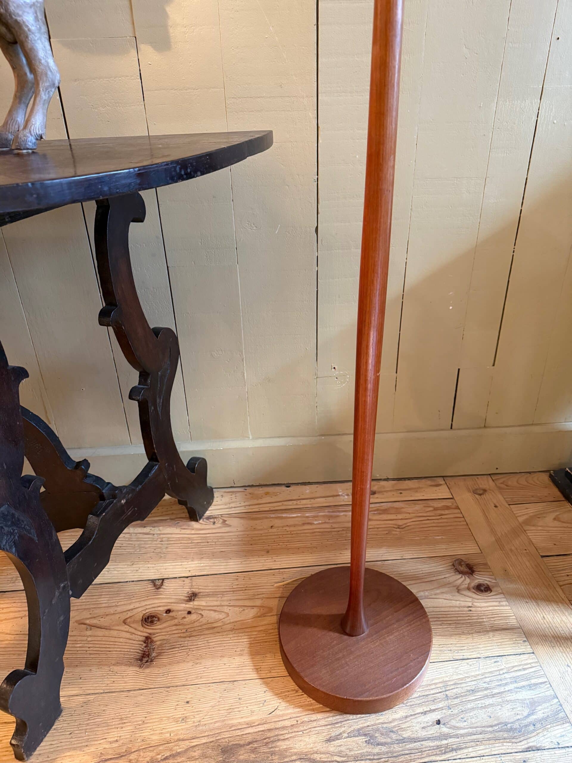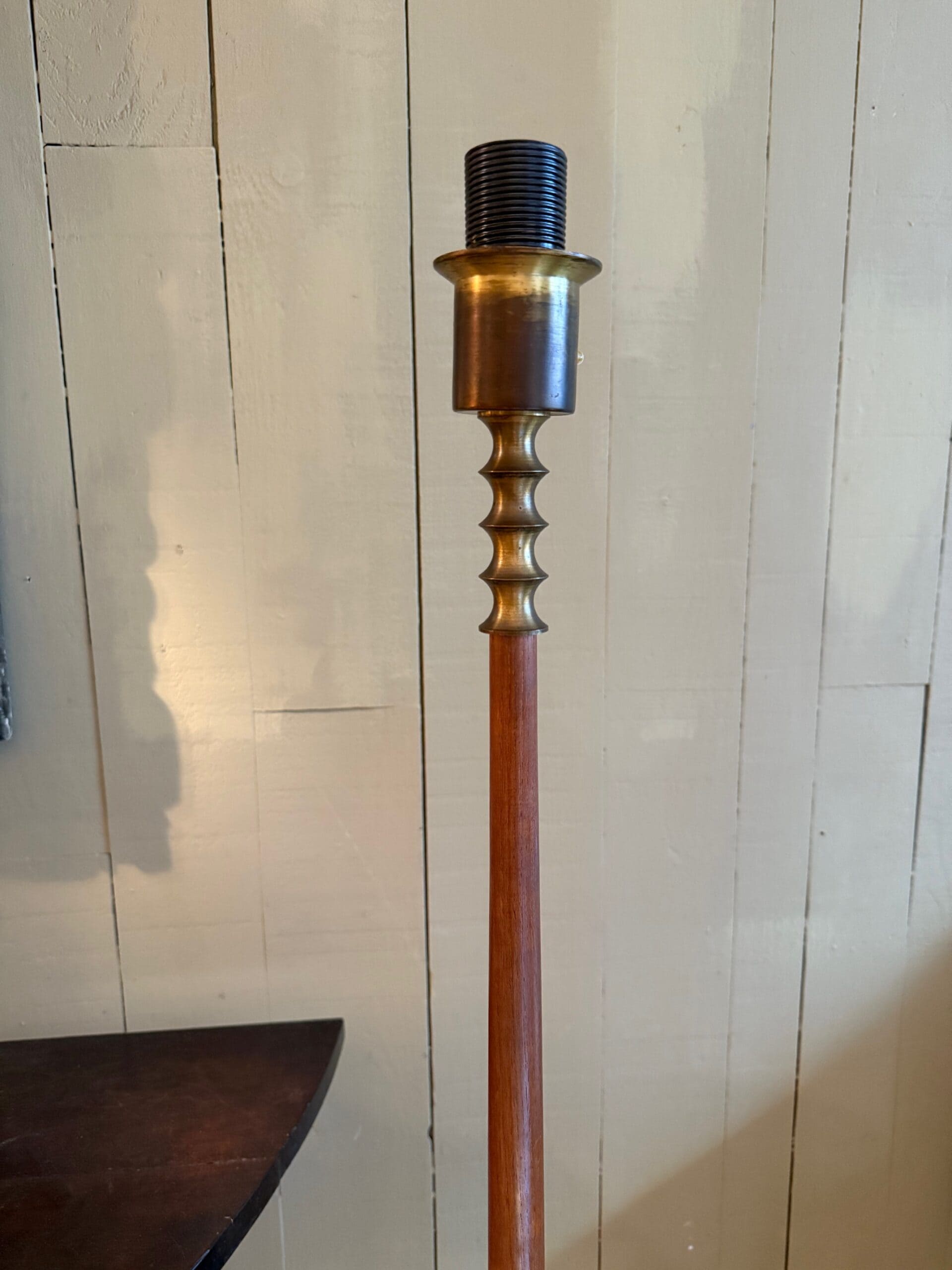 Lampadaire Danois en teck & laiton canellé – ca.1950
