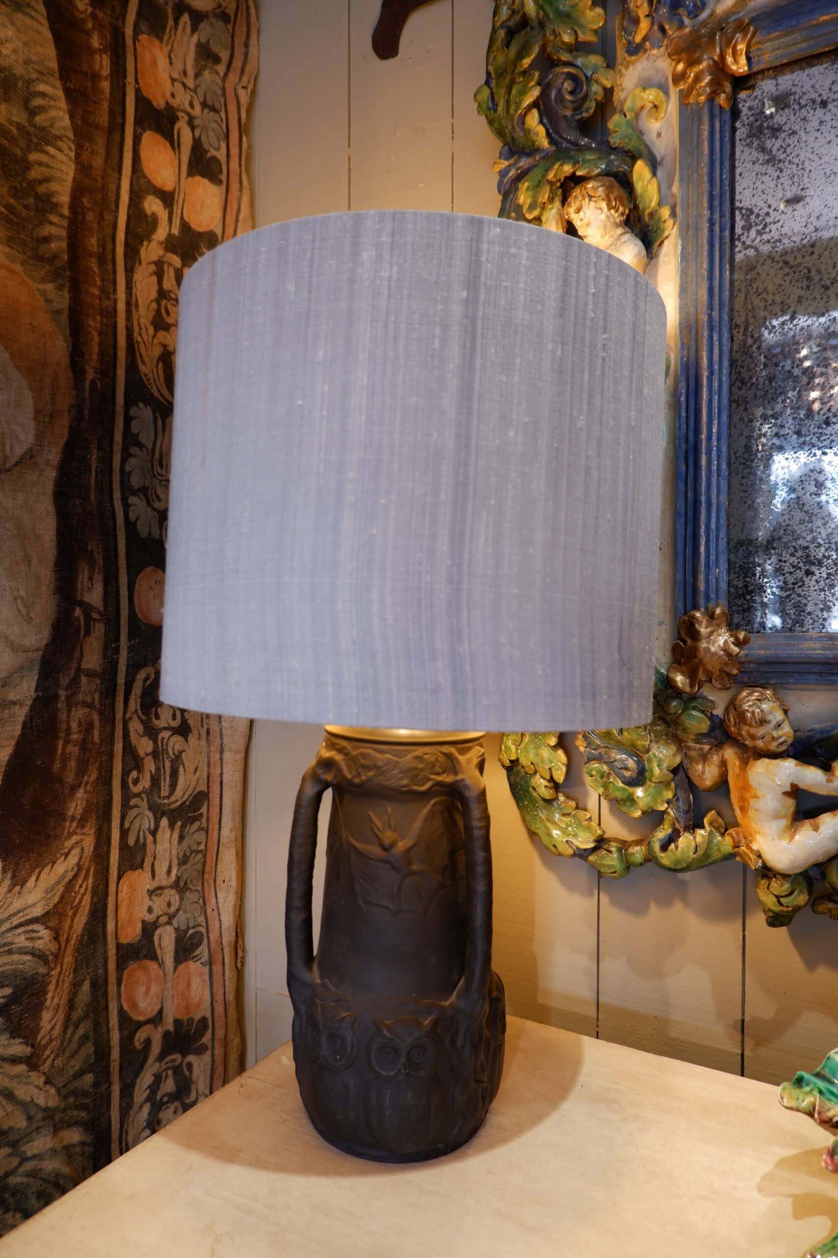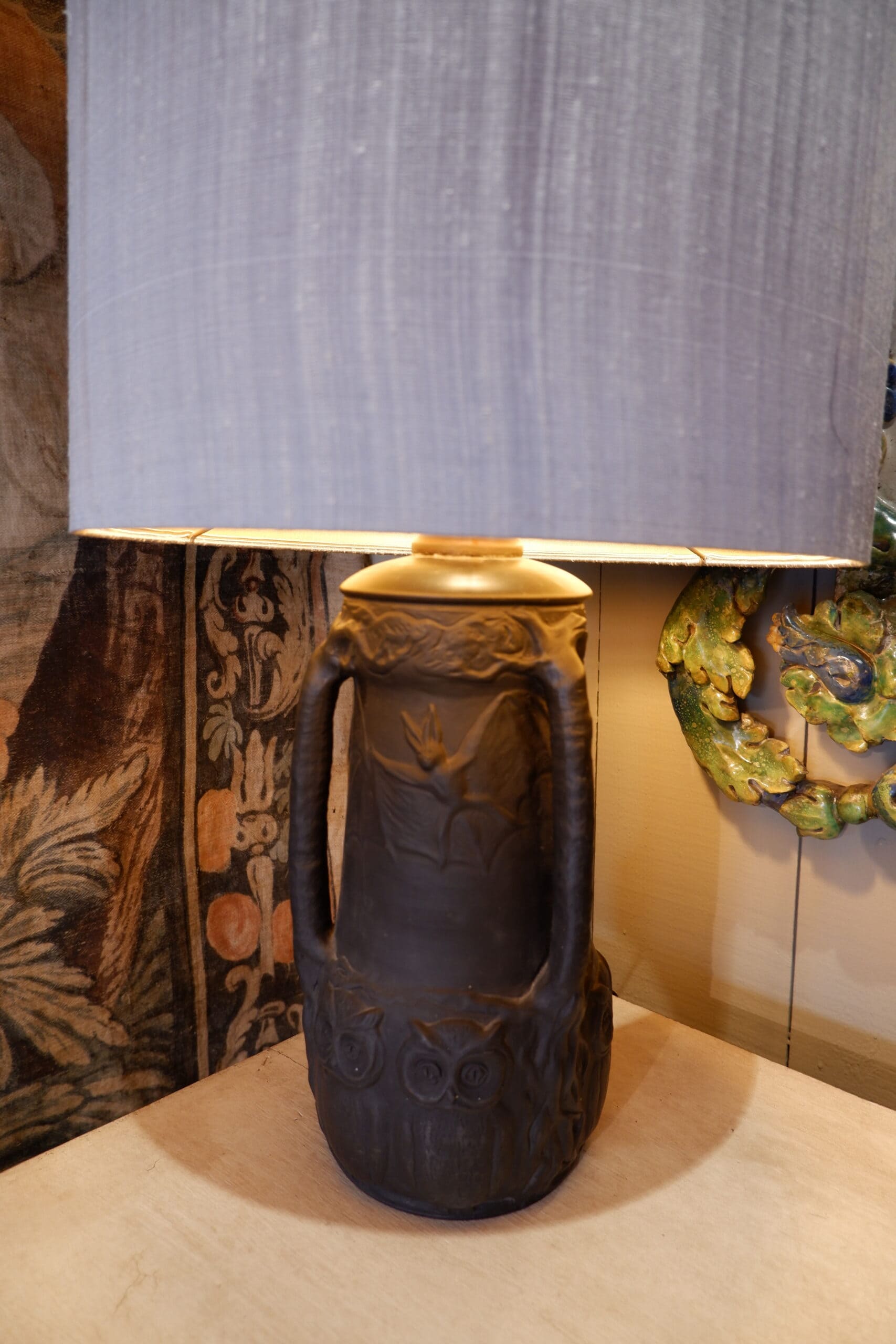 Étiquettes : a, Adolph Hjorth, art nouveau lamp, Bornholm, cérmaique en relief, chauve-souris, danish lamp, hibou, vampires