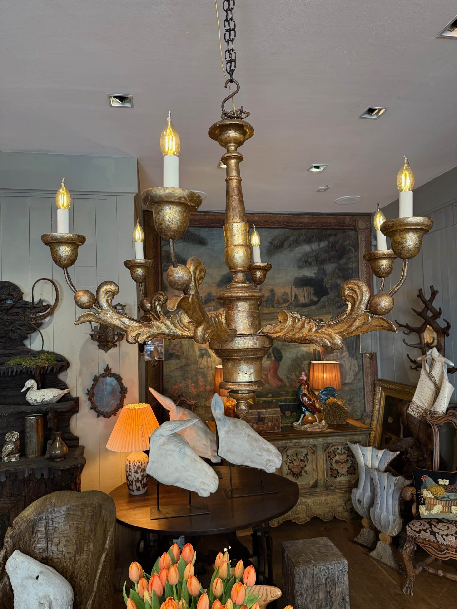 3. Lustre à 6 feux en bois doré Italien XIXe