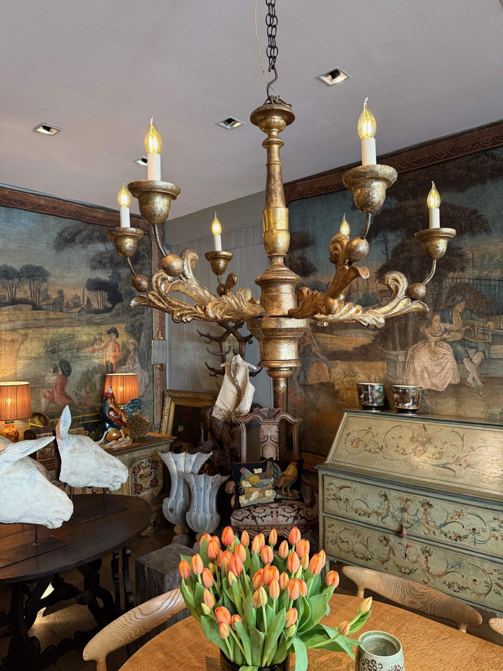 Lustre à 6 feux en bois doré Italien XIXe – Image 5
