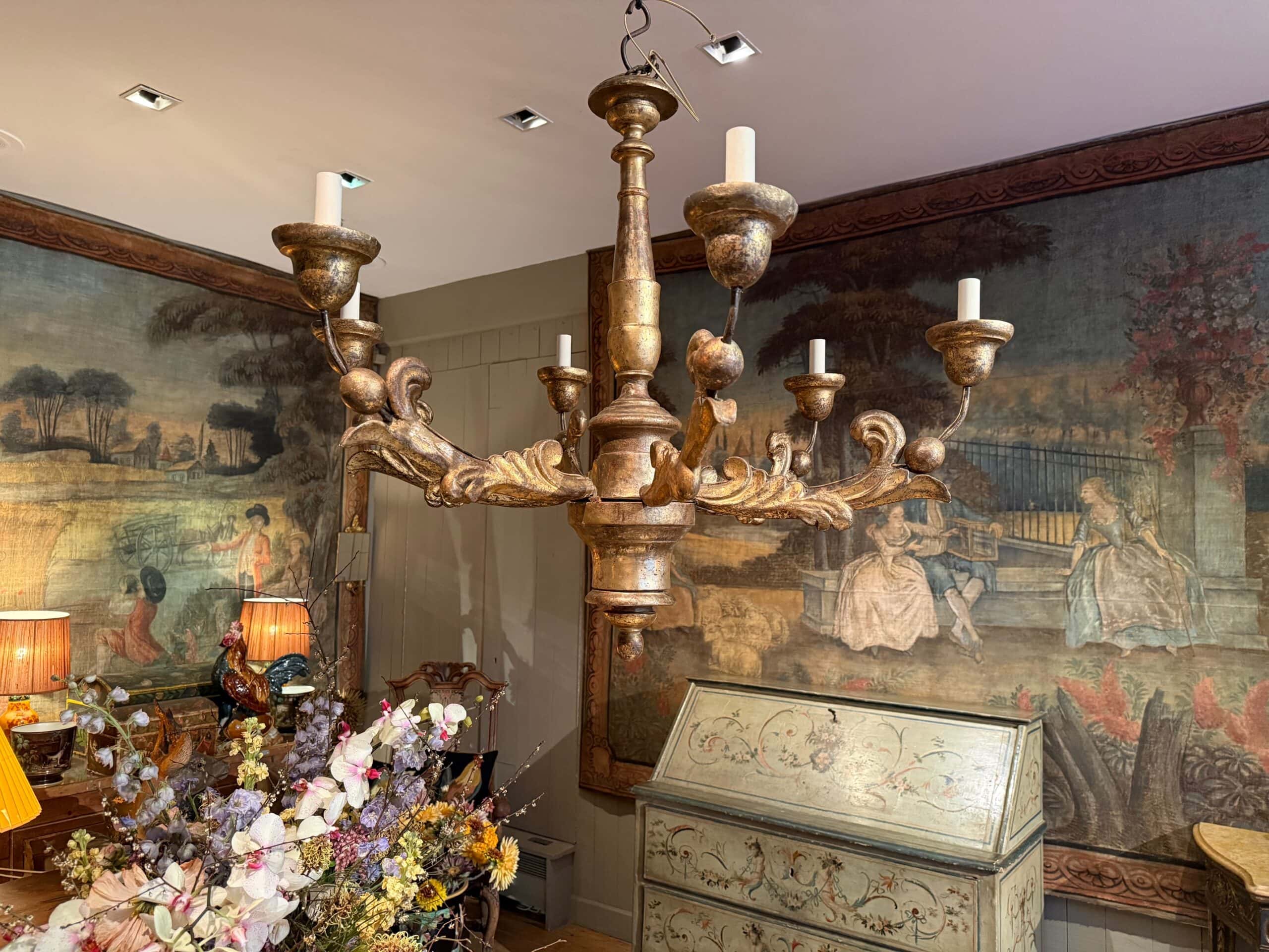 Lustre à 6 feux en bois doré Italien XIXe – Image 4
