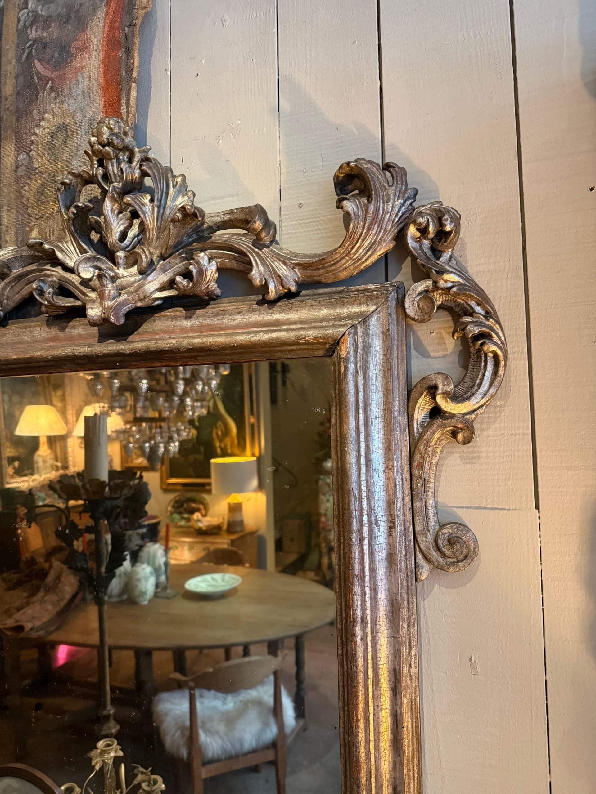 Miroir en bois sculpté Volutes baroque recouvert de feuille d’argent – Italie XIXE