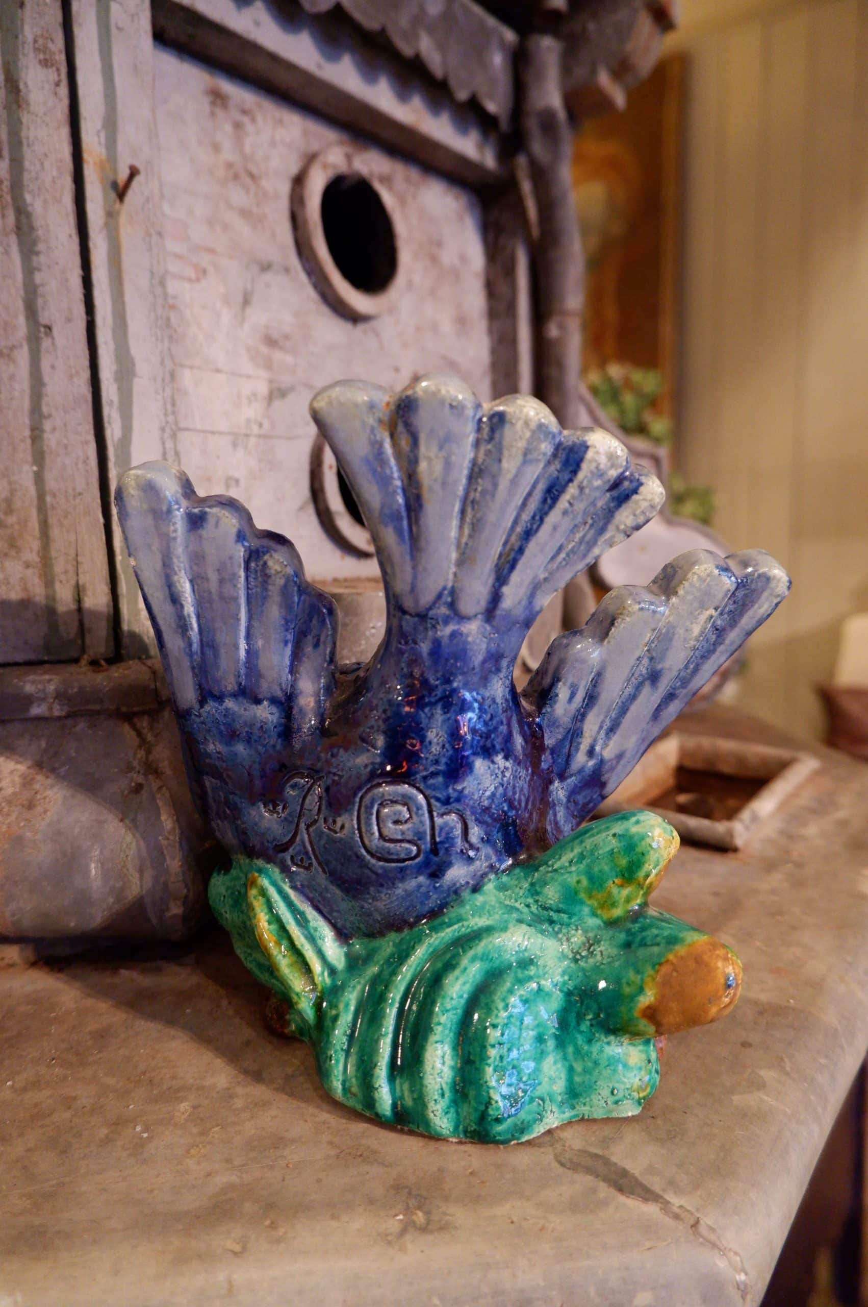 Oiseau en céramique bleue par G.Nylund pour Rorstrand