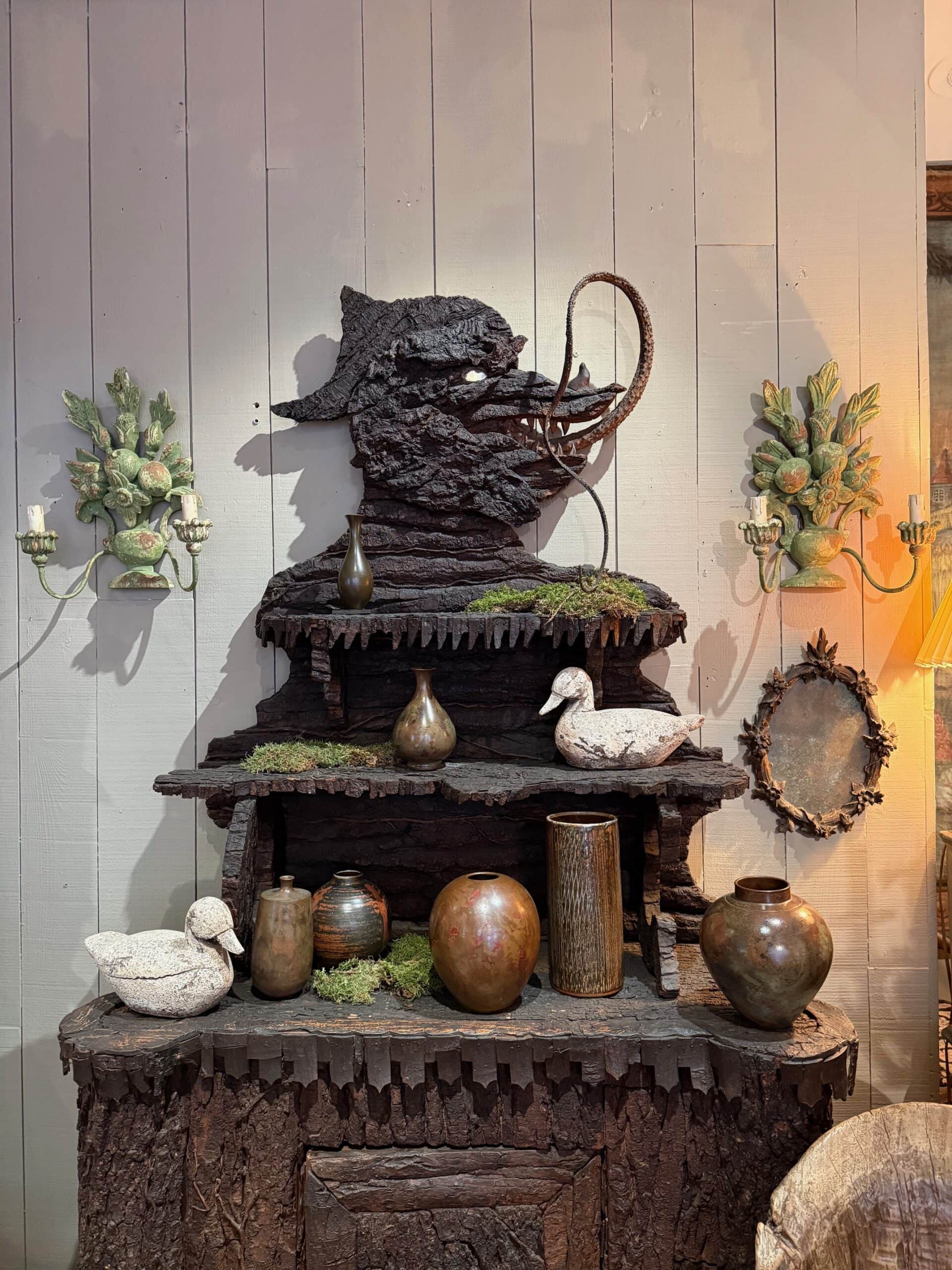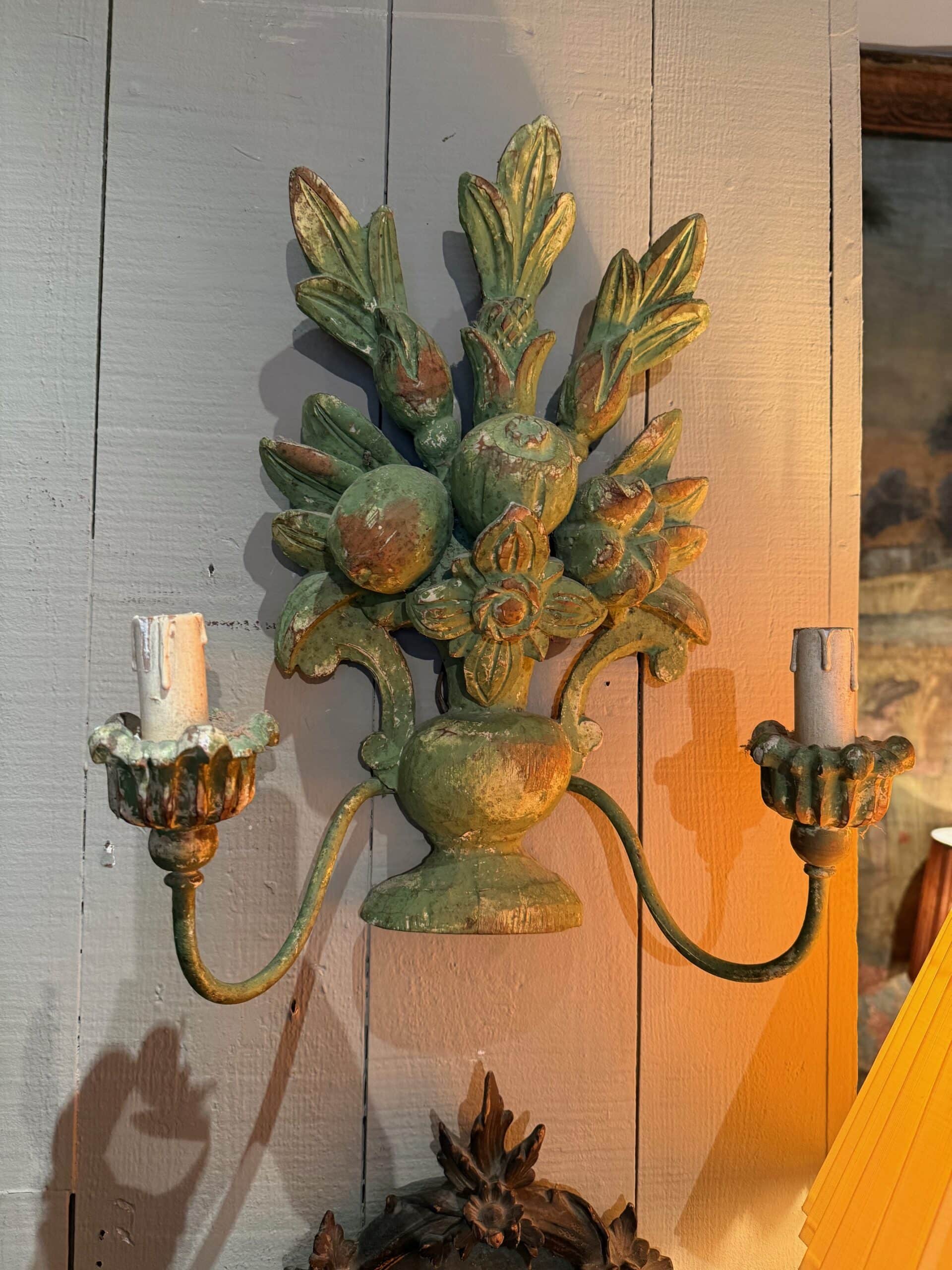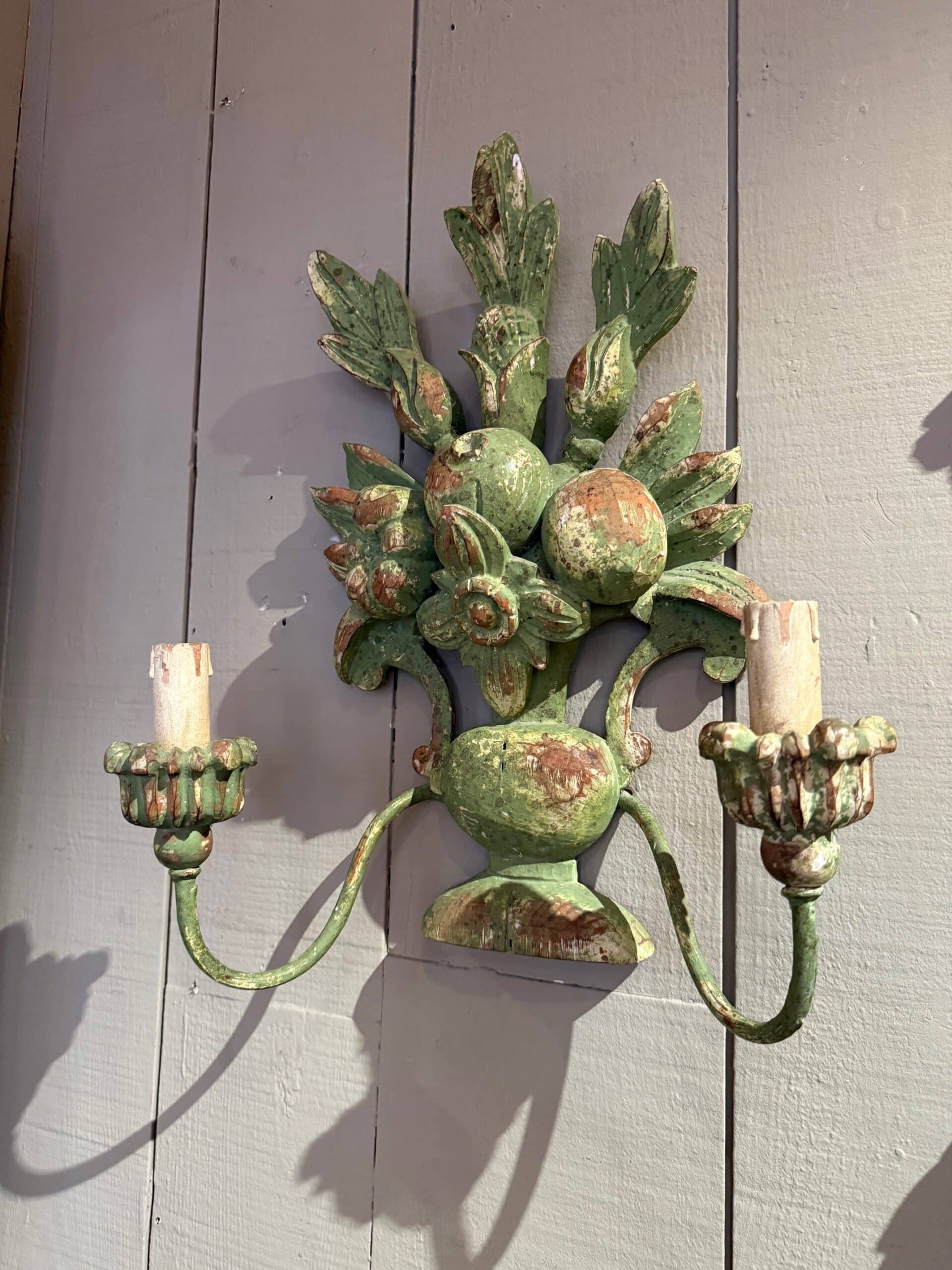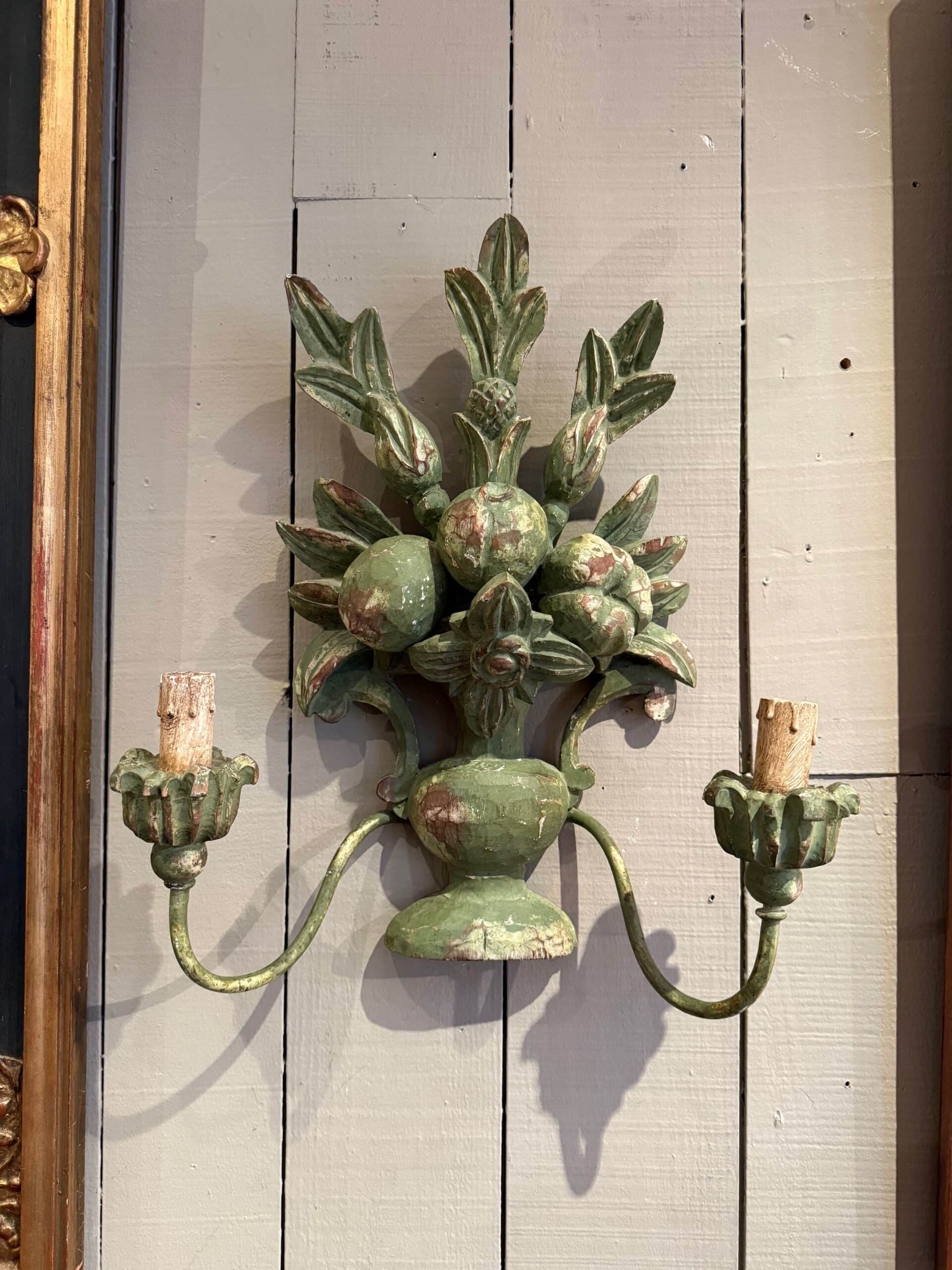 Paire d’appliques en bois sculpté & peint ca.1900