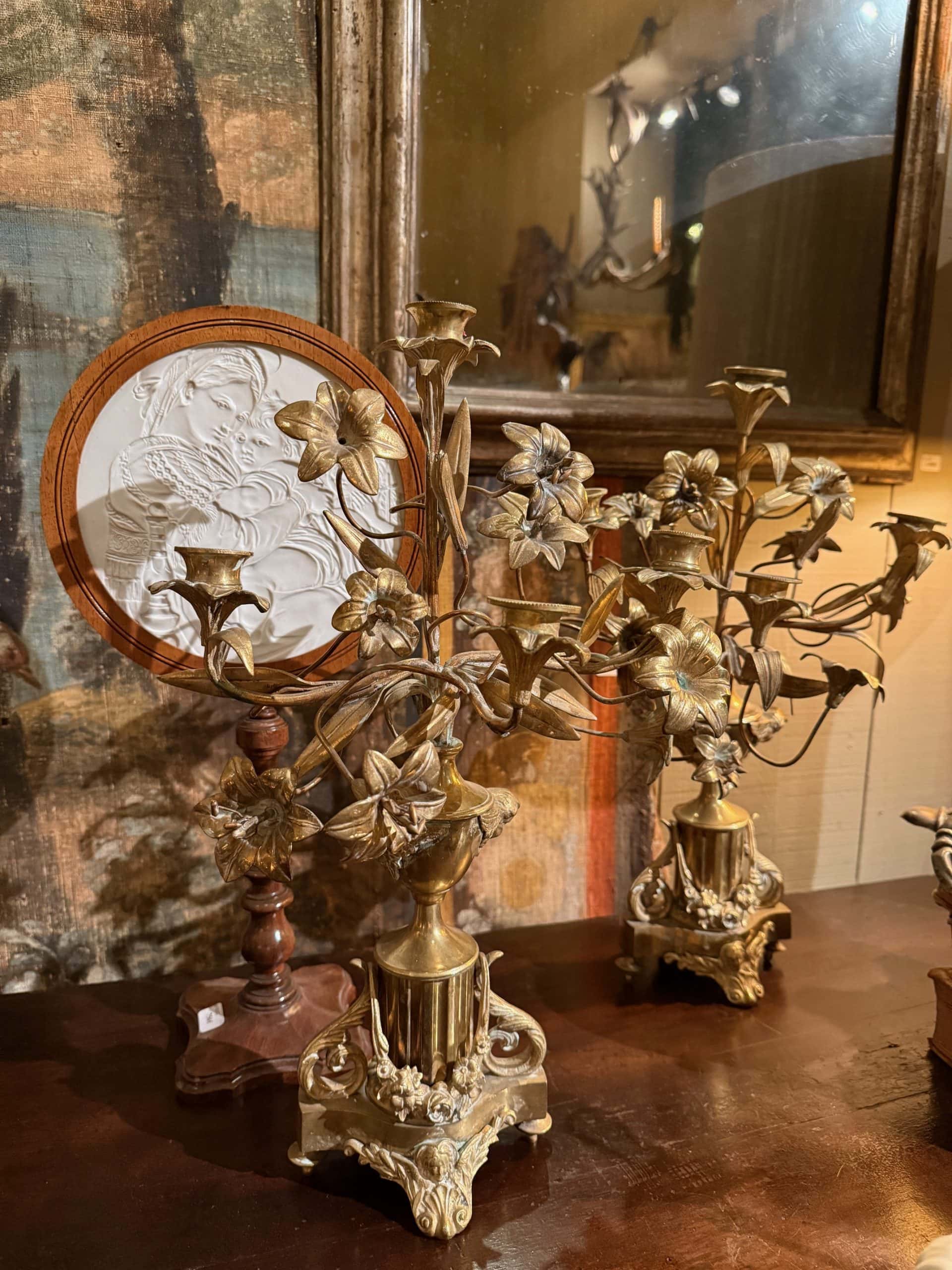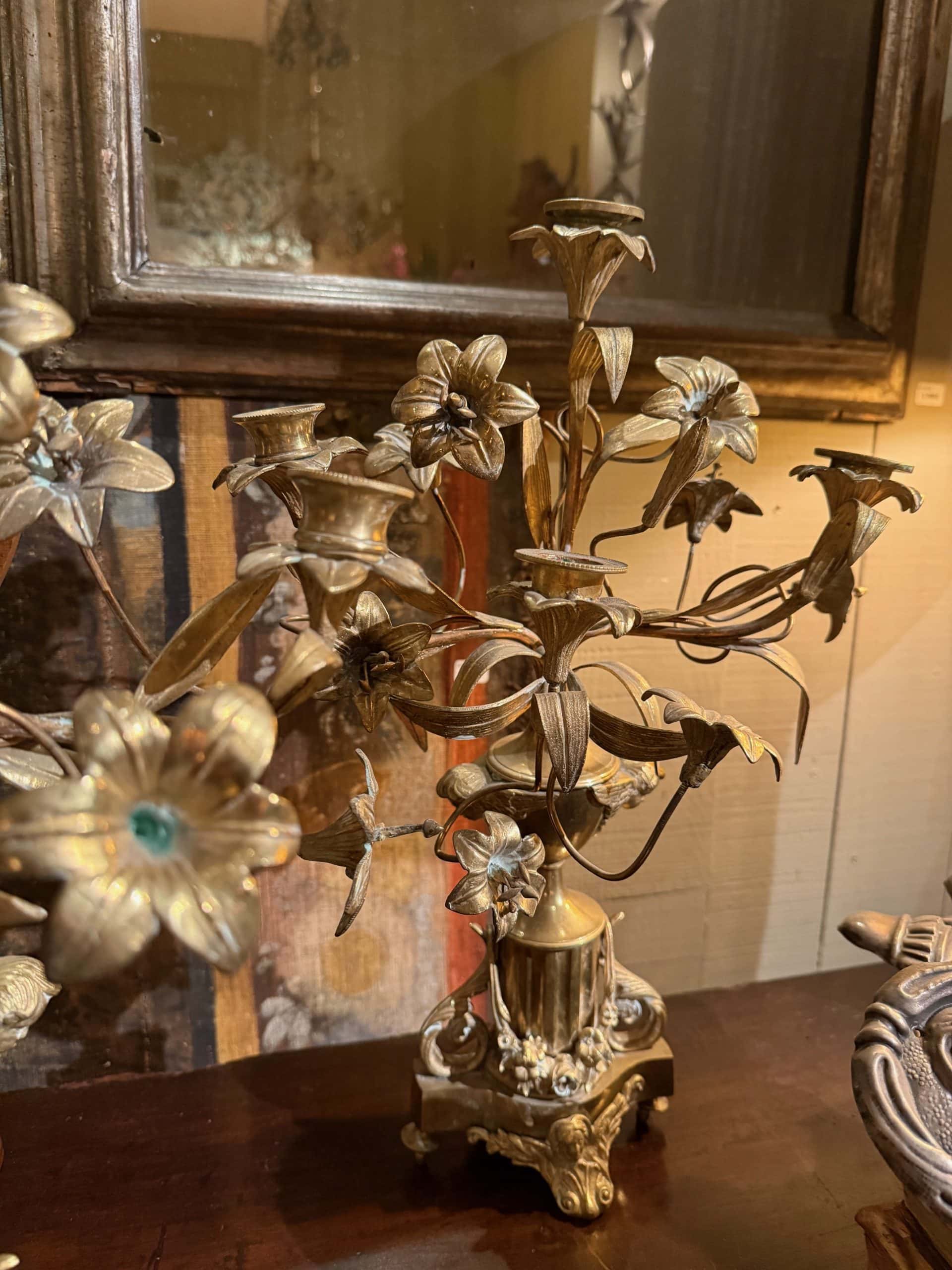 Paire de bougeoirs fleurs de lys en laiton doré – Milieu du 19e siècle