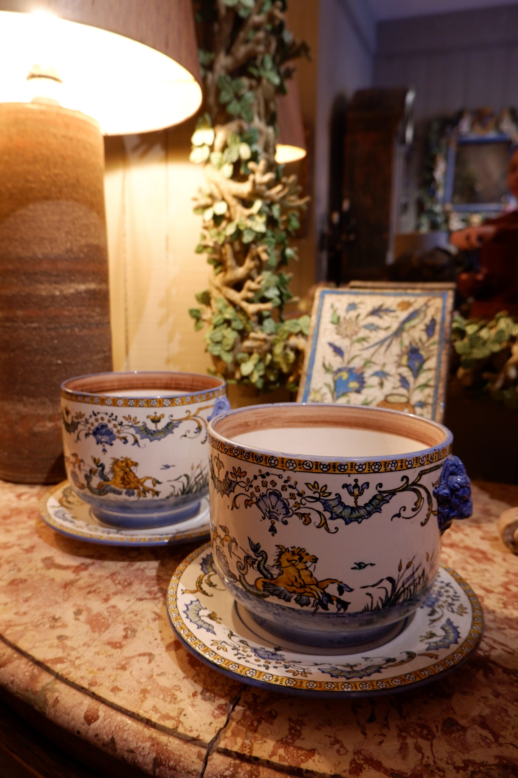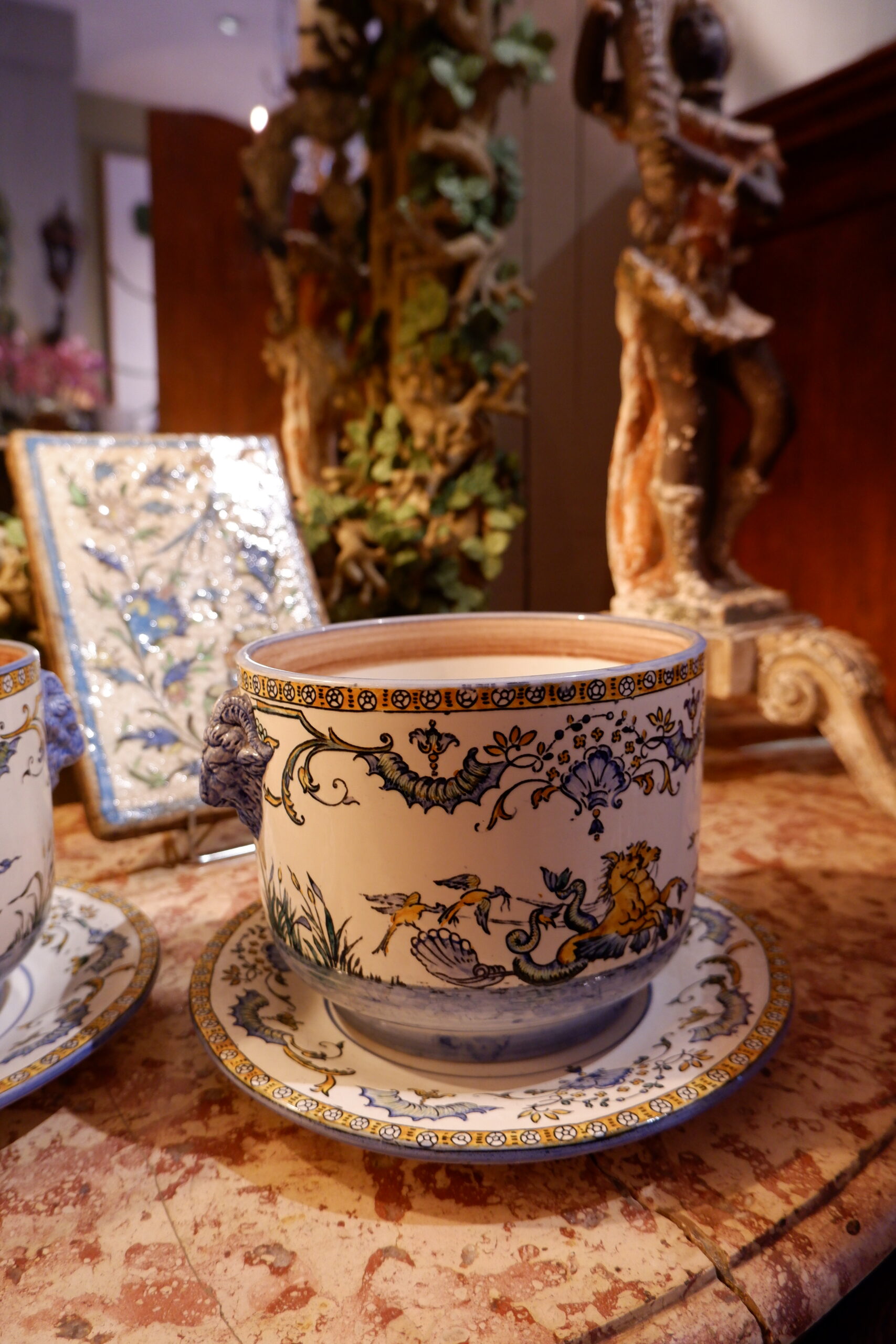 Paire de cache-pot et leur soucoupe – Décor “Chars marins” par la manufacture de Giens ca.1871 (Copie)