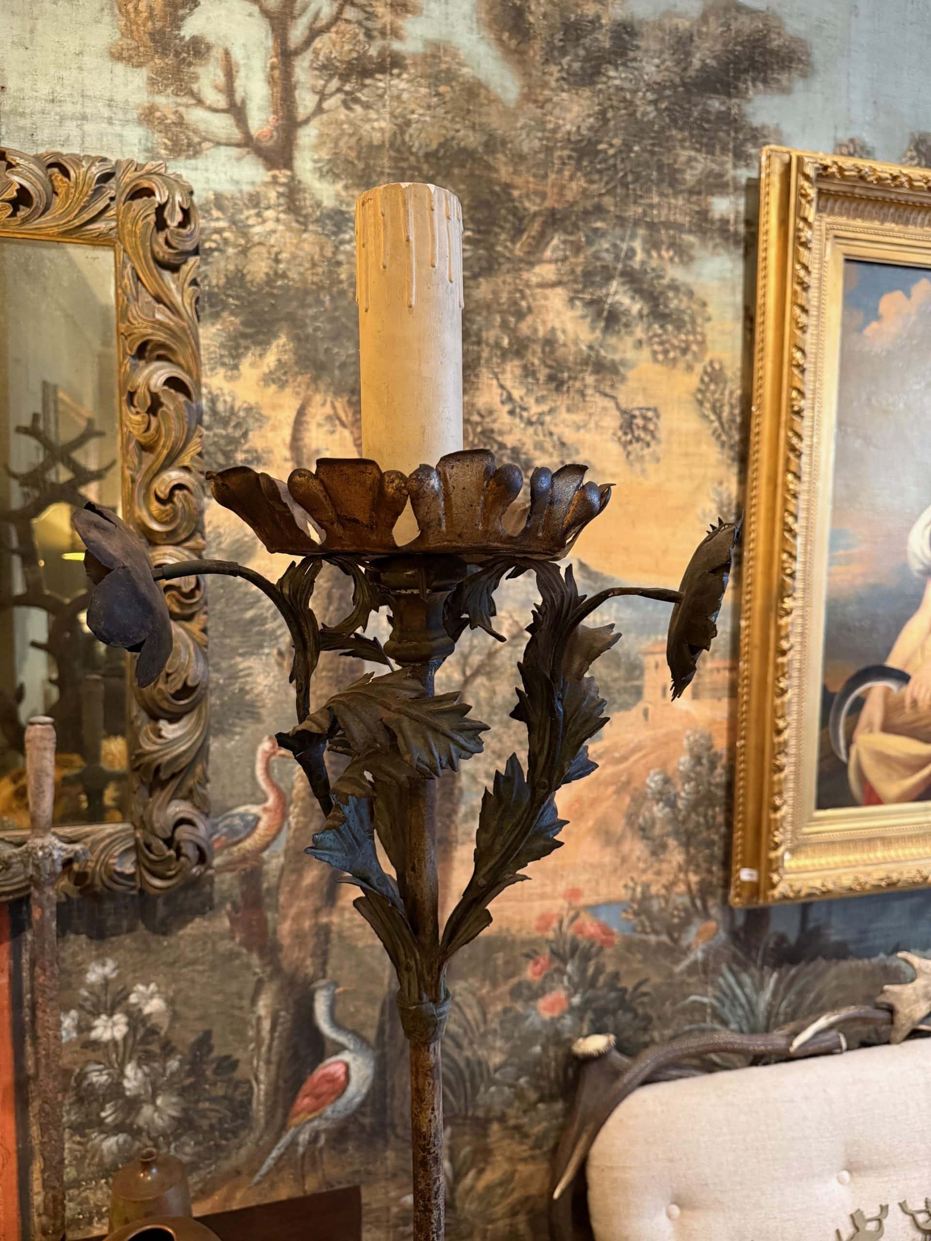 Paire de grands candélabres baroques en fer forgé – Italie XIXe