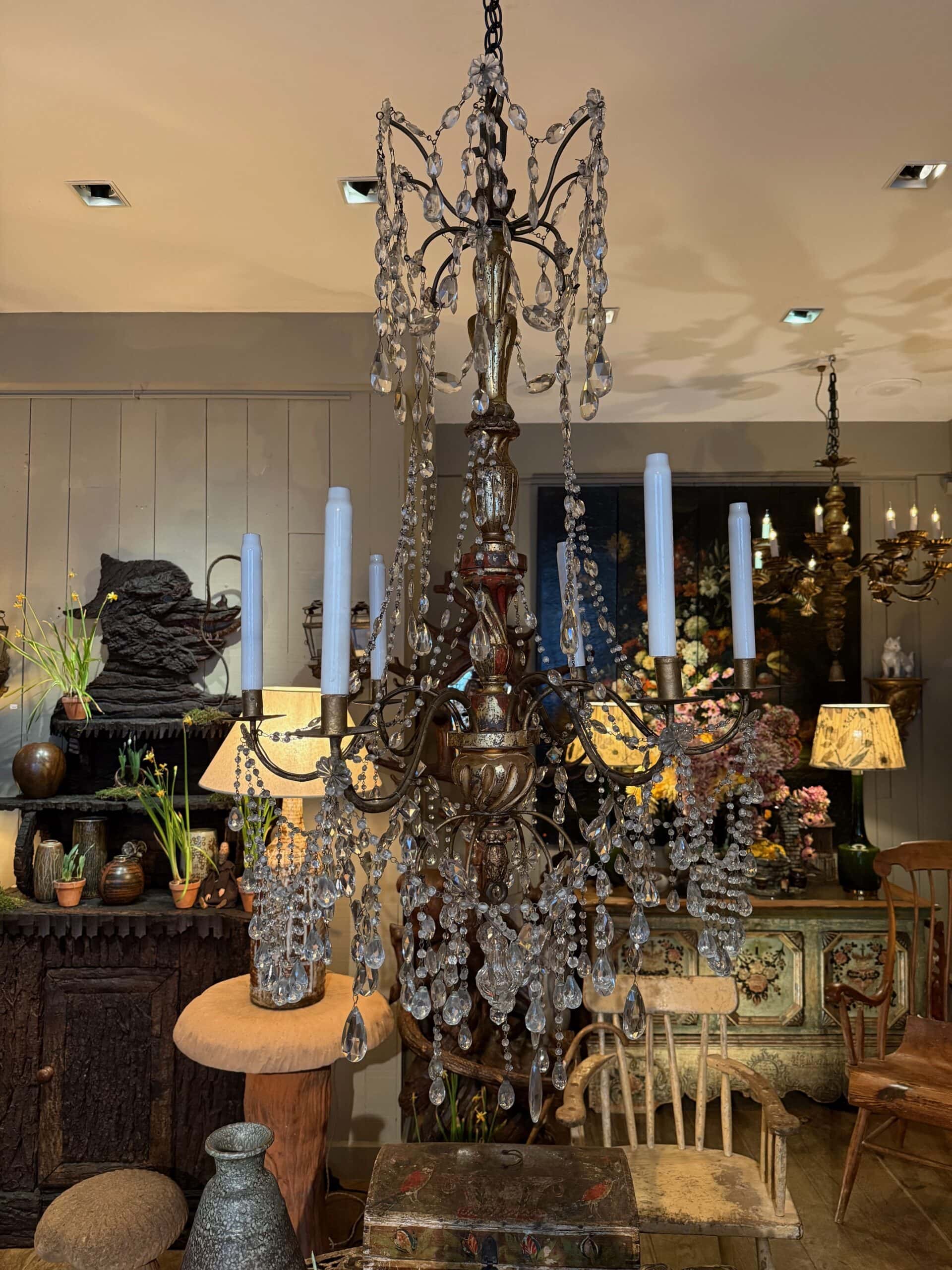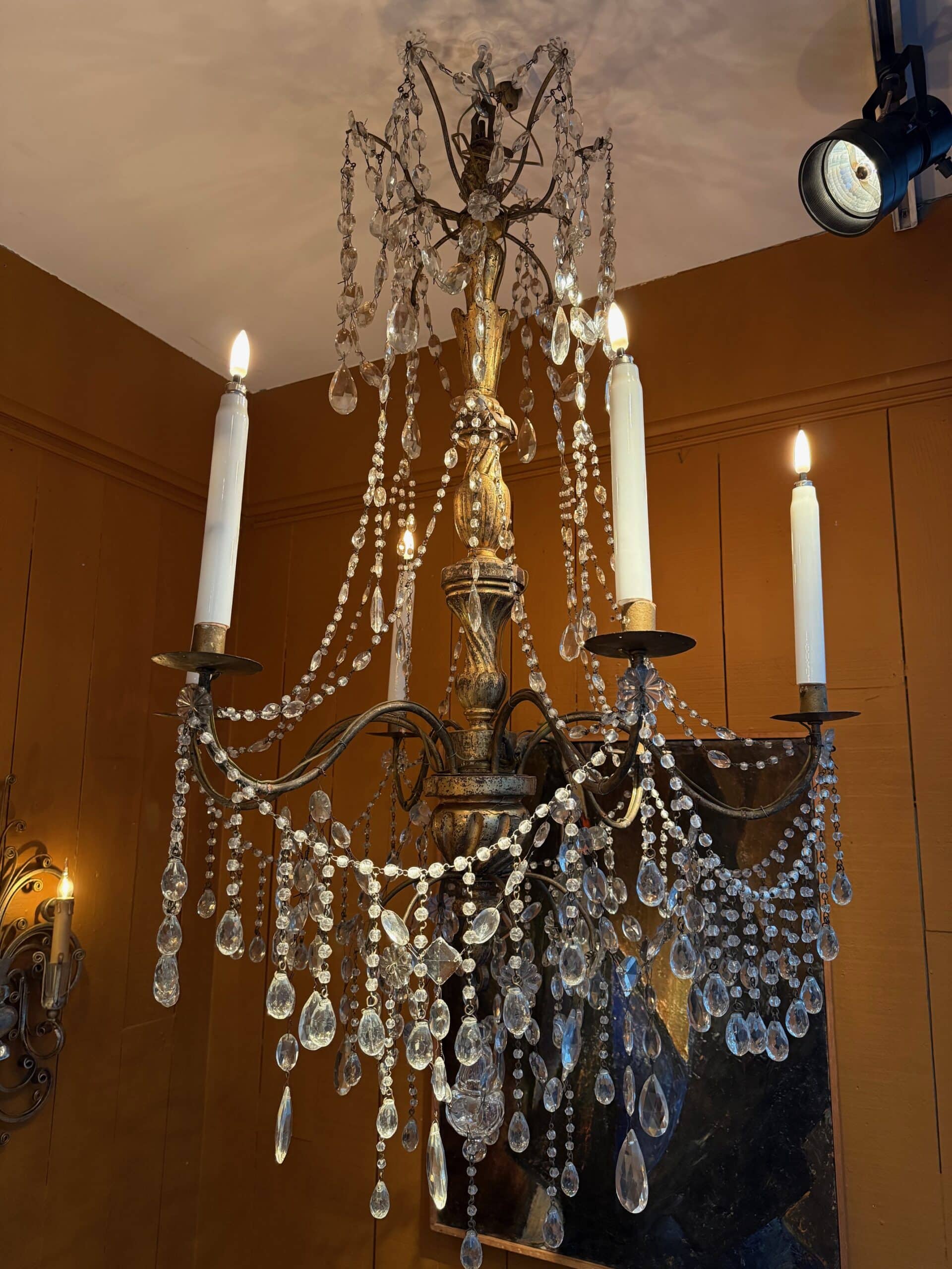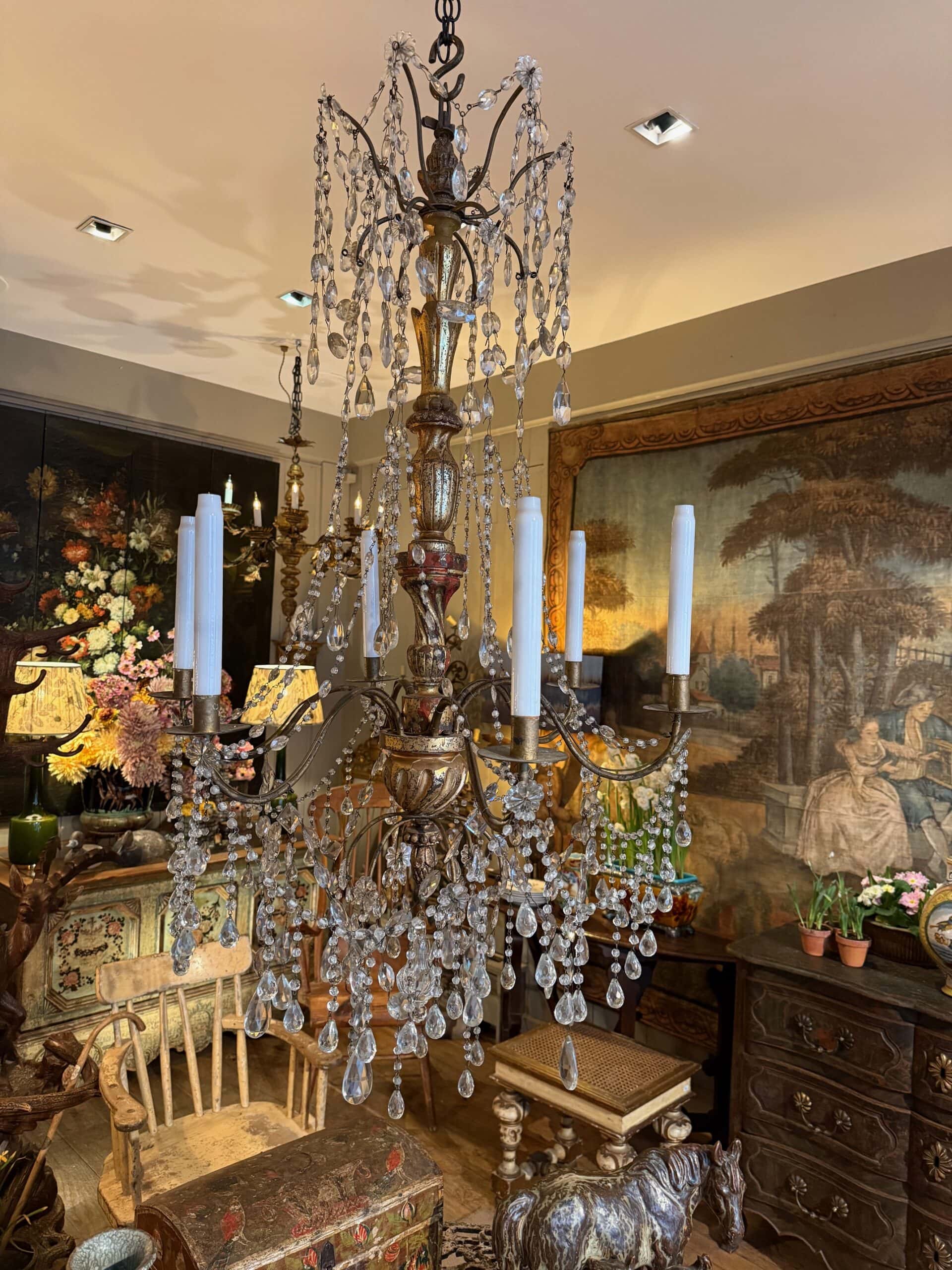 Paire de grands lustres Génois bois doré et briolettes de cristal taillé – ca.1880