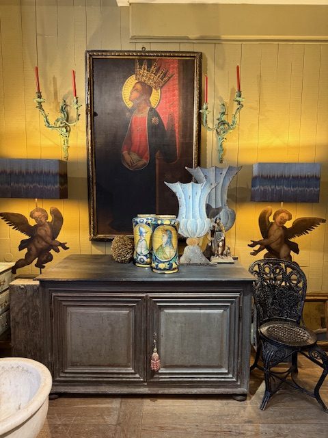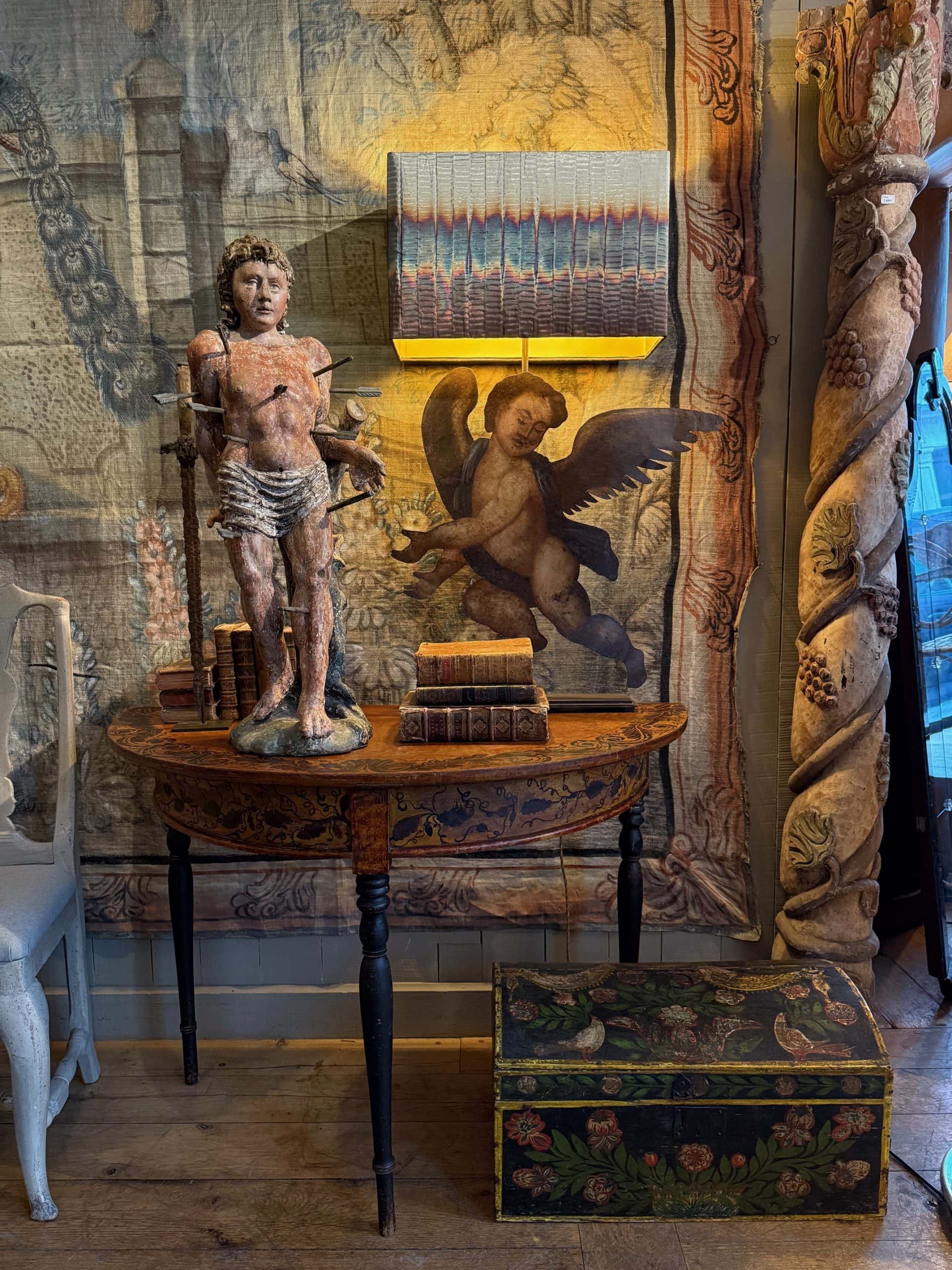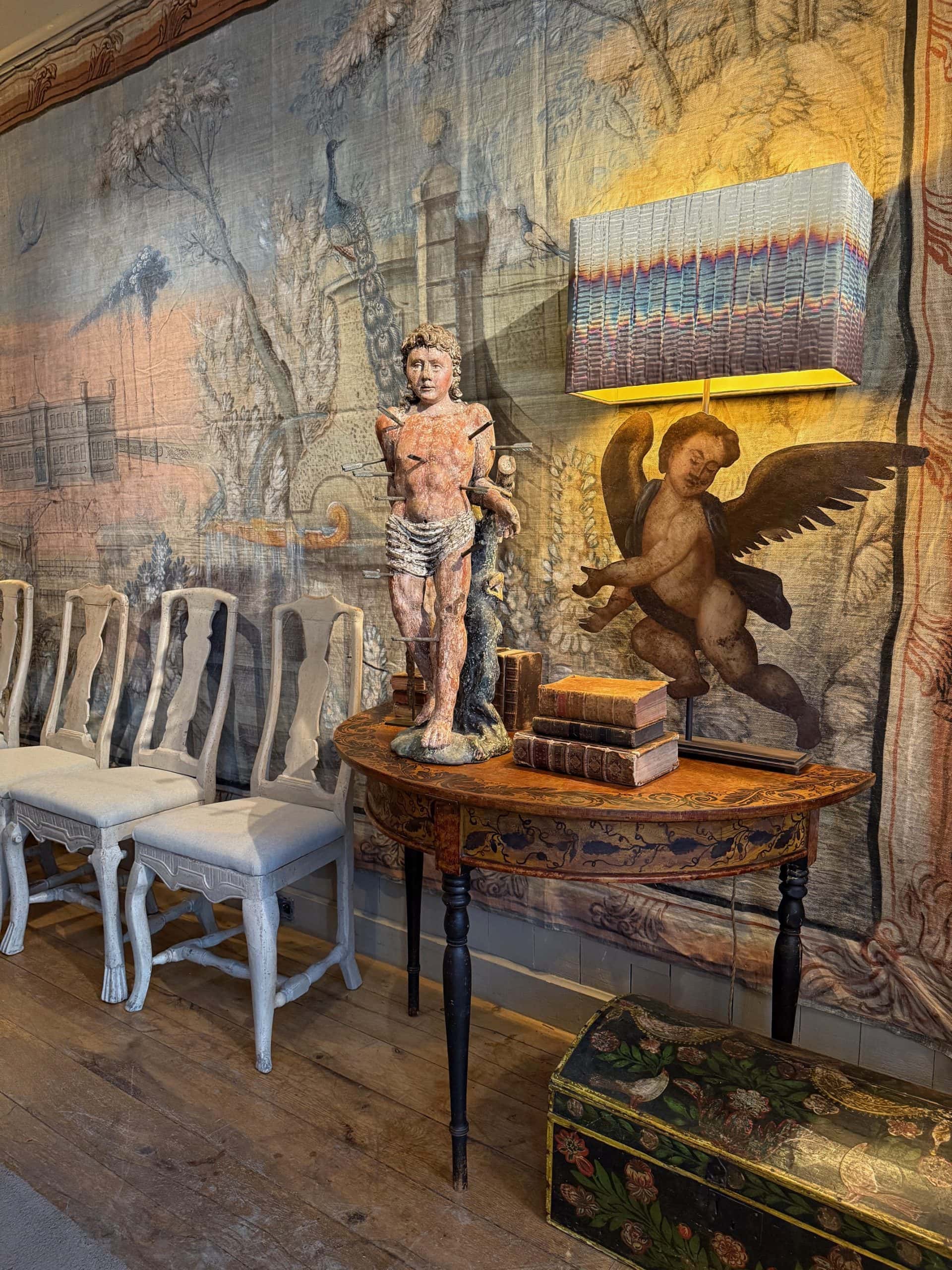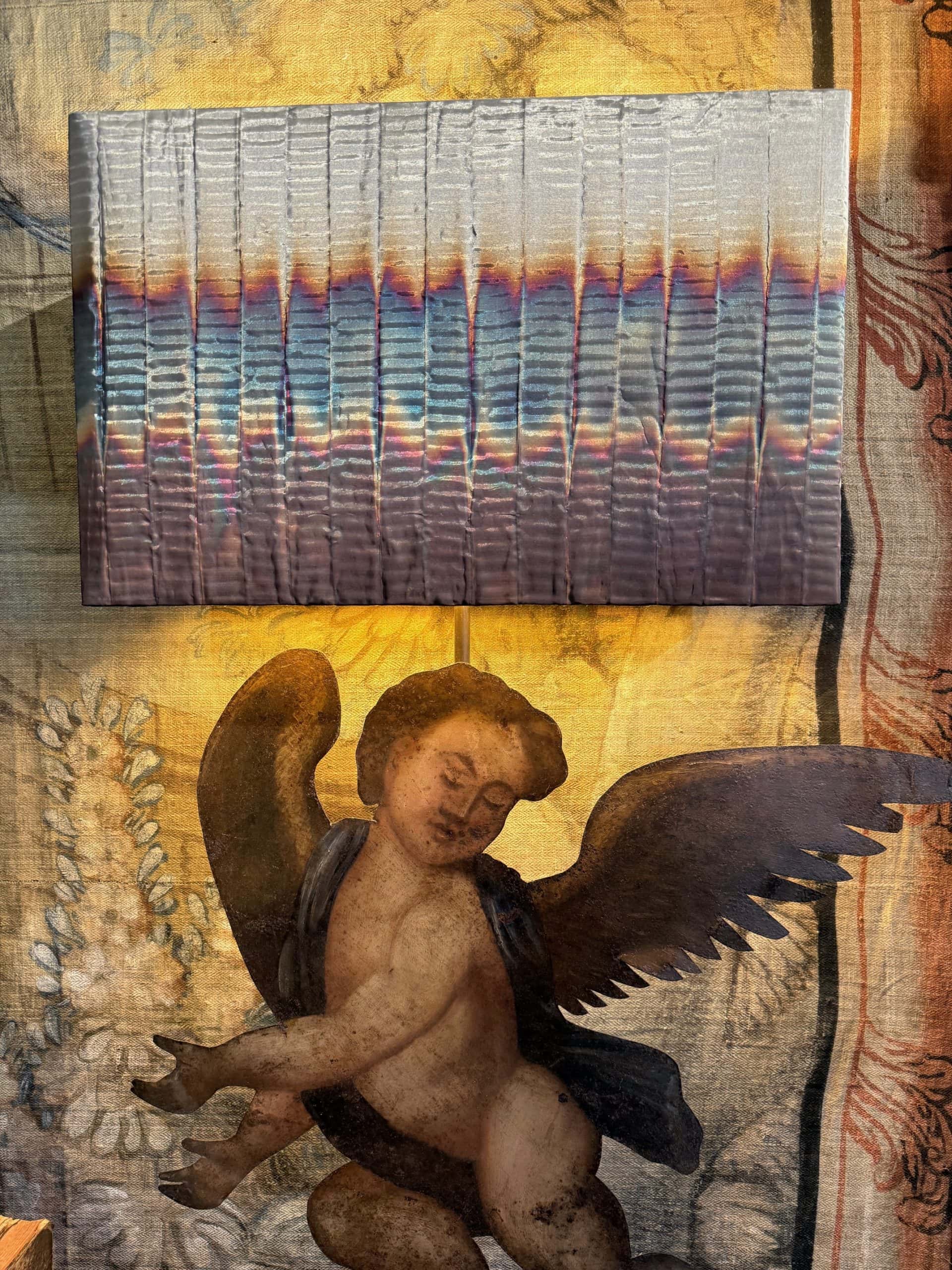 Paire de lampes “Angelots d’applique” montés sur socle & A/J tissu en fil de cuivre oxydé