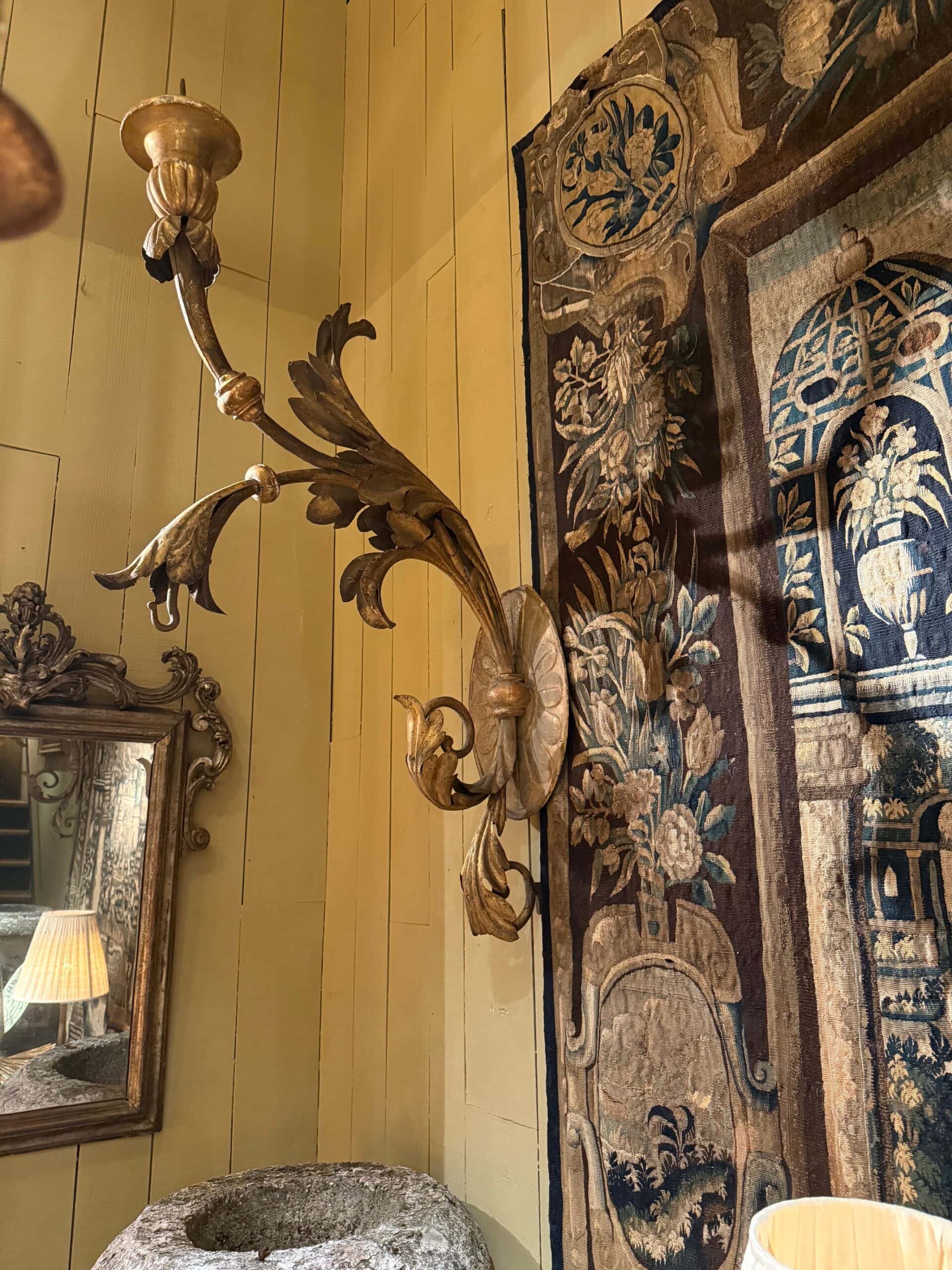 Paire de très grandes appliques Bois doré et grandes feuille d’Acanthes en tôle – D’époque XVIIIe