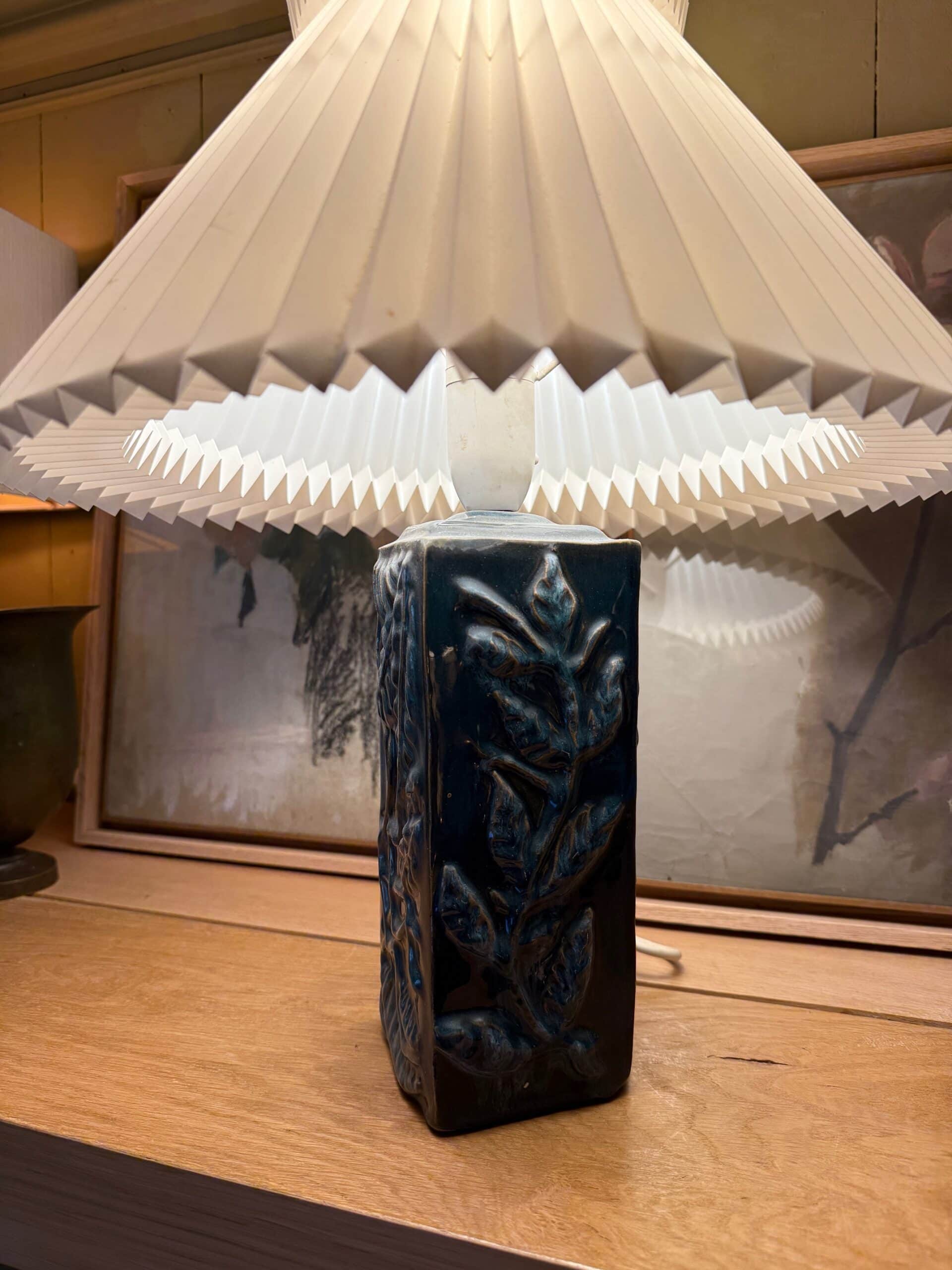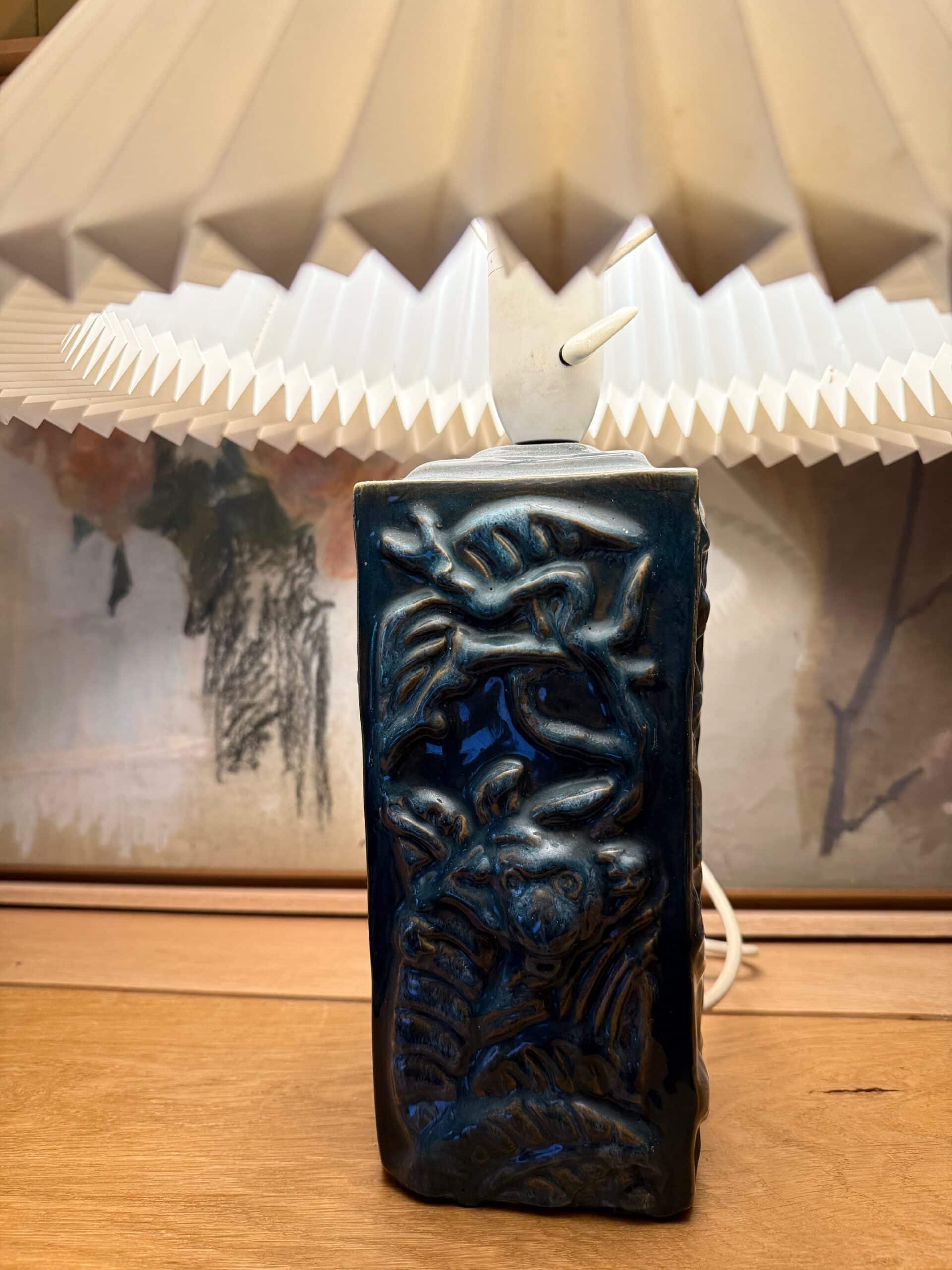 Petite lampe en porcelaine bleue “poisson en relief” & A/K le Klint en celluloid – Ca.1960