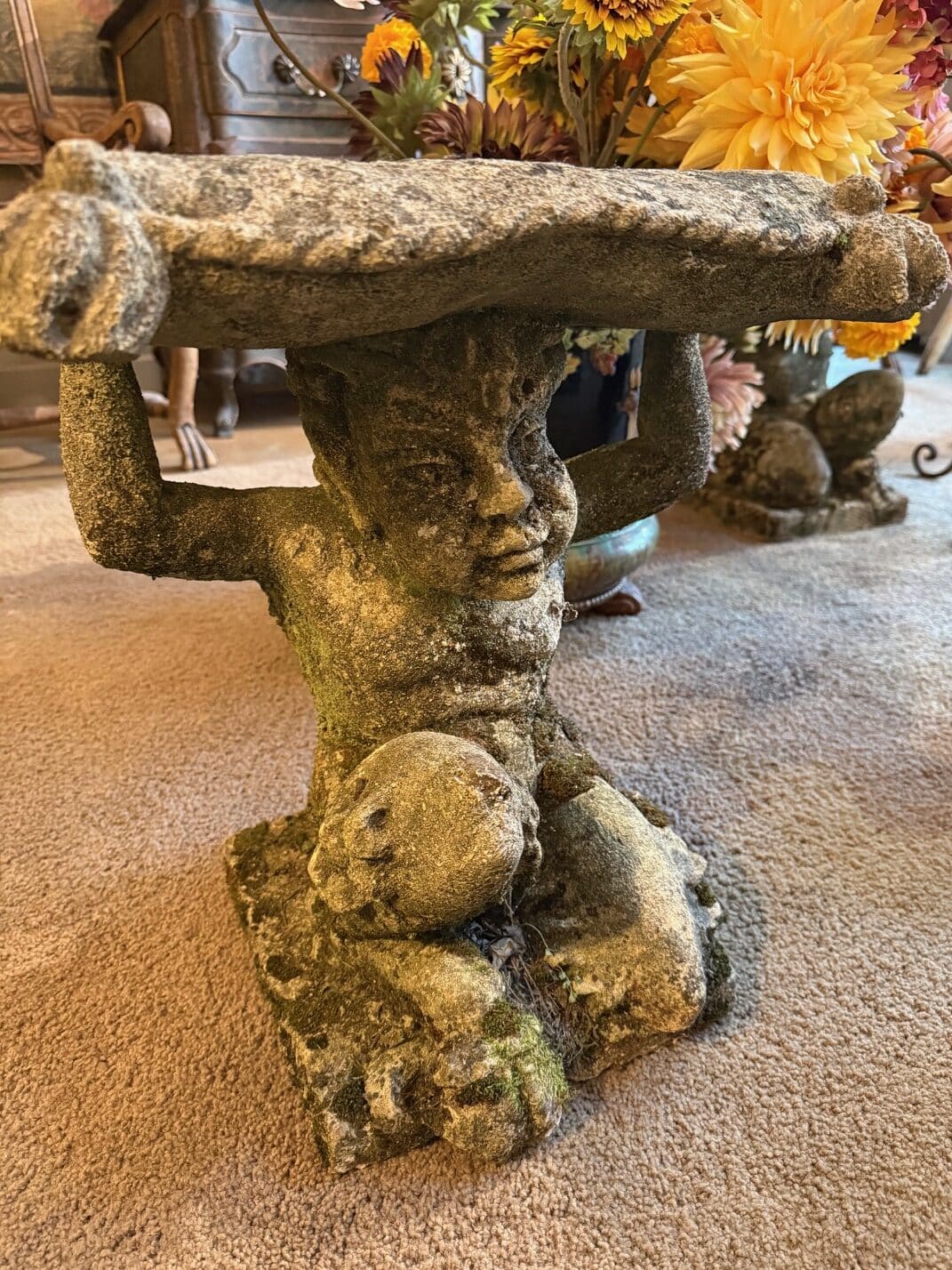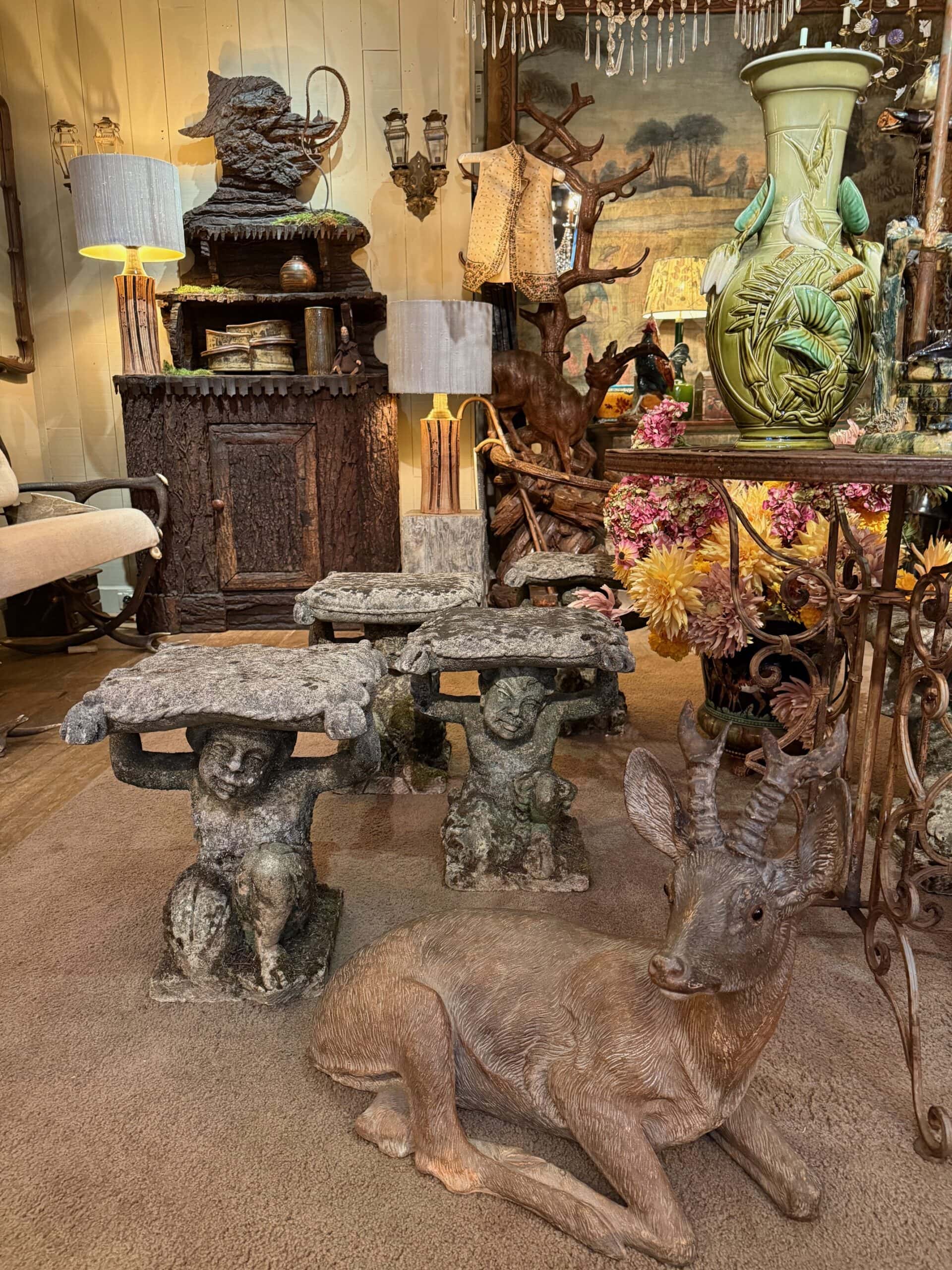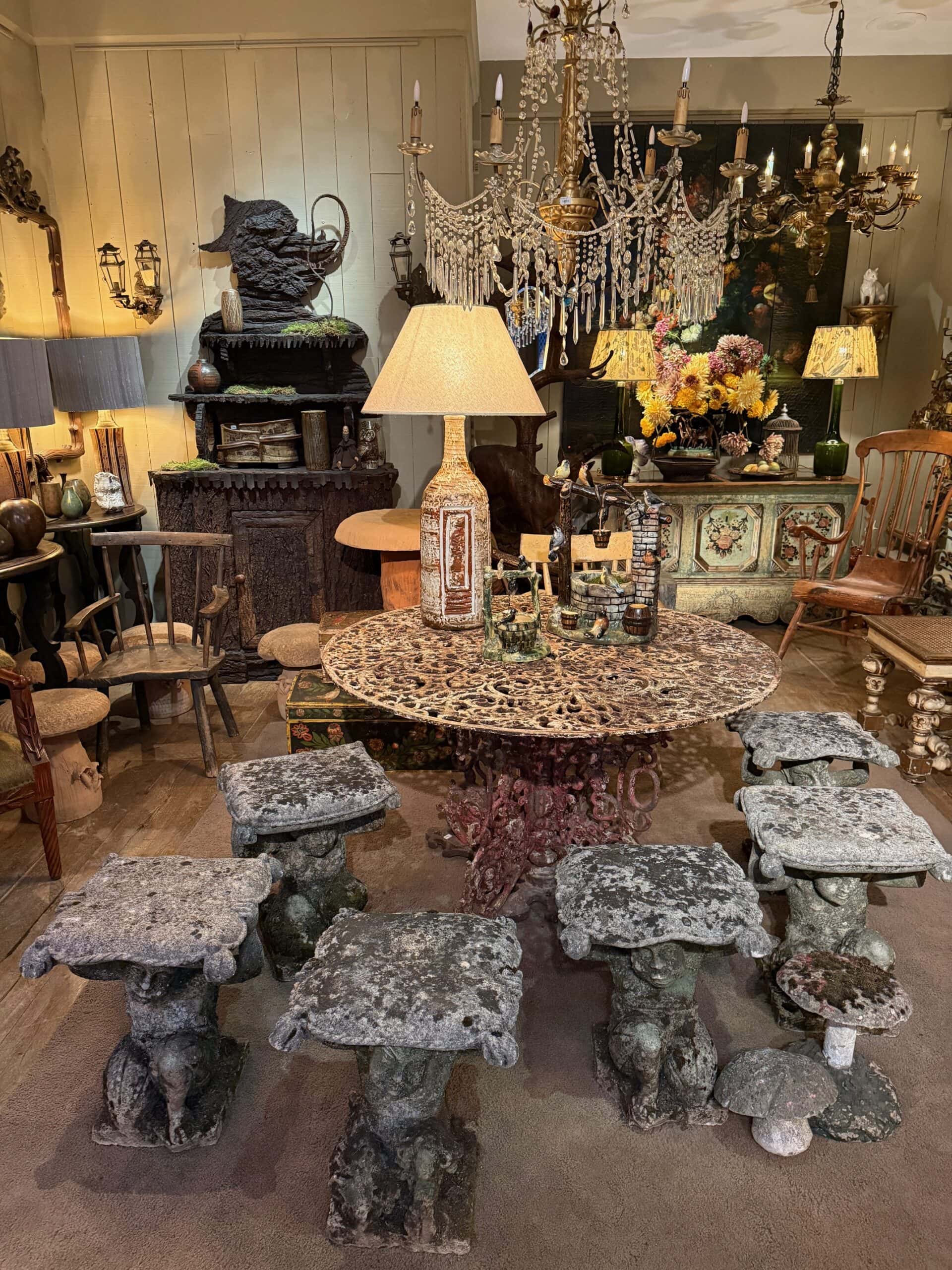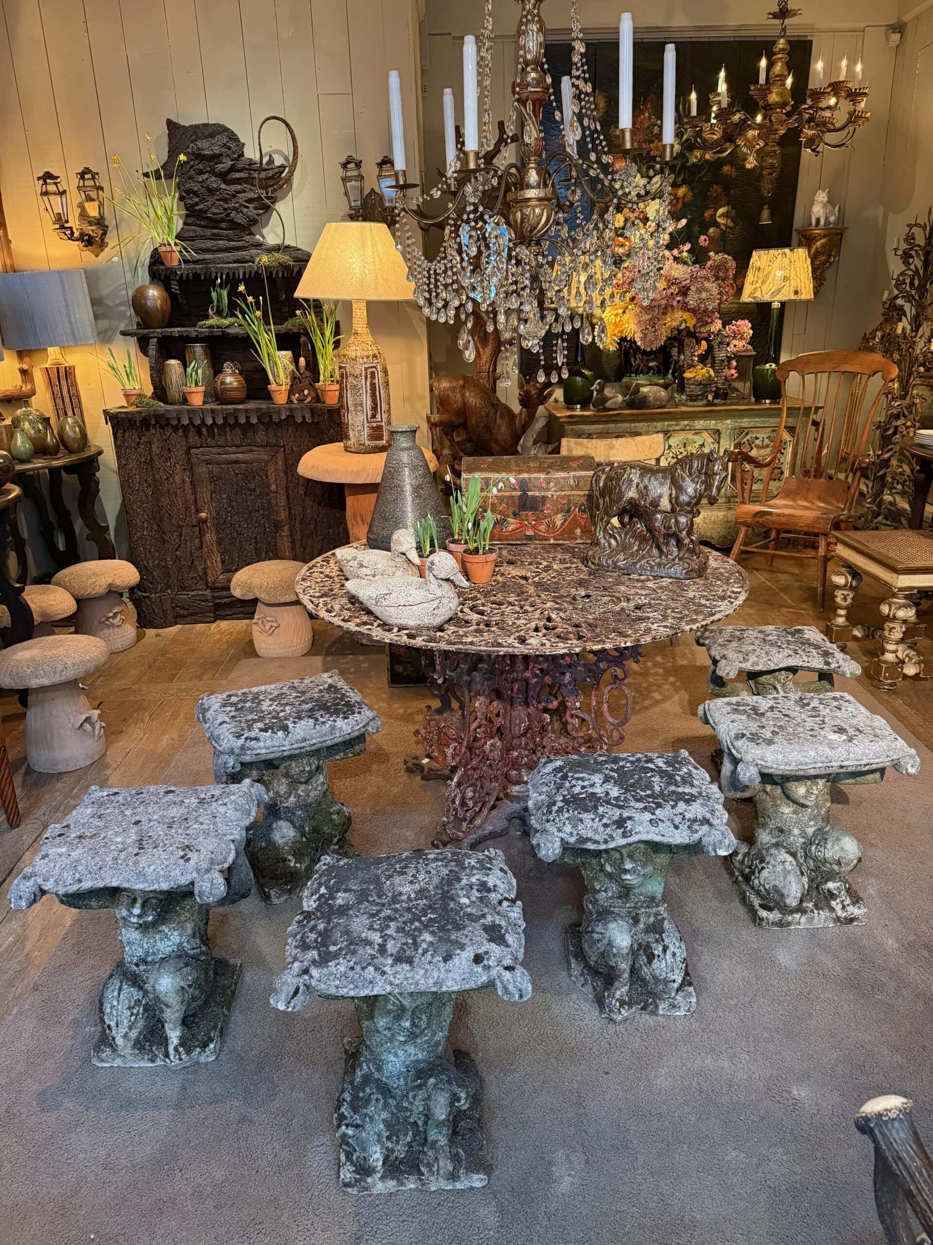 Rare suite de 6 tabourets “faunes” en pierre sculptée – Italie XIXe