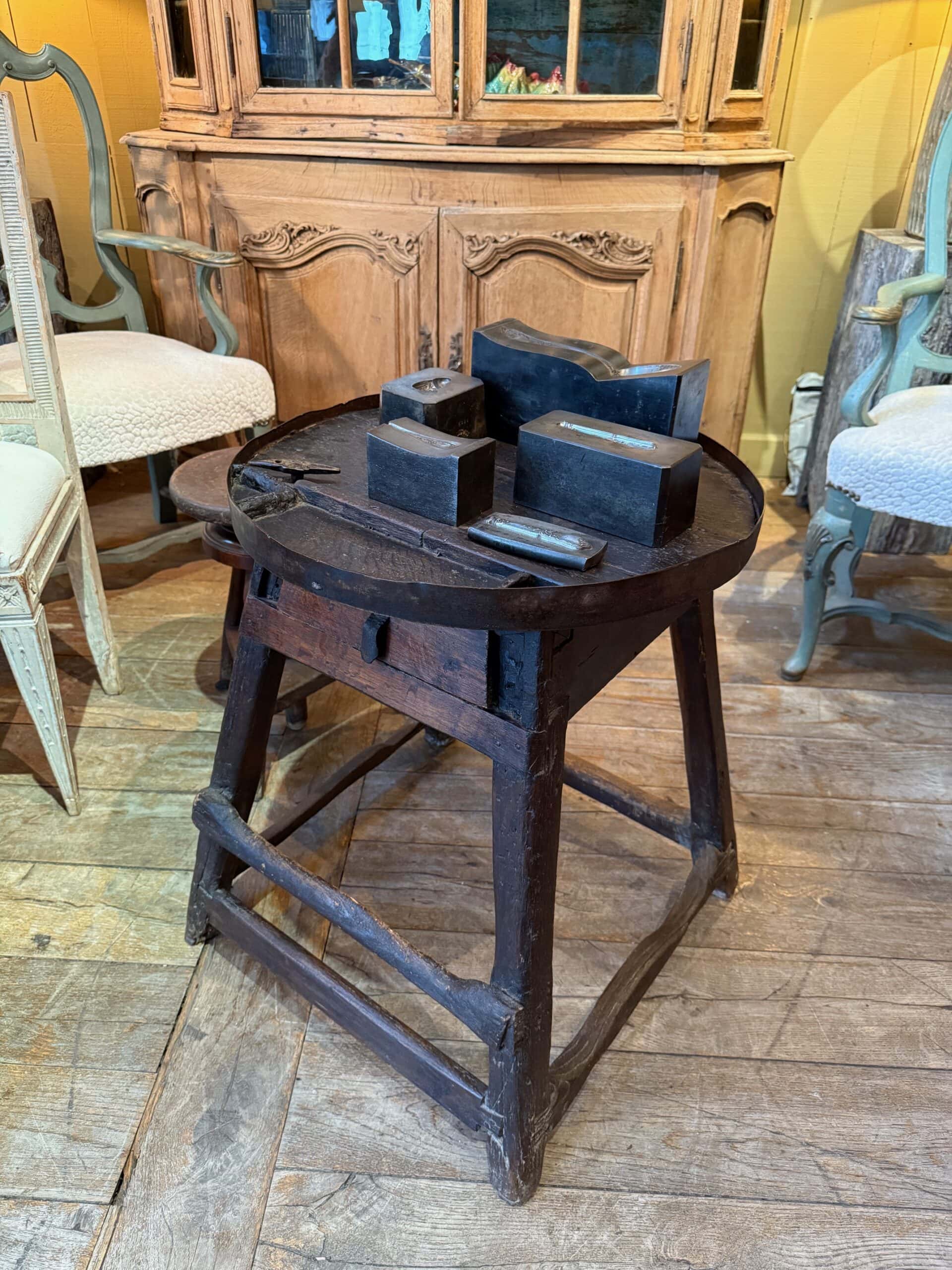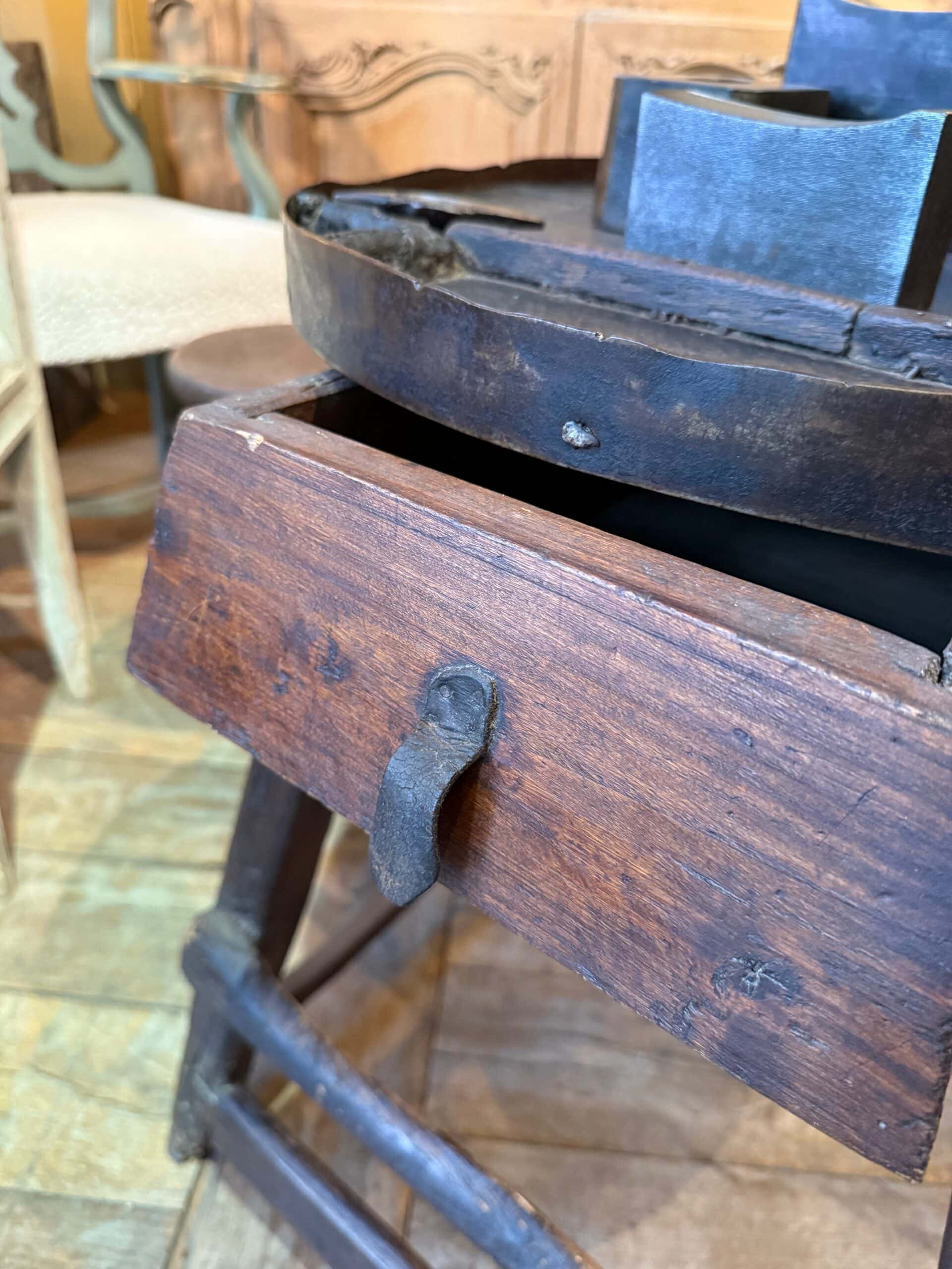 Étiquettes : bedside table, chevet, cordonnier, établi de cordonnier, FOLK ART, meuble de métier, meuble de montagne, meuble de travail, nightstand, shoemaker