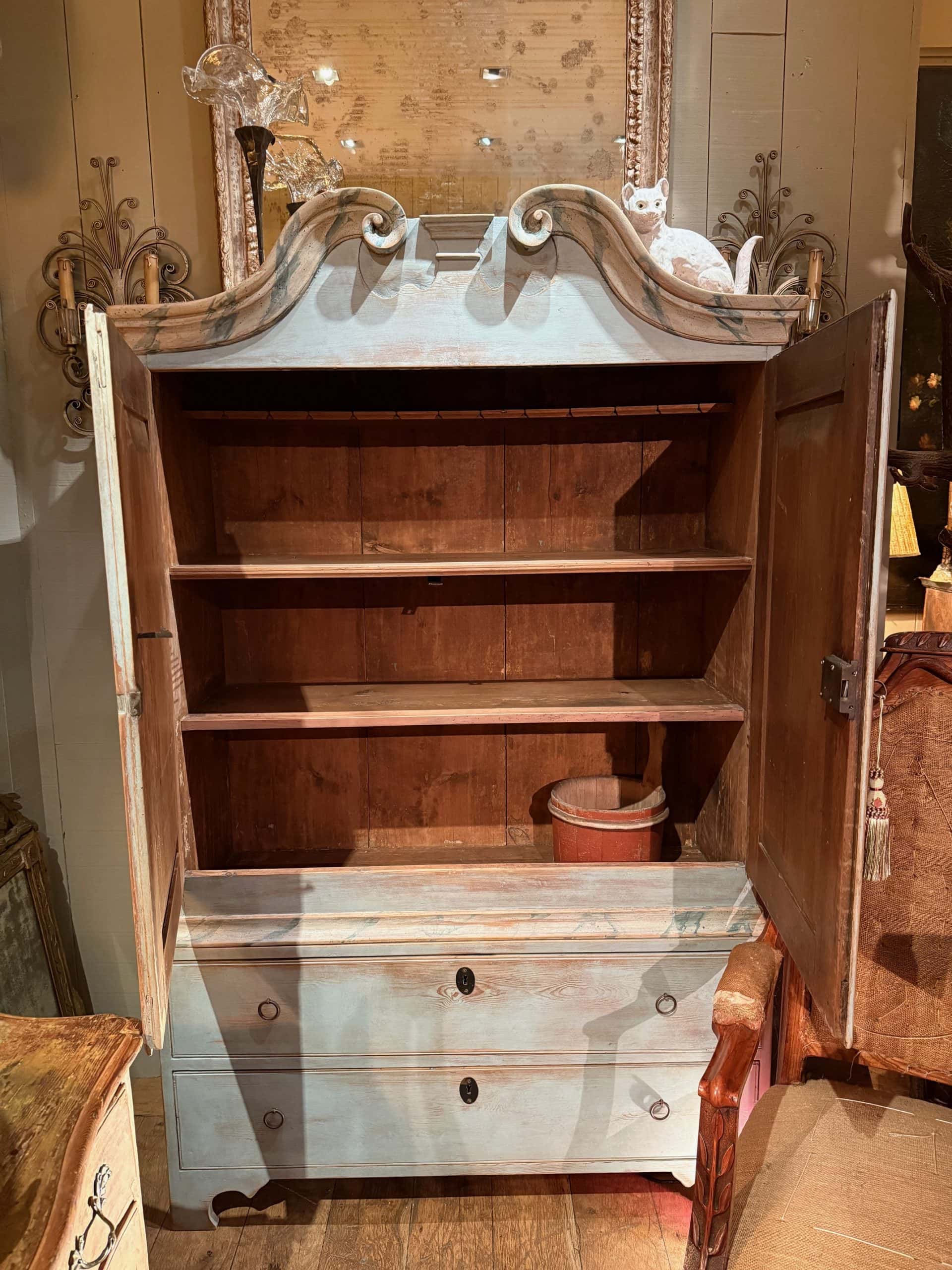 Un buffet Baroque en bois peint décor faux-marbre bleu ciel – Suède Ca.1800